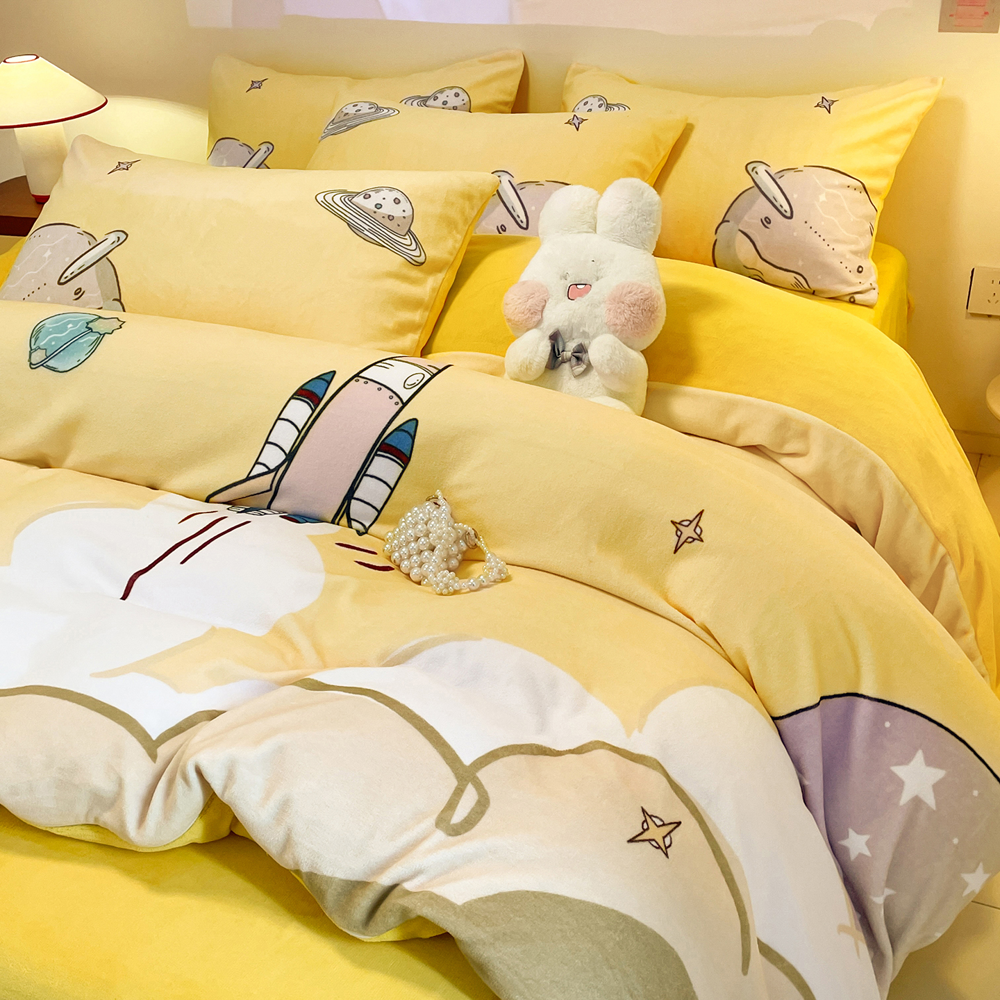 商品名称:新方向 2025新款全消光A类儿童牛奶绒四件套-飞行游 飞行游-黄