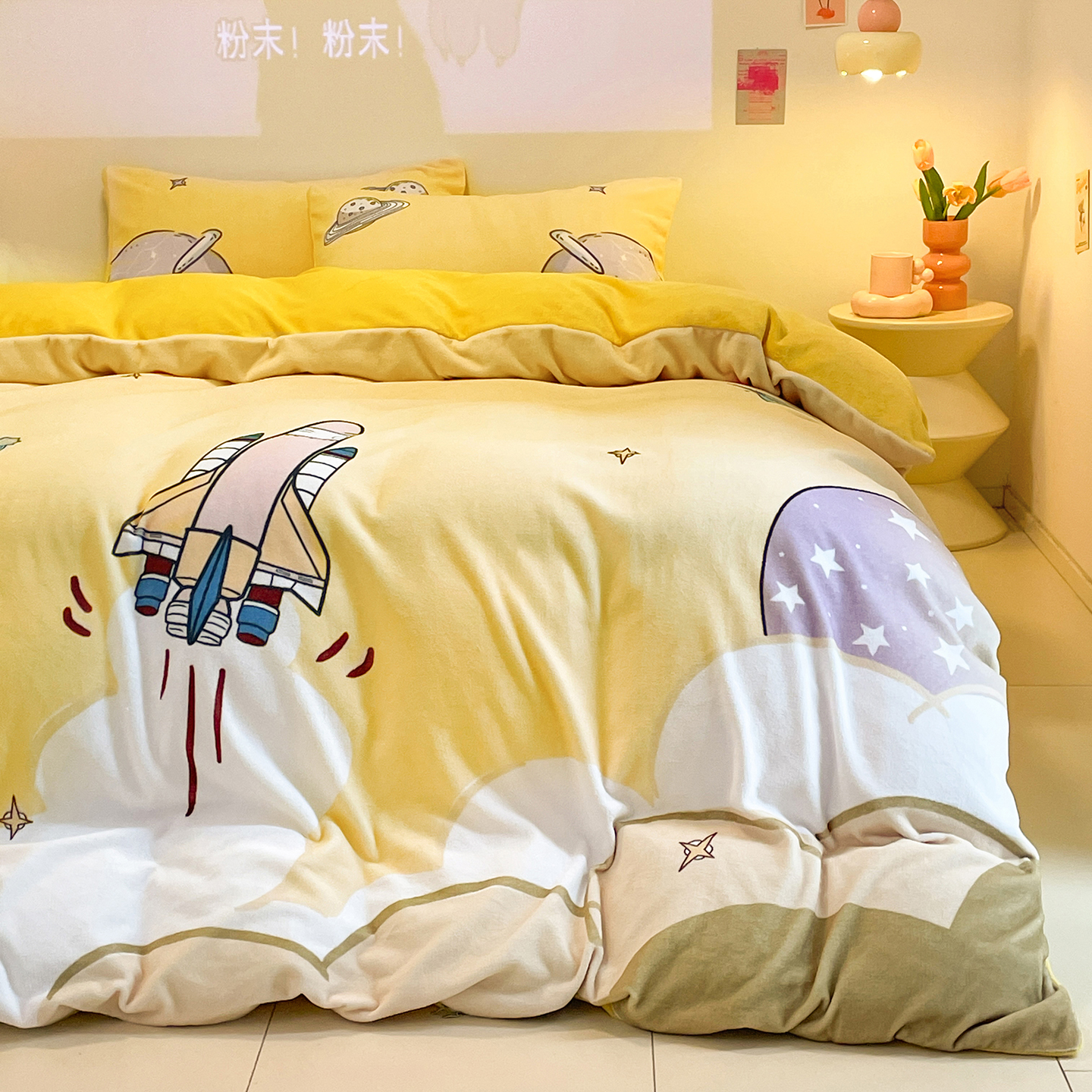 新方向 2025新款全消光A类儿童牛奶绒四件套-飞行游 飞行游-黄