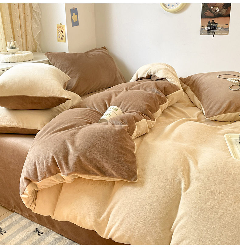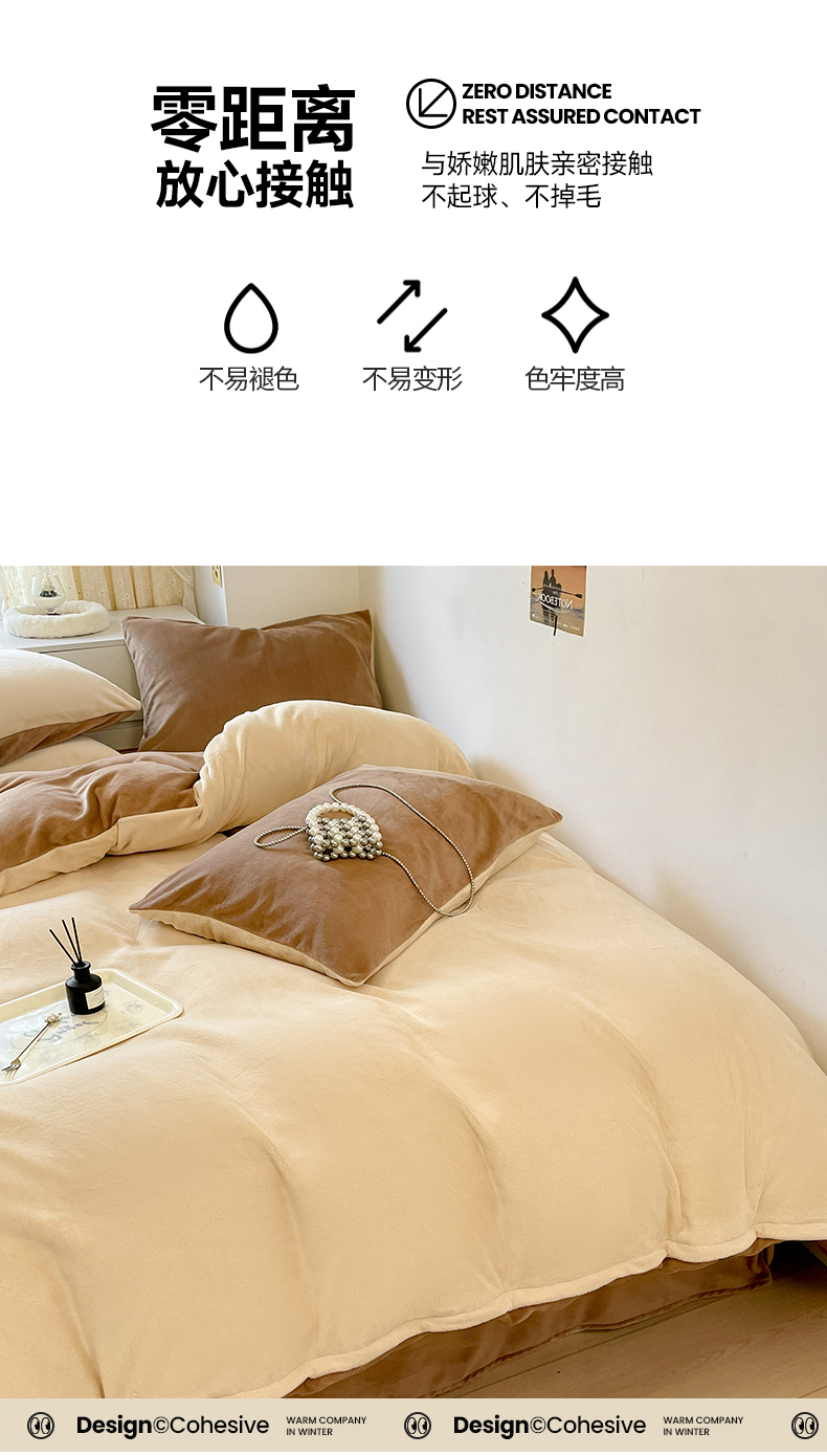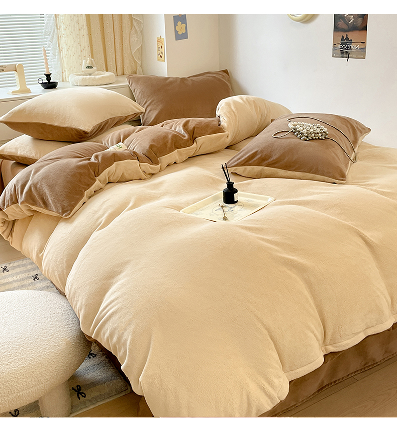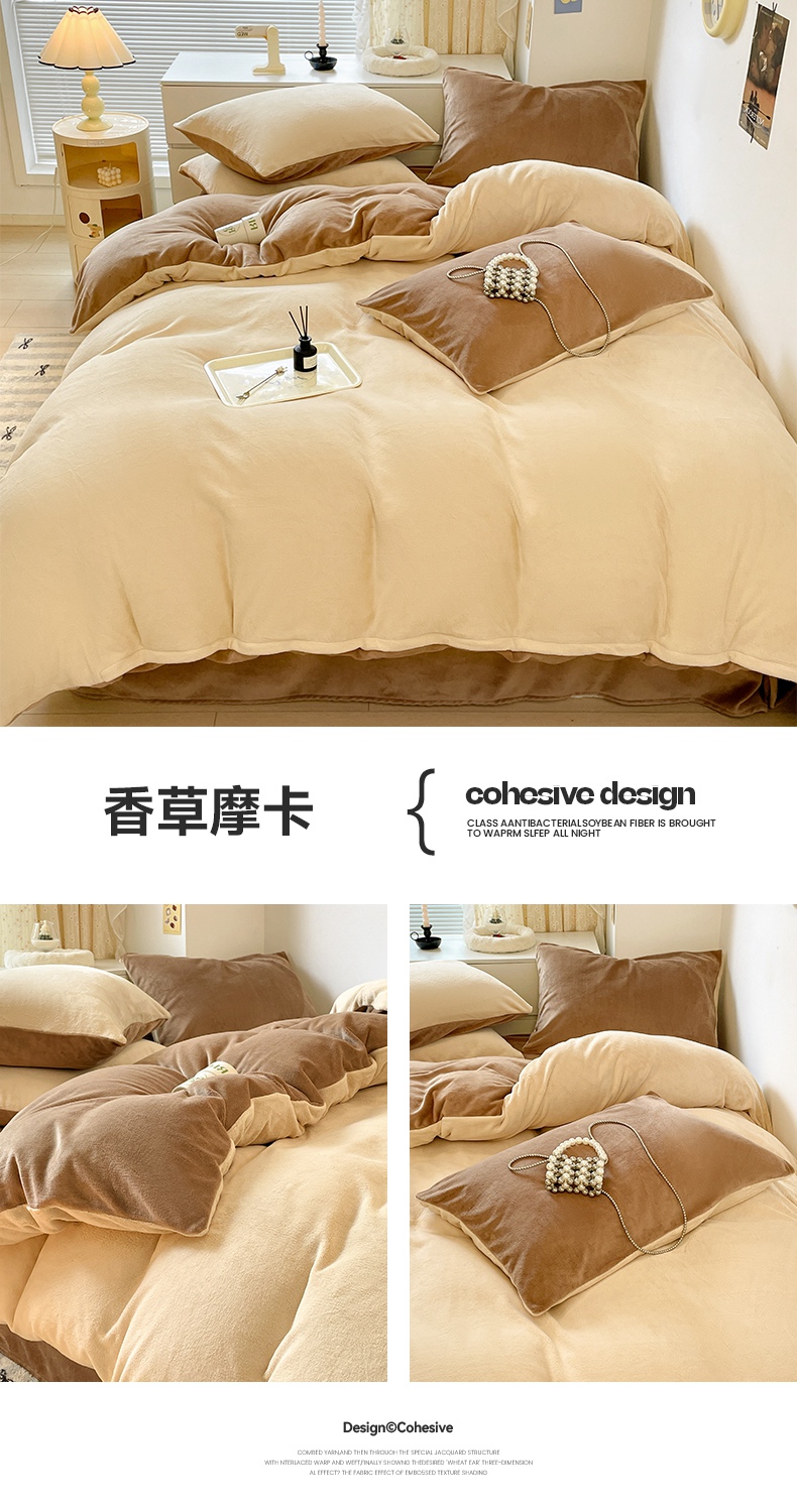 商品名称:寐眠 新款牛奶绒纯色双拼四件套-风格二 香草摩卡