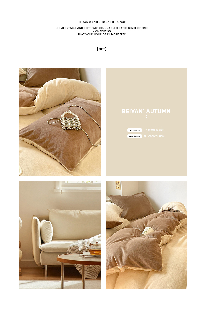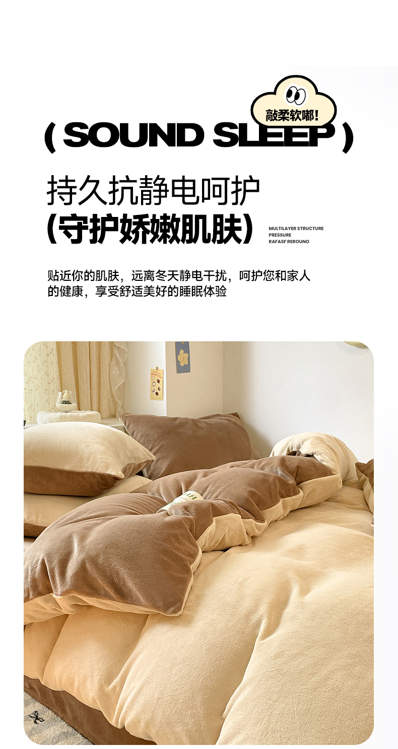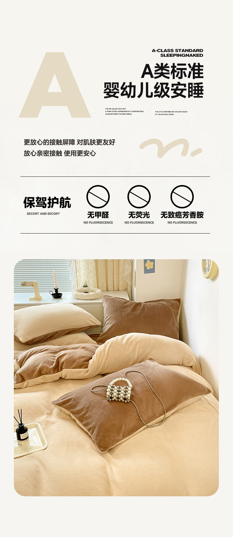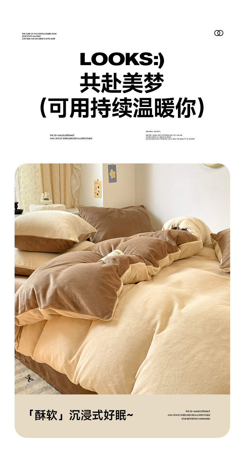 商品名称:寐眠 新款牛奶绒纯色双拼四件套-风格二 香草摩卡