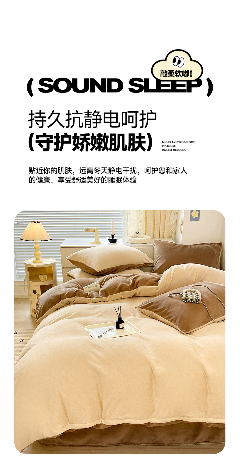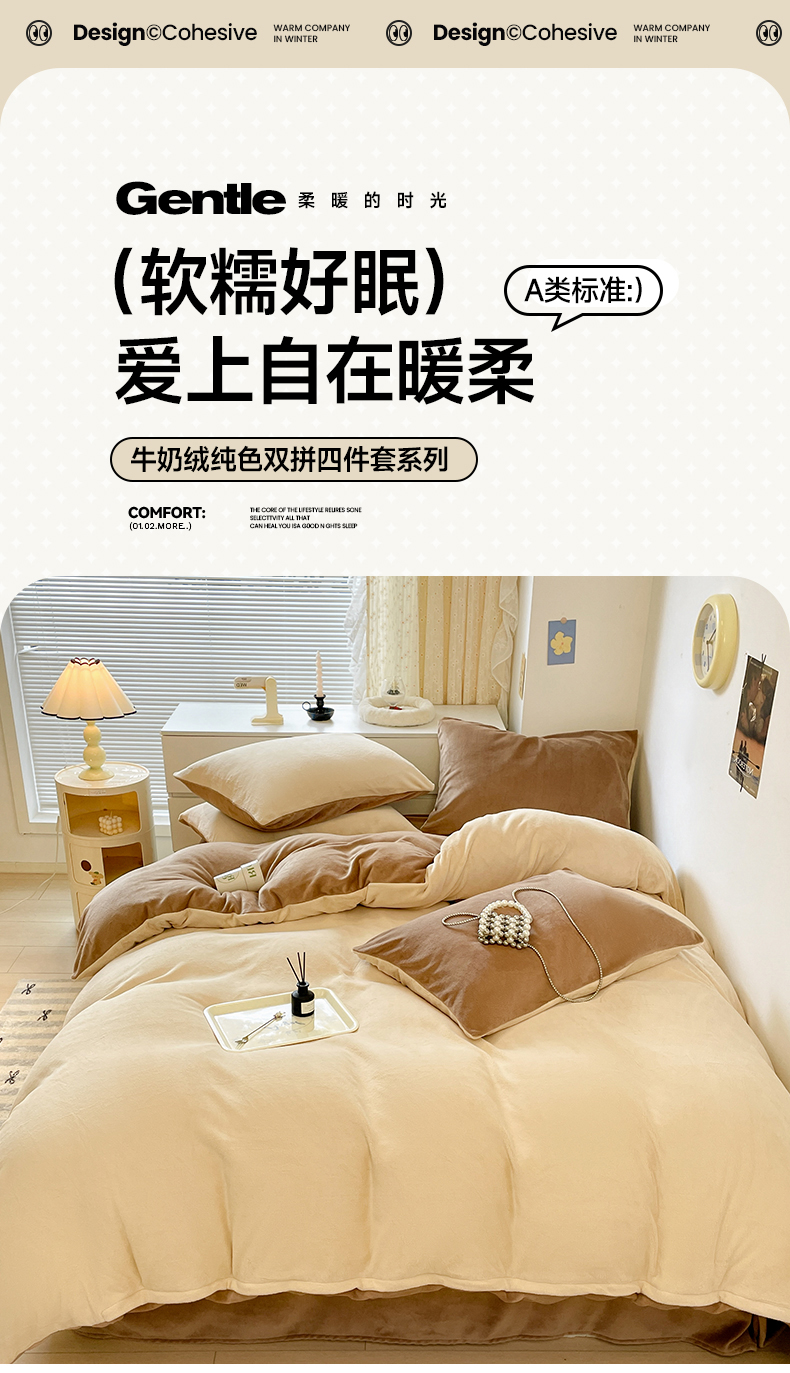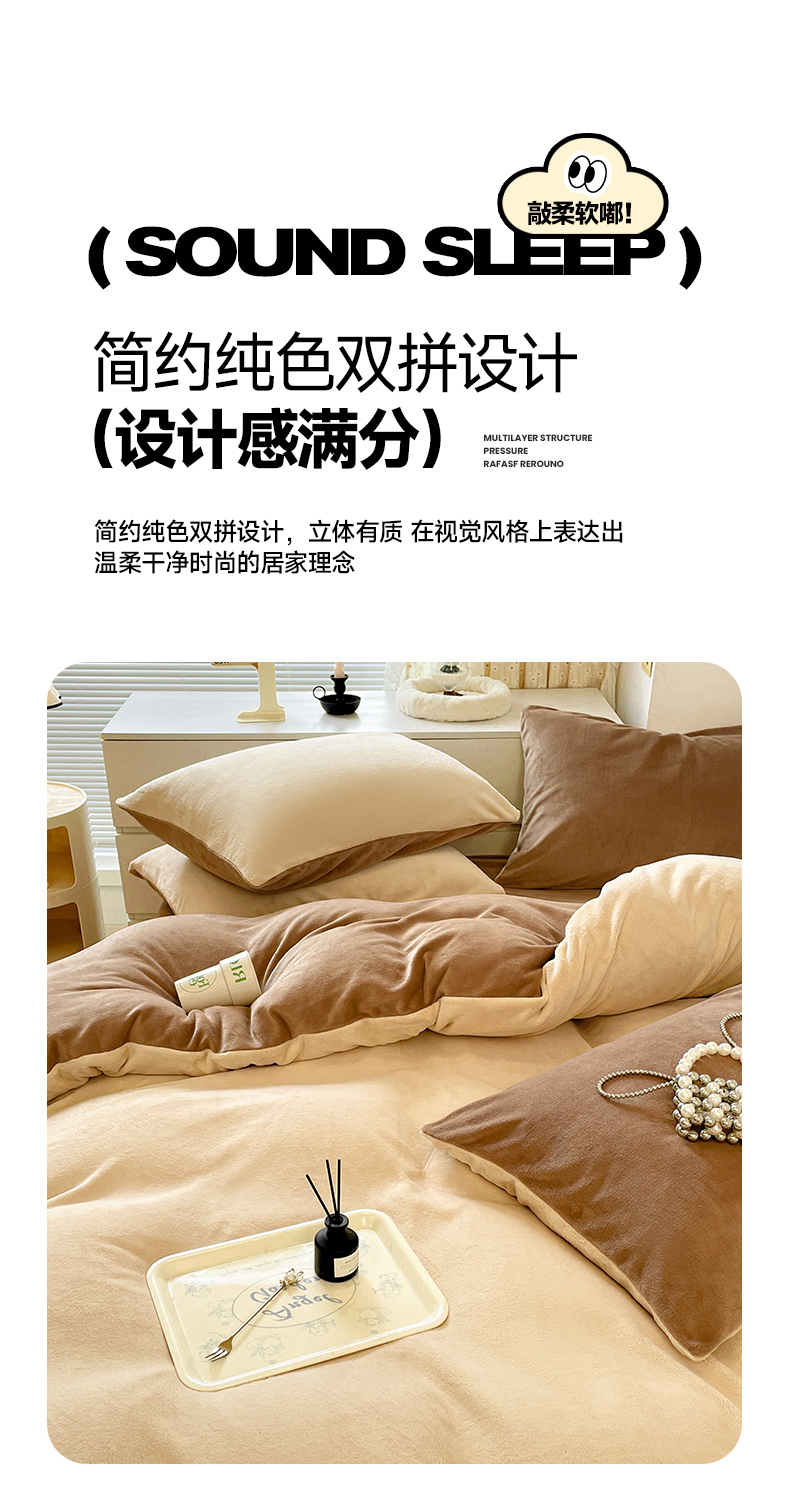寐眠 新款牛奶绒纯色双拼四件套-风格二 香草摩卡