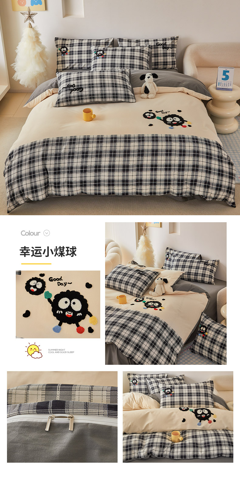 商品名称:怡家居 2024秋冬新款全棉磨毛绣花四件套 幸运小煤球