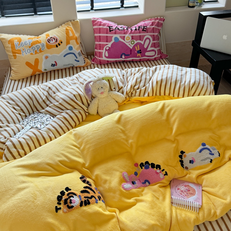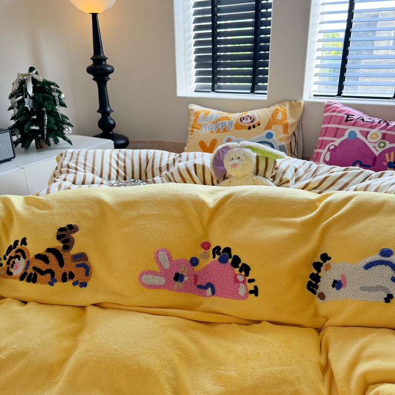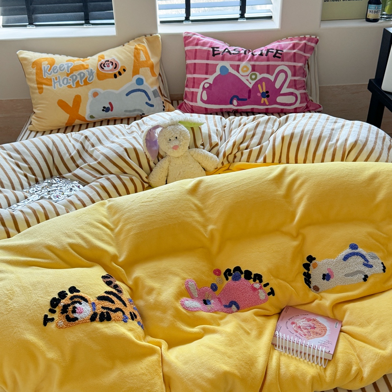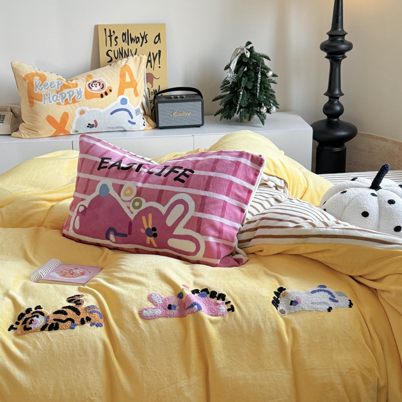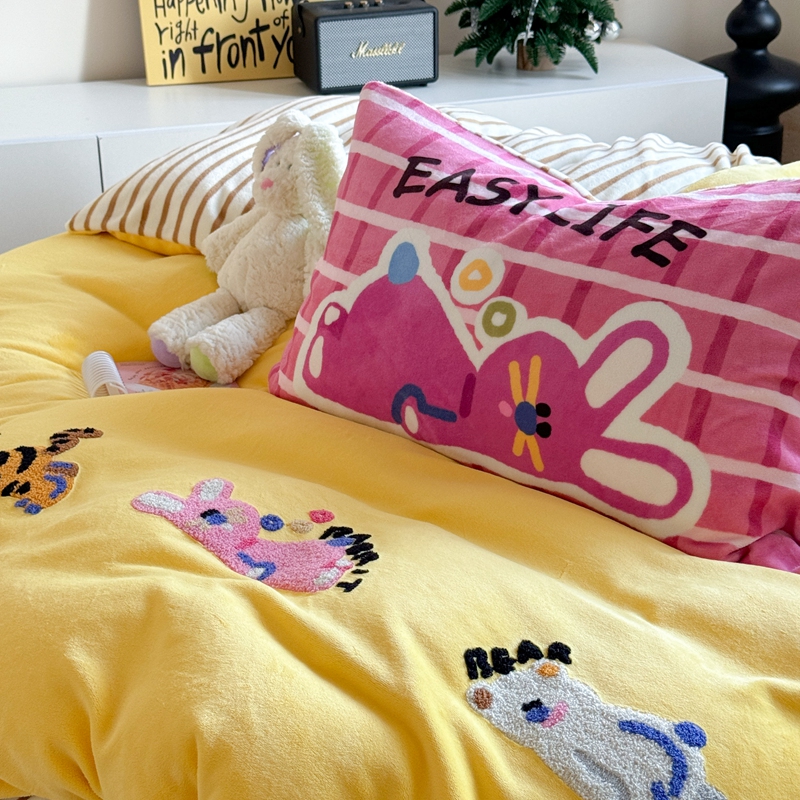 柚子YOUTH 2024新款牛奶绒四件套-三小只毛巾绣系列 简单生活
