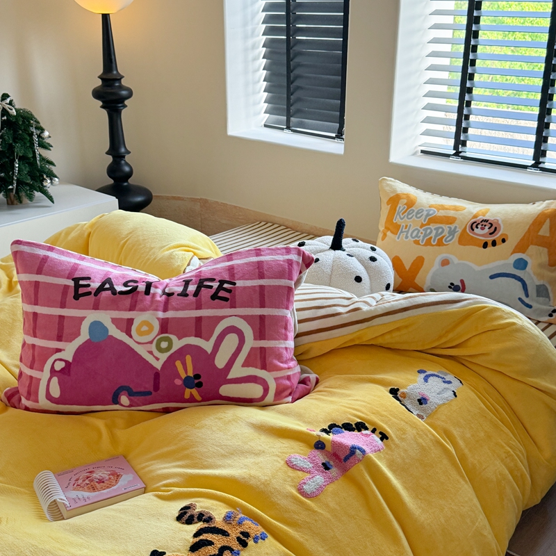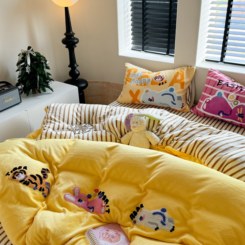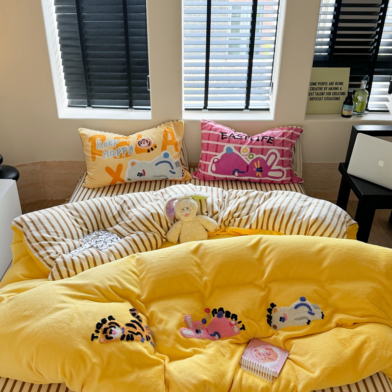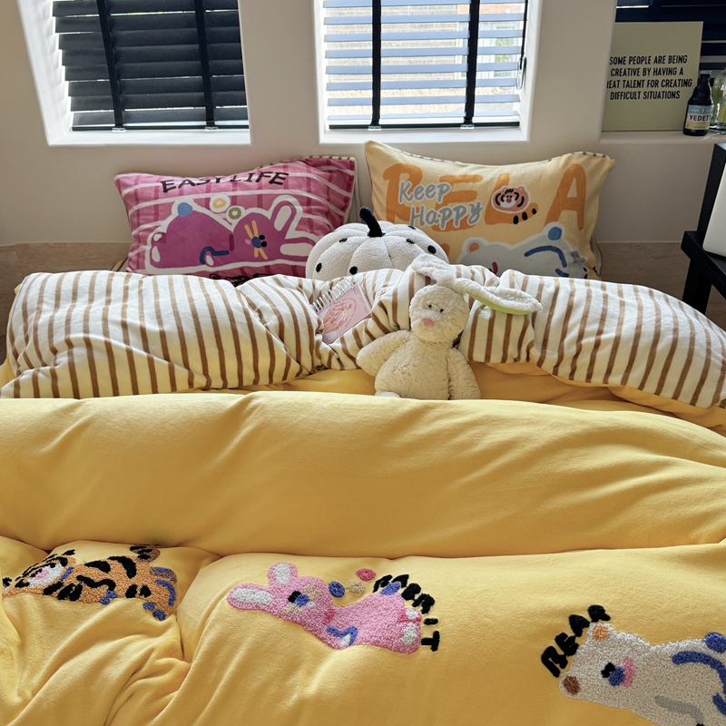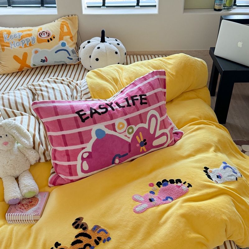 柚子YOUTH 2024新款牛奶绒四件套-三小只毛巾绣系列 简单生活