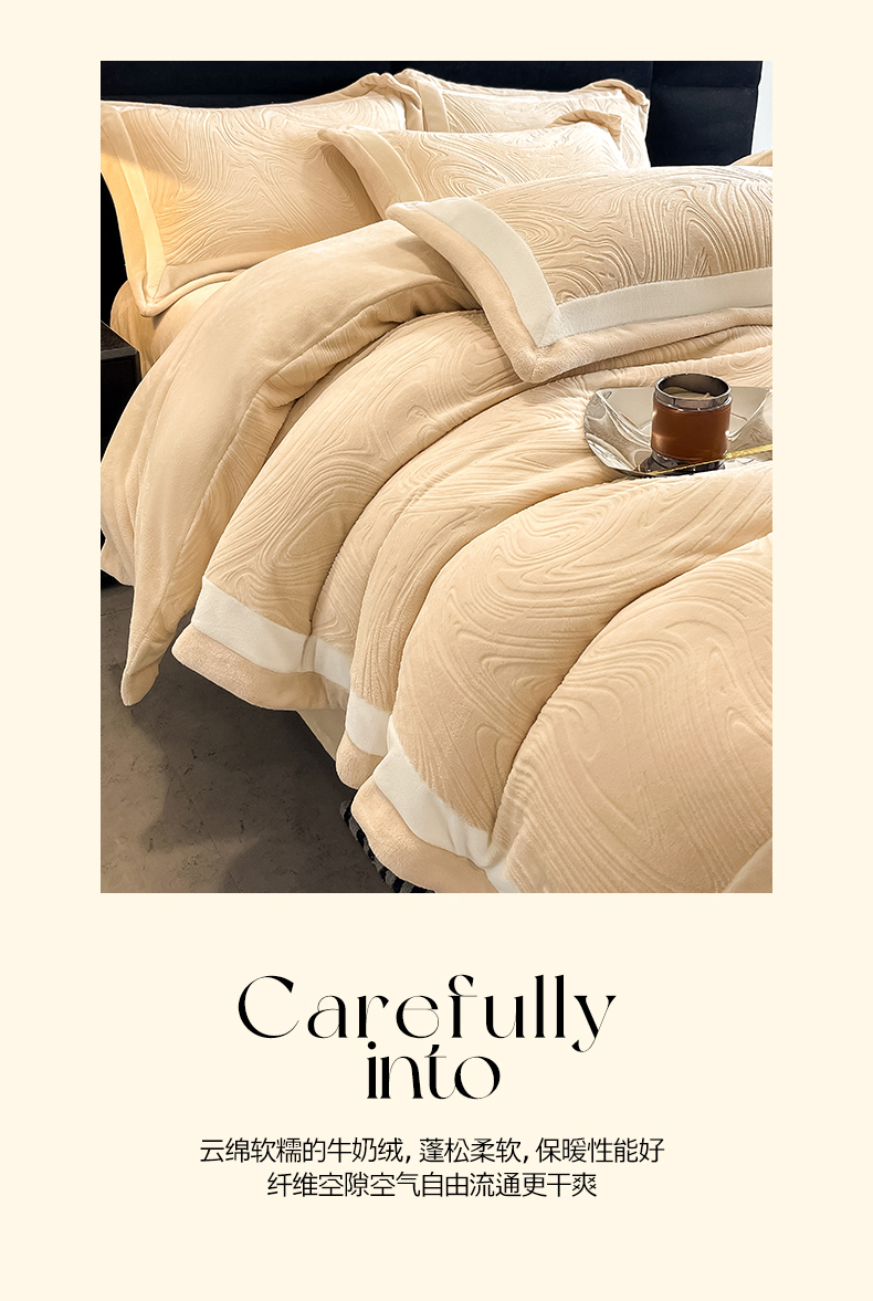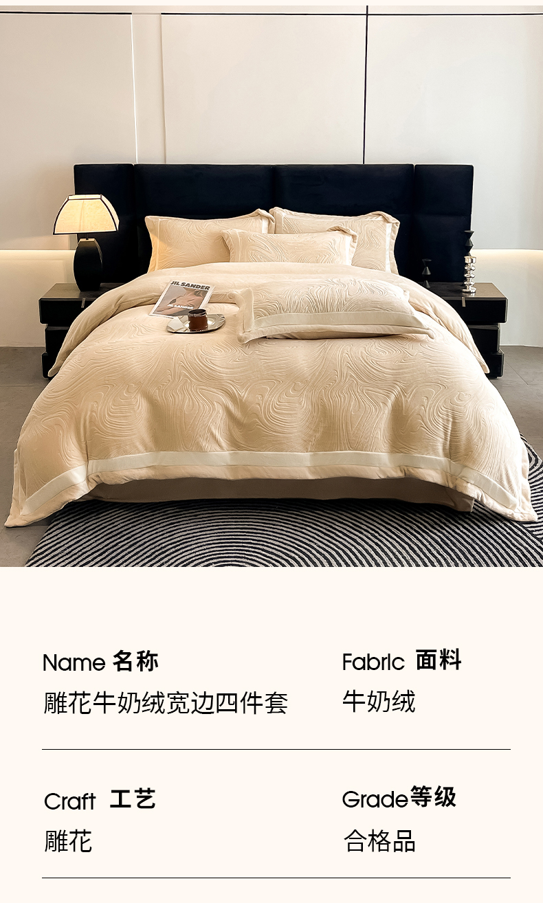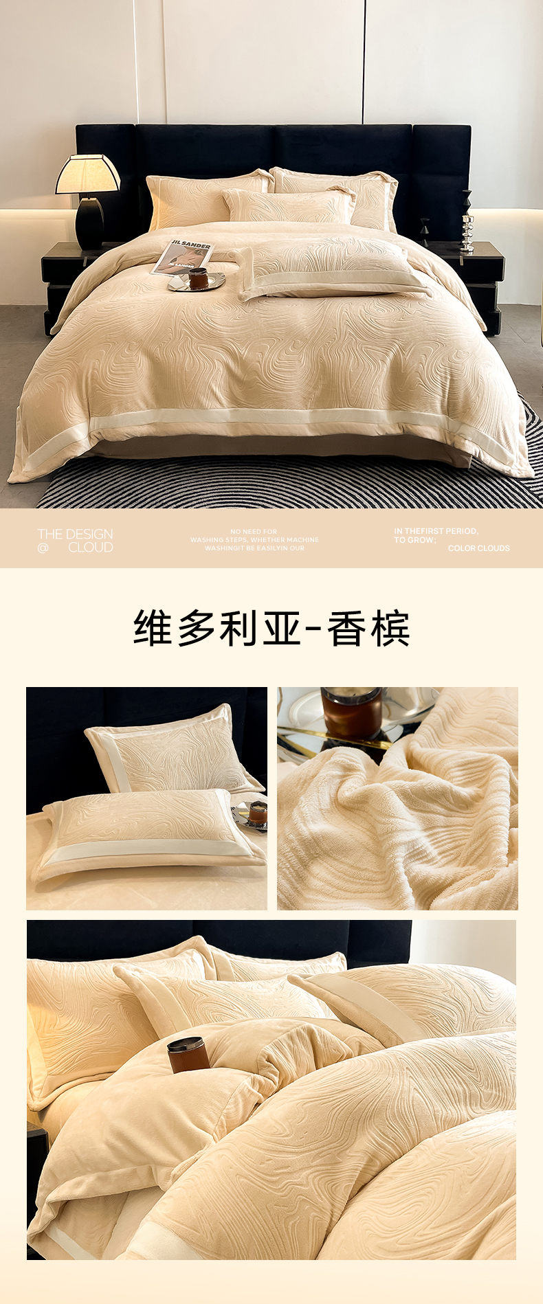 当前位置: 91家纺网 > 商品网购 > 床品套件 > 四件套 > 雕花绒四件套 > 极简 2024新款雕花牛奶绒宽边四件套-维多利亚 维多利亚-香槟