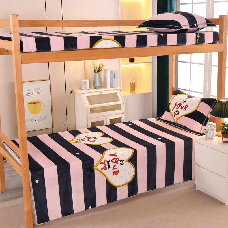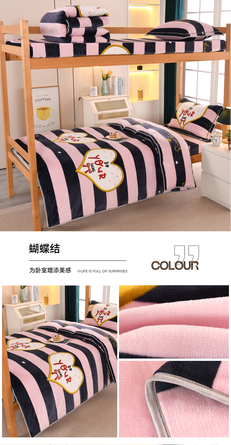 商品名称:乐旗家纺 2025新款5斤加厚牛奶绒三件学生宿舍上下铺单人床 蝴蝶结