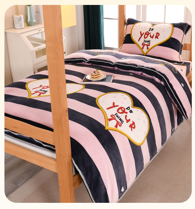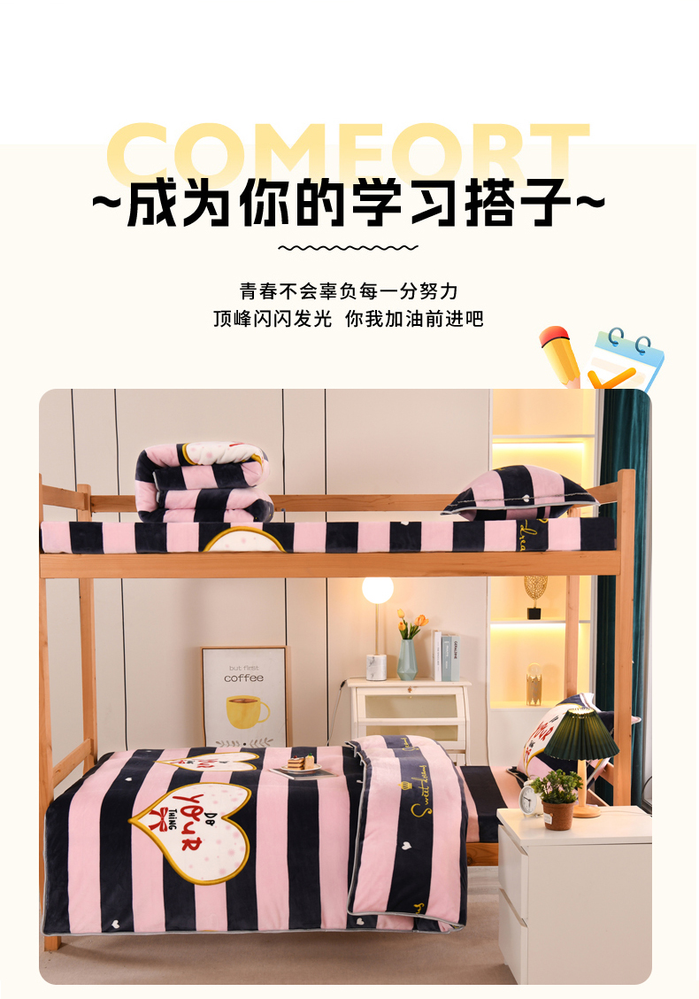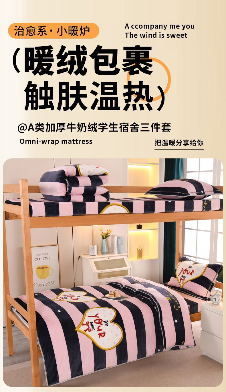 (总)乐旗家纺 2025新款5斤加厚牛奶绒三件学生宿舍上下铺单人床,蝴蝶结,简单爱,简约时尚,可爱米,可爱熊,同桌的你,晚安好梦,心心相印,熊猫乐园,叶叶情深,云朵