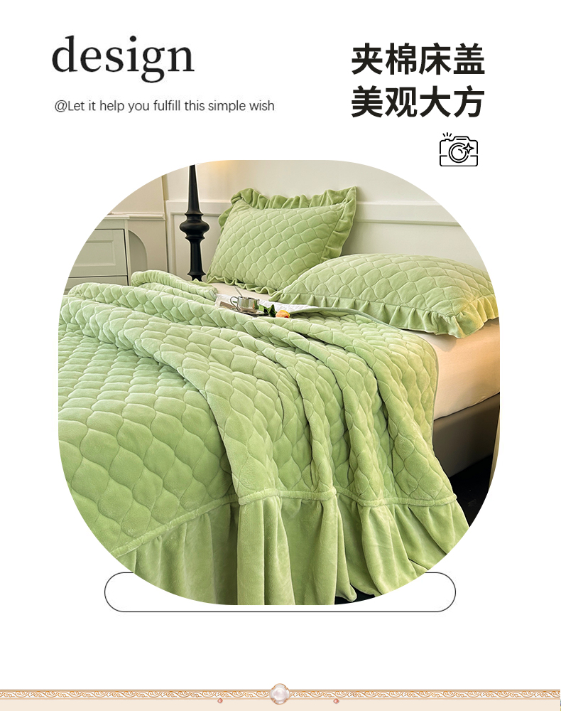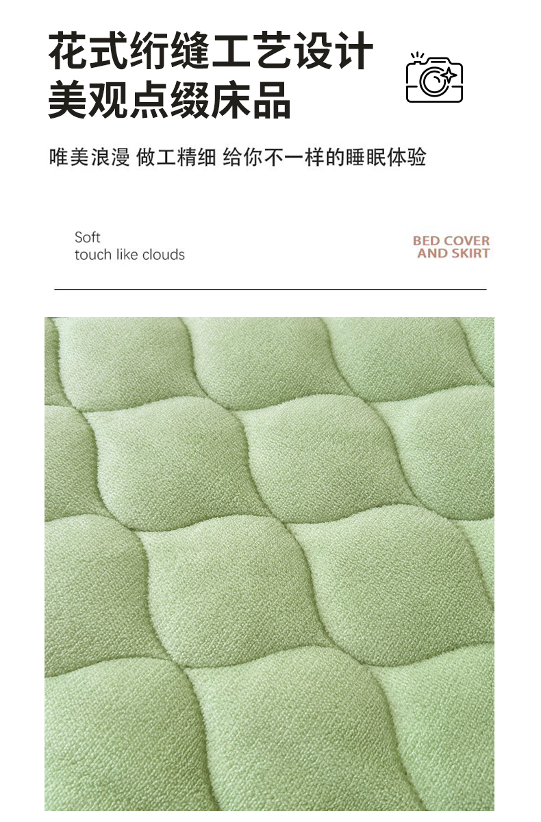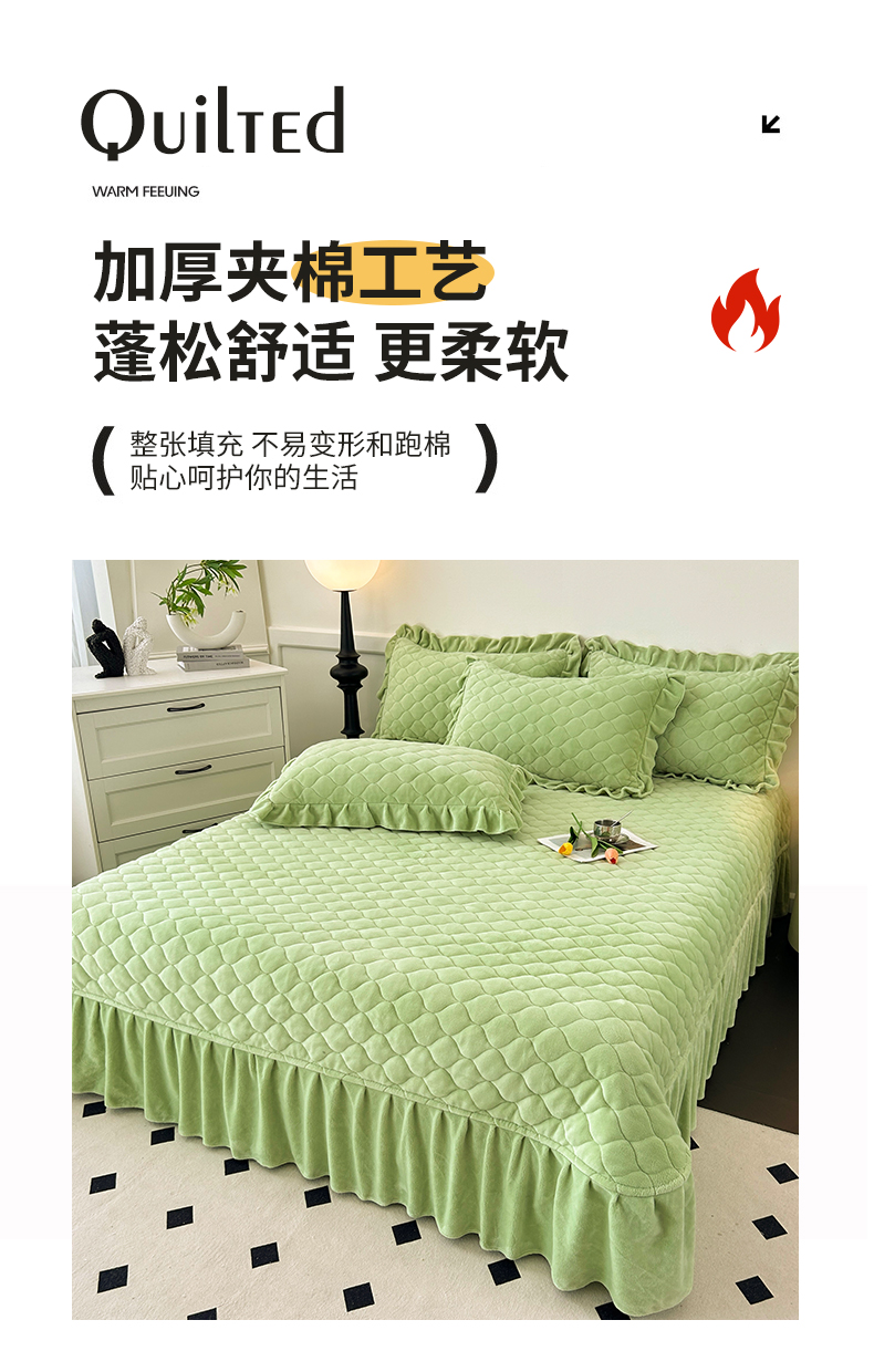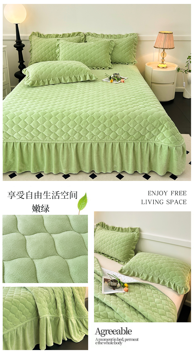 (总)屹成家纺2025新款水晶绒夹棉绗缝床裙四件套(塞纳河畔)四件套起售价不低于230元,大红,豆沙,翡翠绿,粉玉,橄榄绿,蔚蓝,银灰