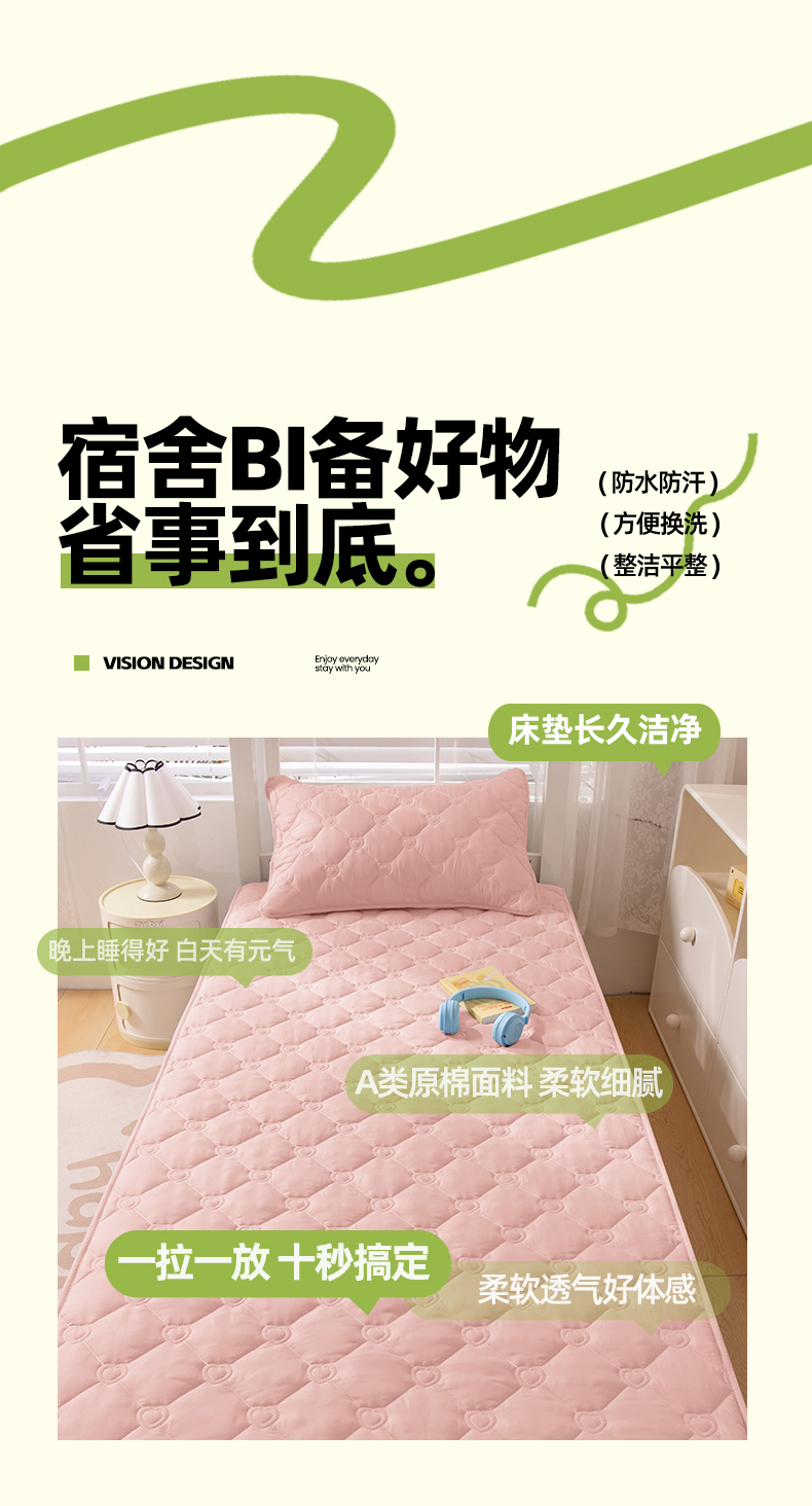 商品名称:暖季家纺 2025新款心芙系列夹棉防水床笠学生款 心芙-玉色