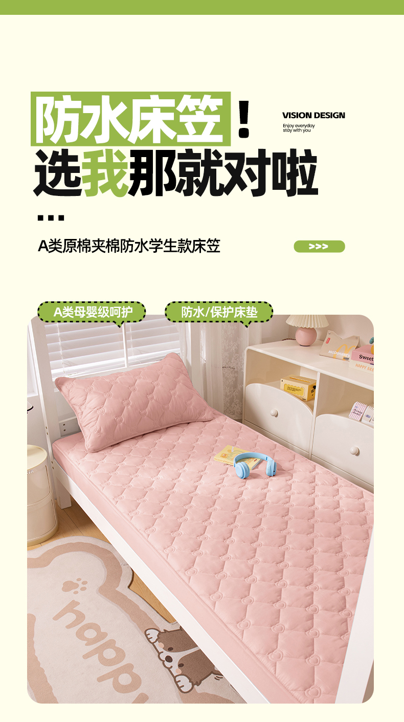 暖季家纺 2025新款心芙系列夹棉防水床笠学生款 心芙-玉色