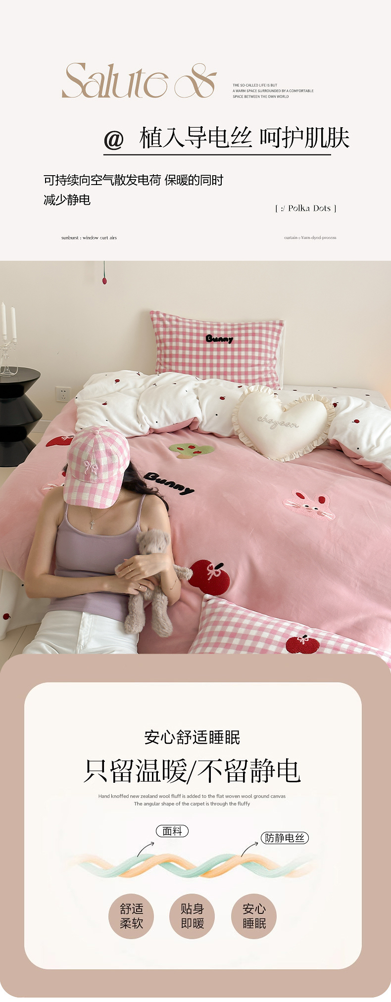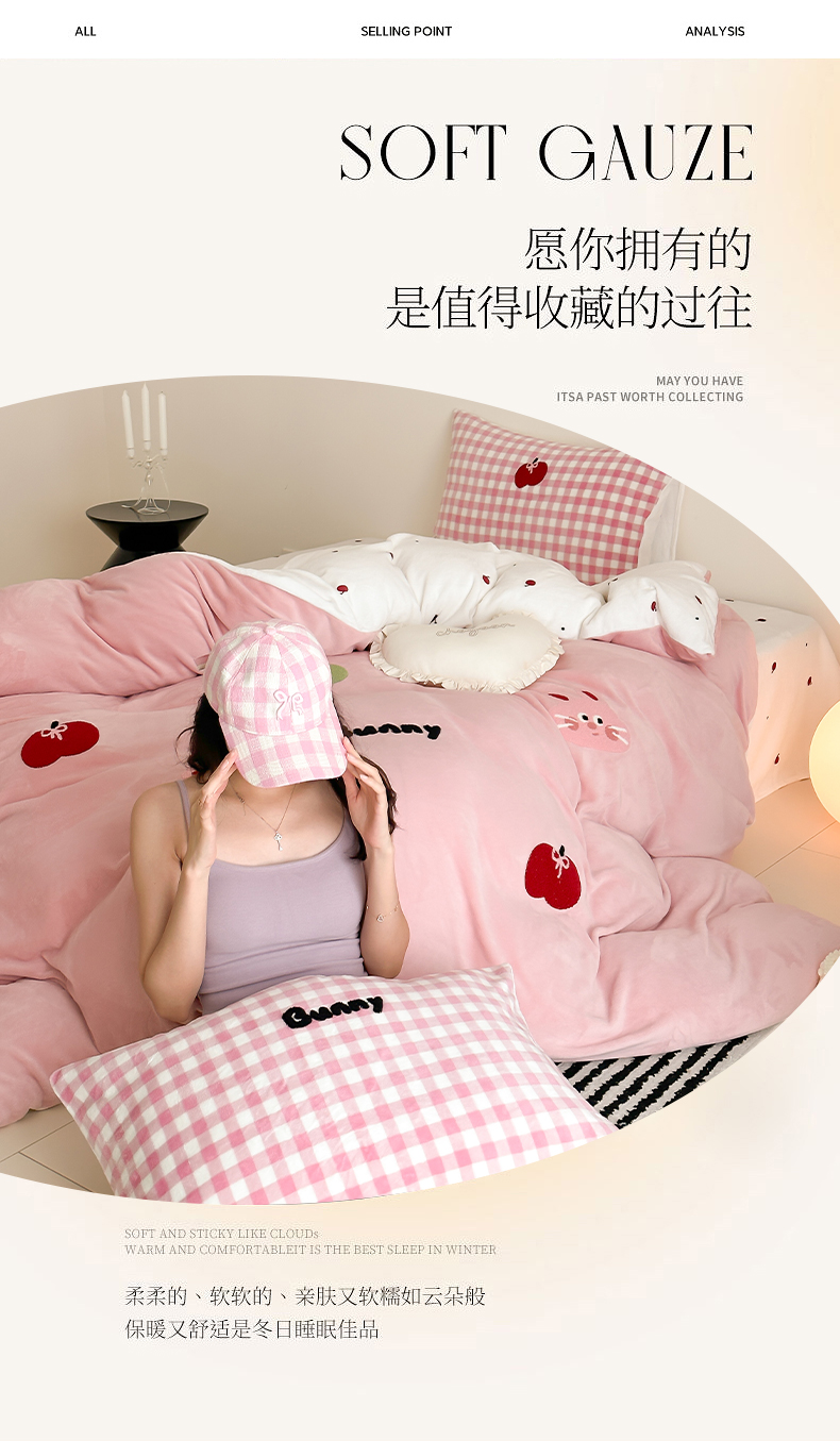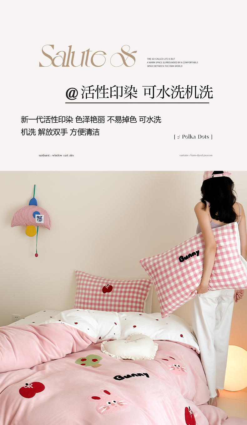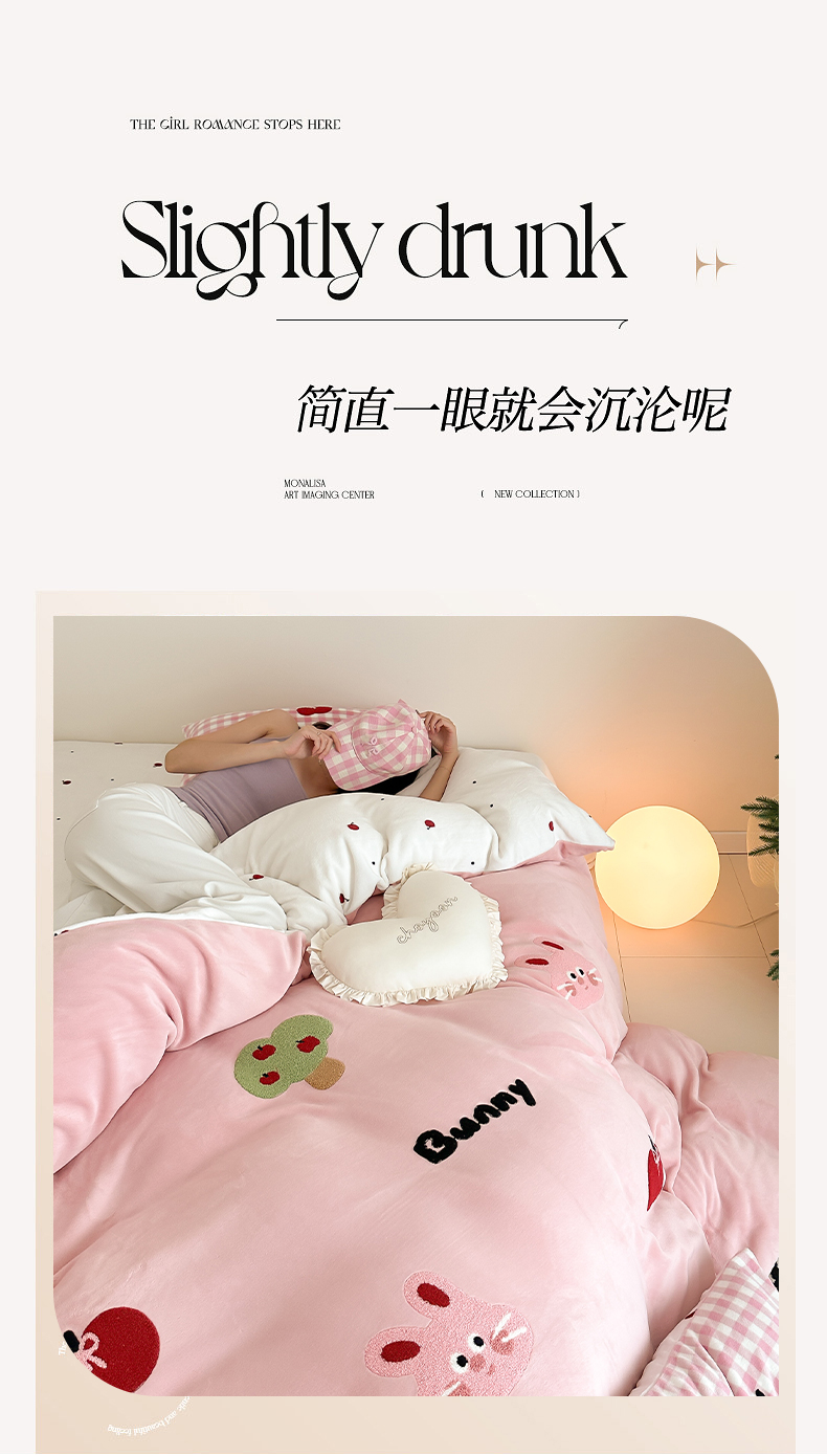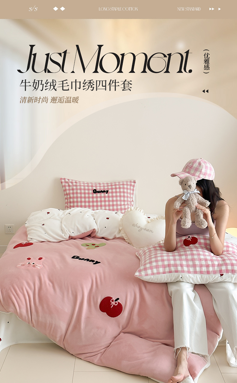 当前位置: 91家纺网 > 商品网购 > 床品套件 > 四件套 > 牛奶绒四件套 > 时光里 2024新款牛奶绒绣花款四件套 苹果兔