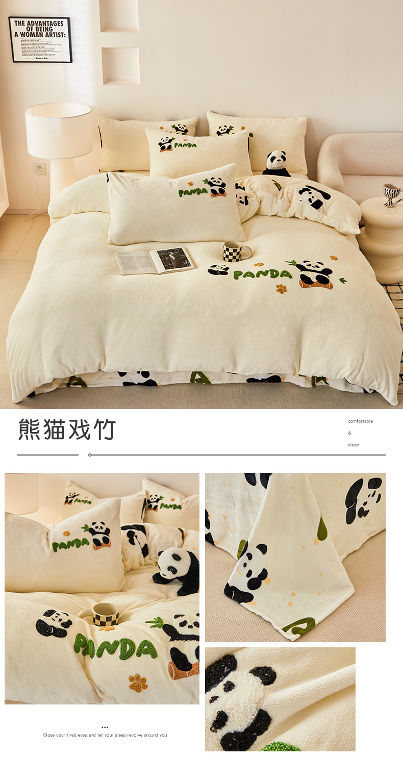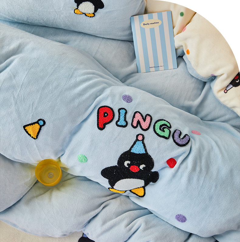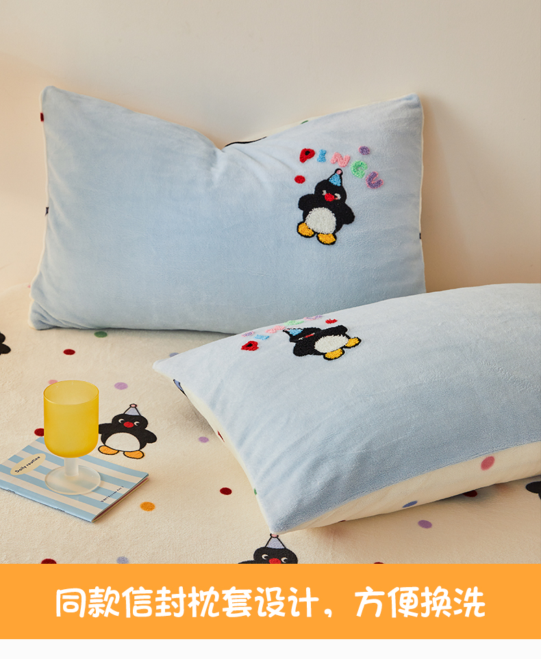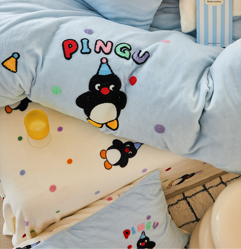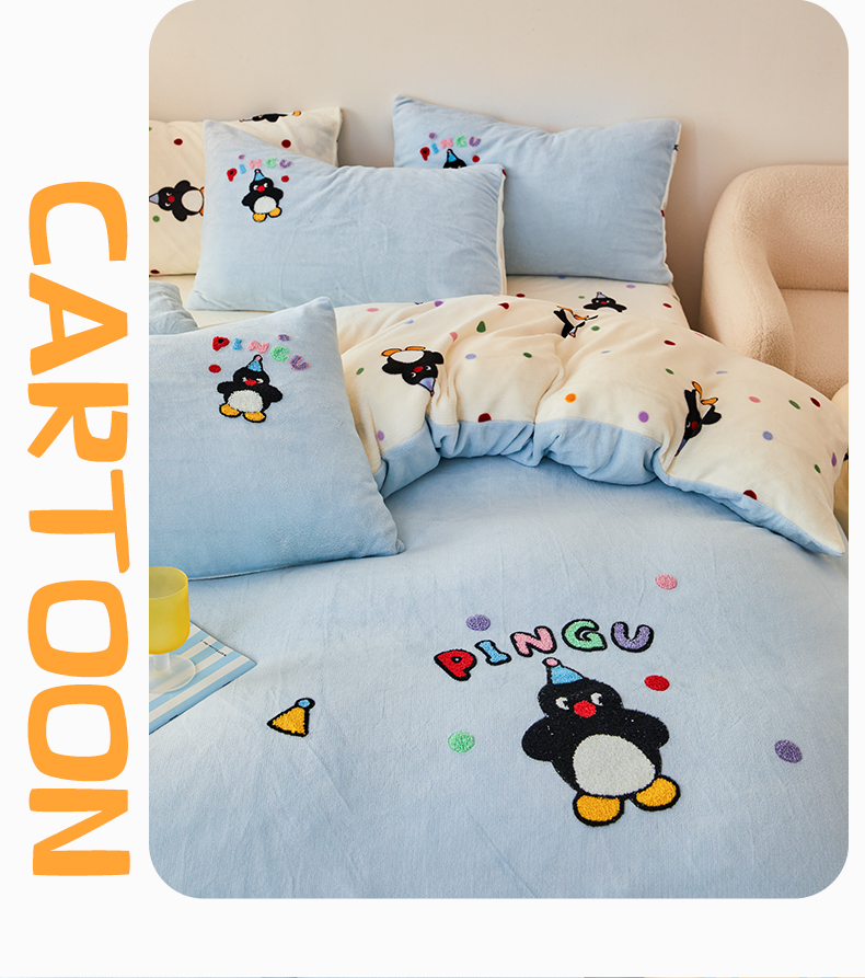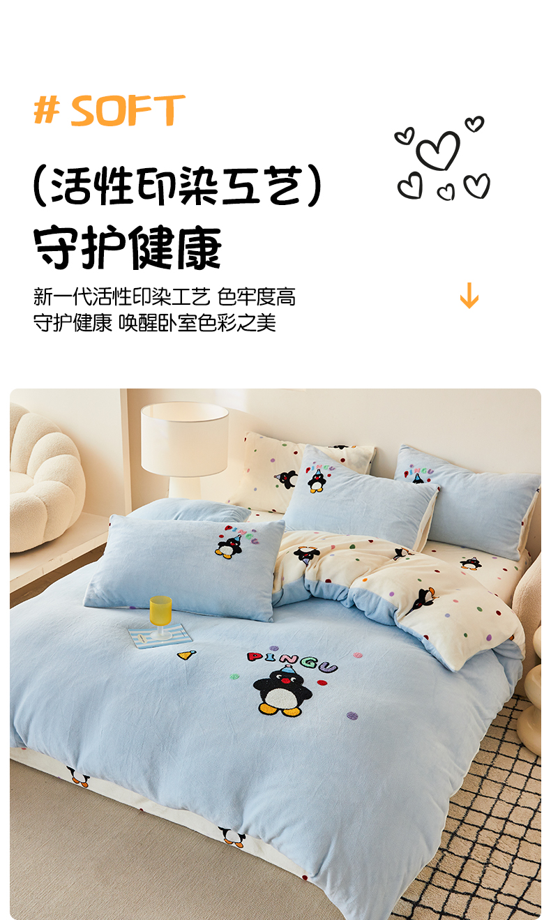 商品名称:娜娜 2024新款高克重牛奶绒毛巾绣四件套 企鹅宝贝