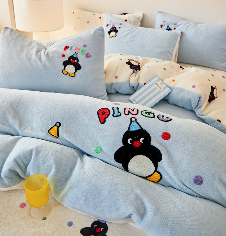 娜娜 2024新款高克重牛奶绒毛巾绣四件套 企鹅宝贝