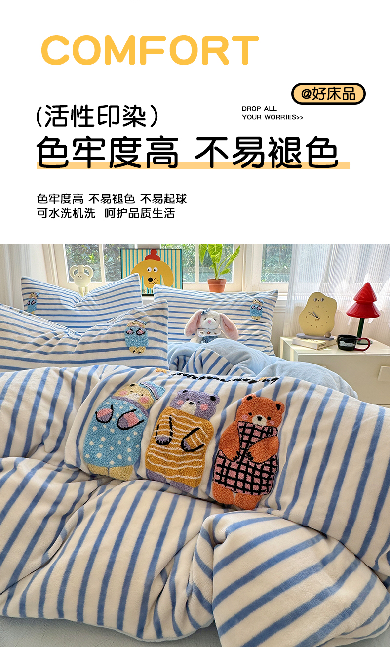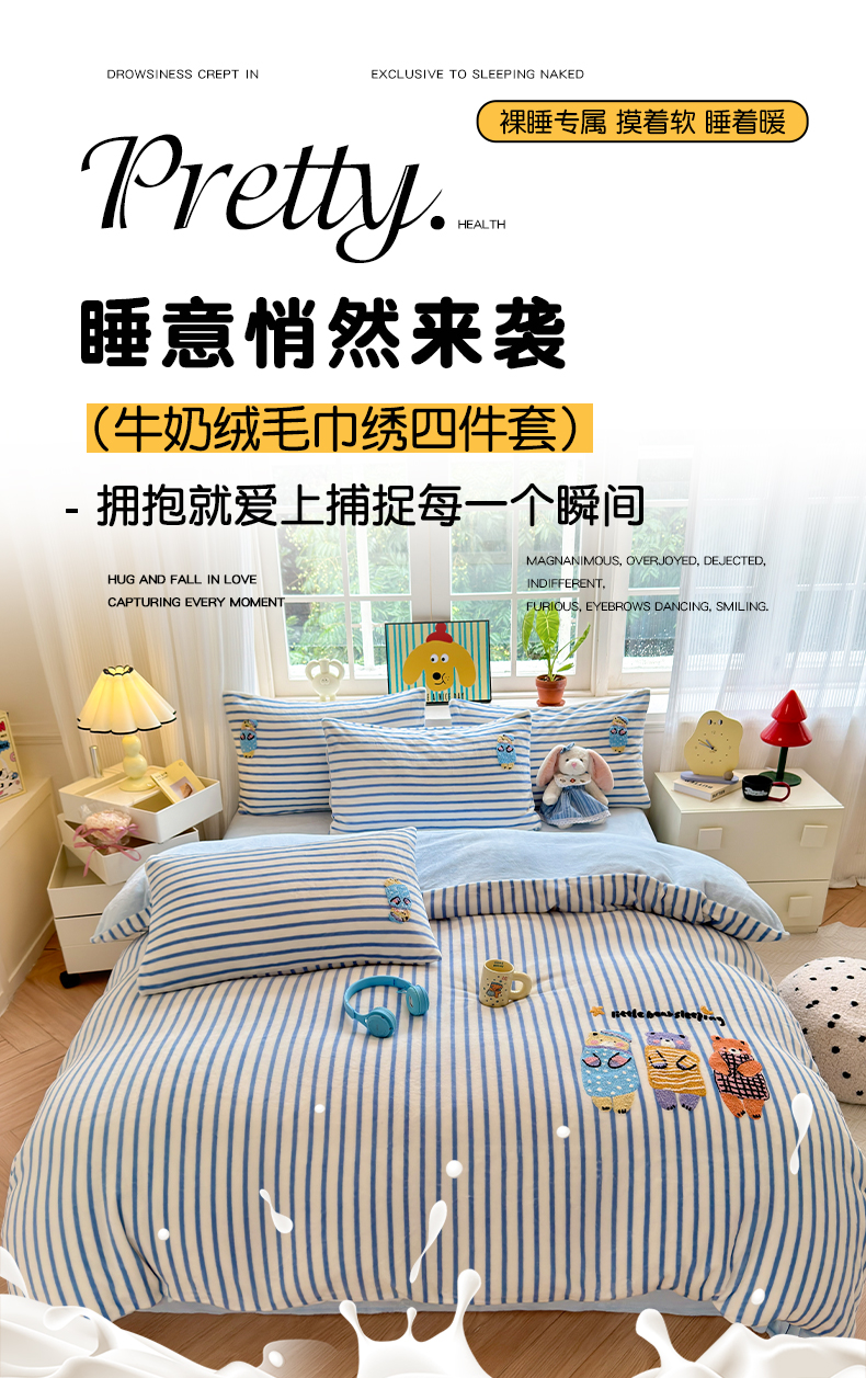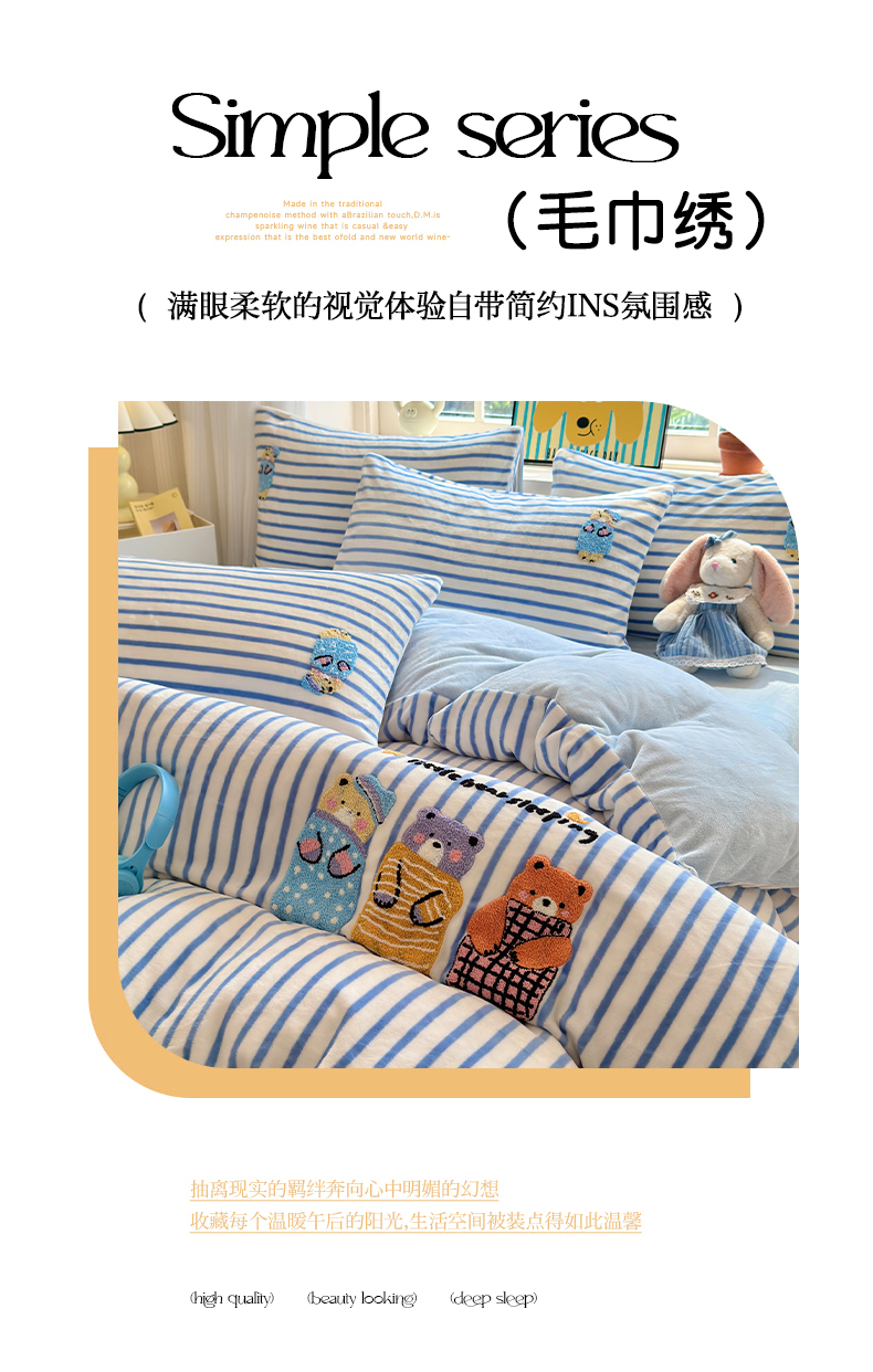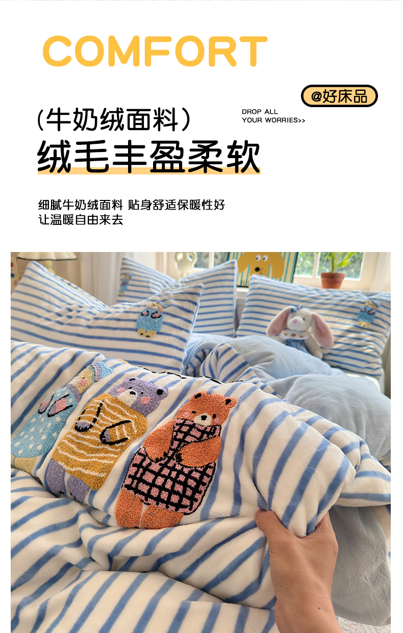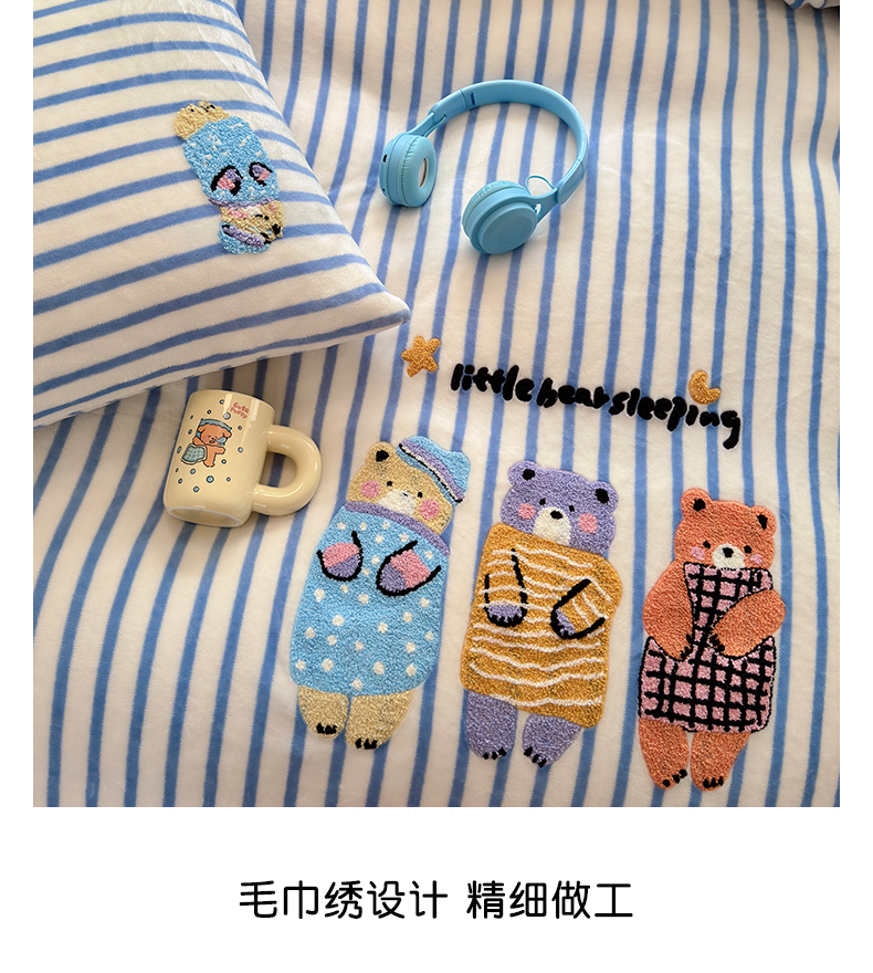 商品名称:娜娜 2024新款加厚保暖高克重牛奶绒毛巾绣四件套 牛奶绒抱抱熊