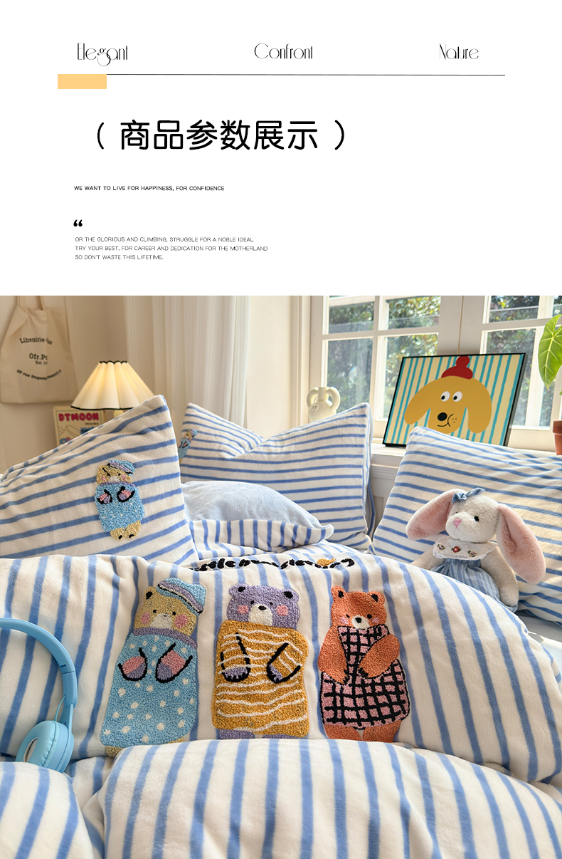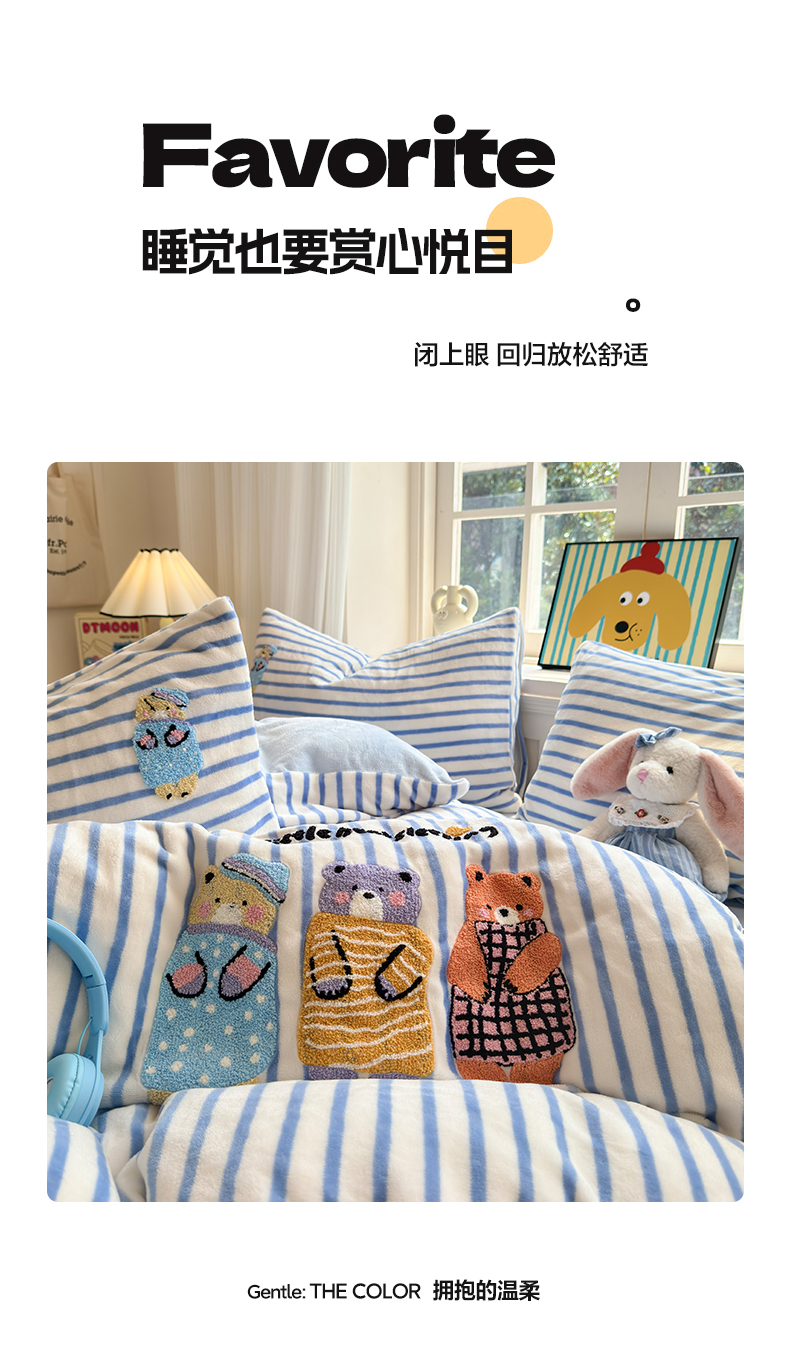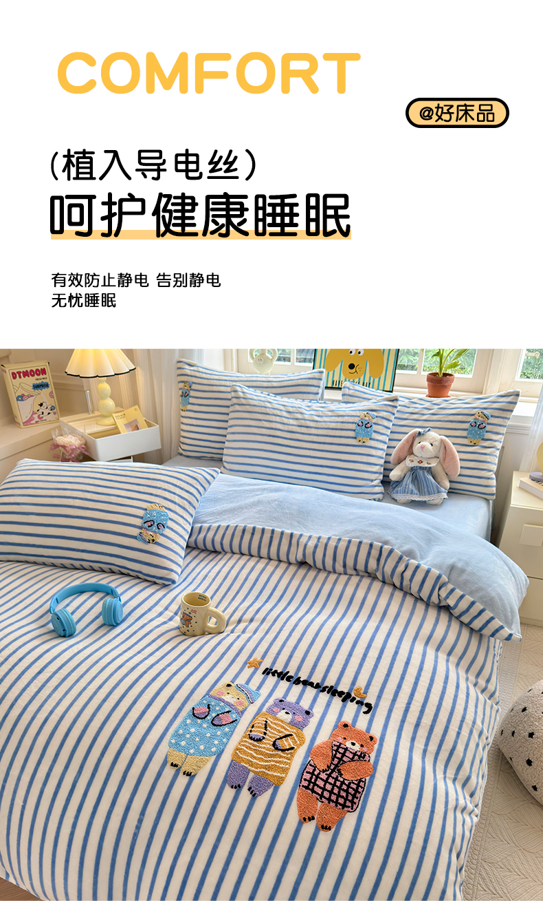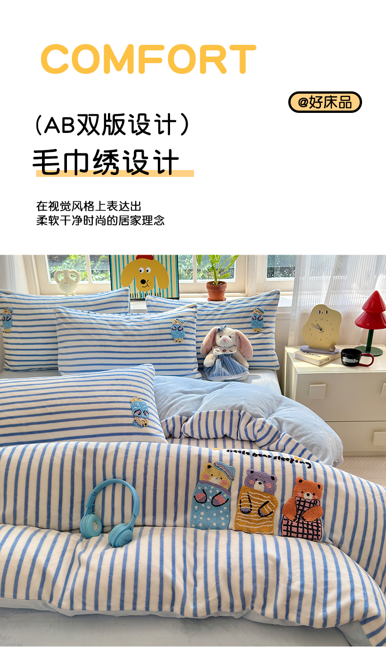 商品名称:娜娜 2024新款加厚保暖高克重牛奶绒毛巾绣四件套 牛奶绒抱抱熊