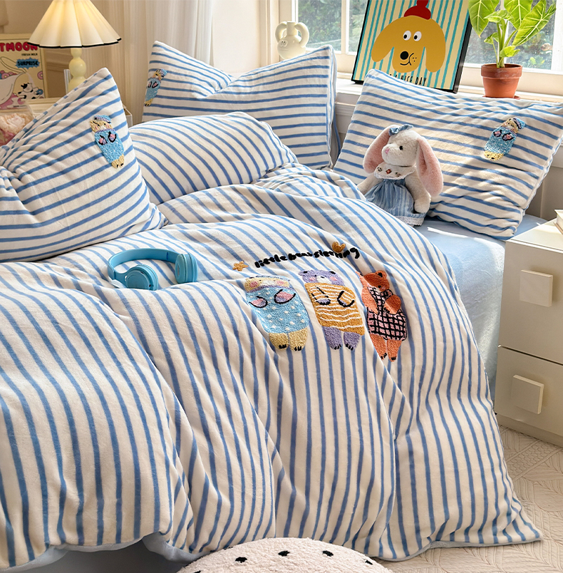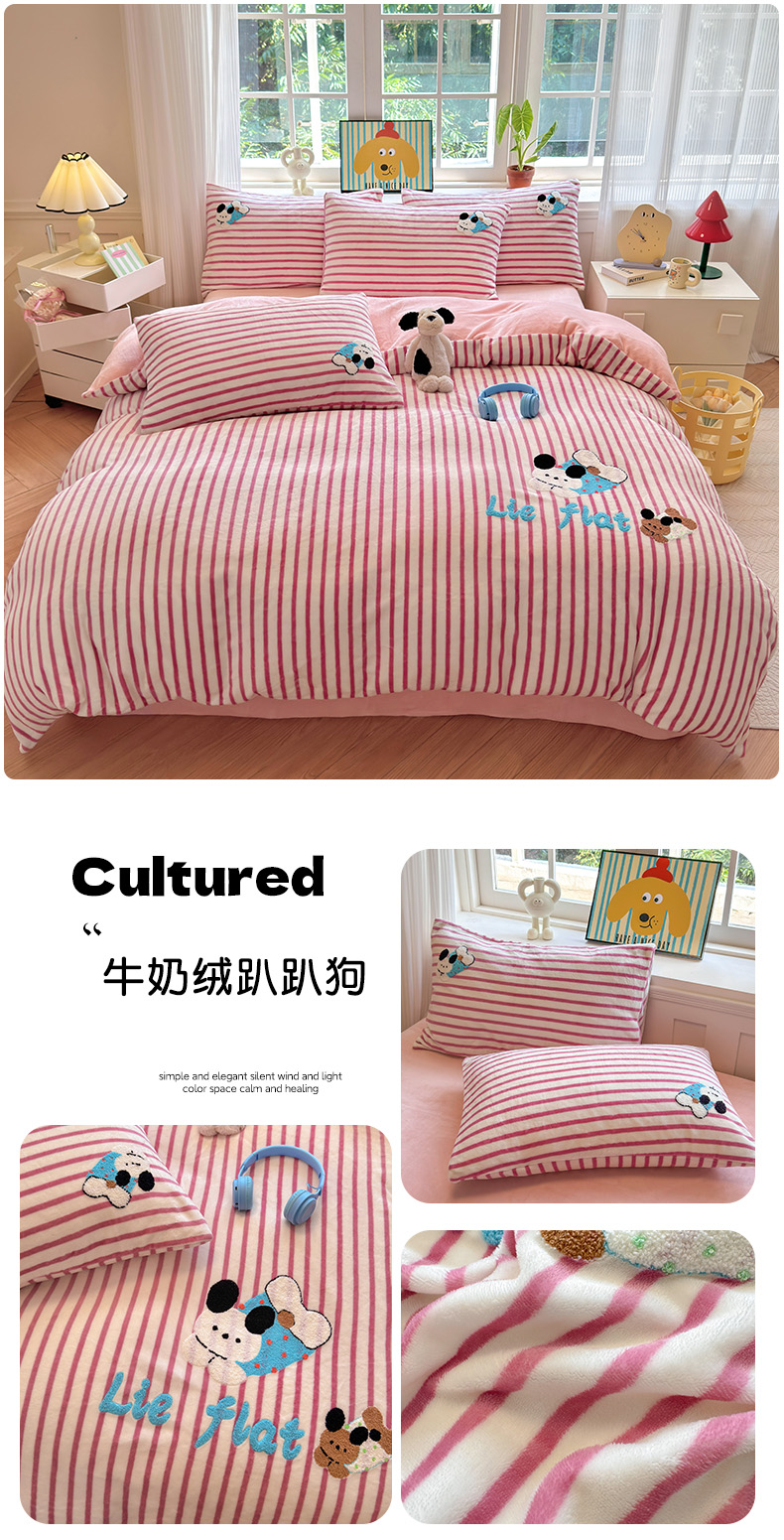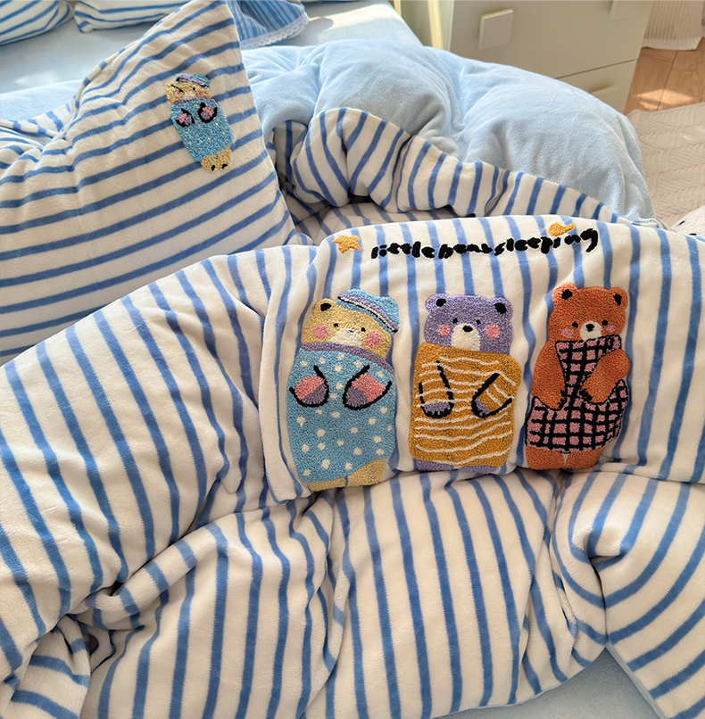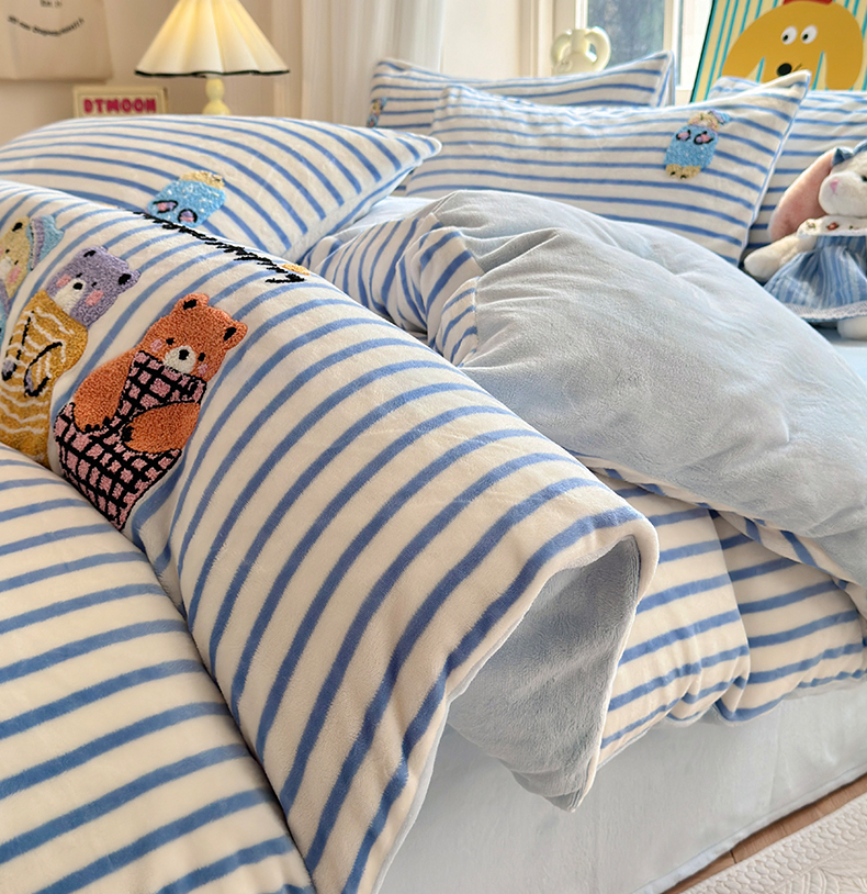 娜娜 2024新款加厚保暖高克重牛奶绒毛巾绣四件套 牛奶绒抱抱熊