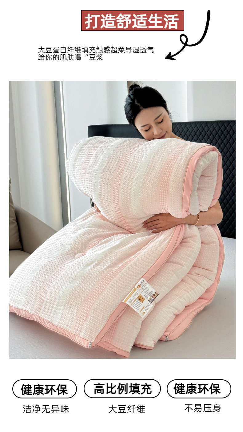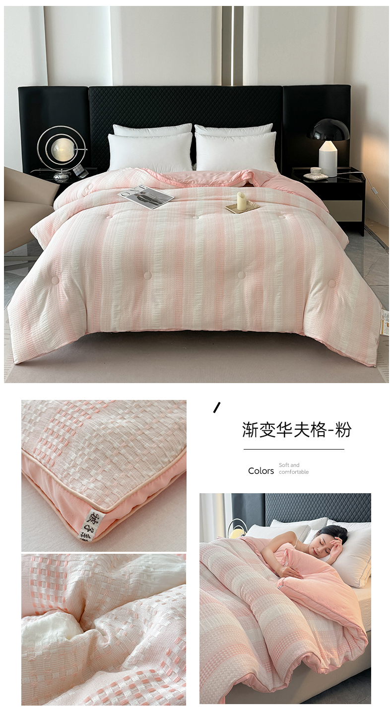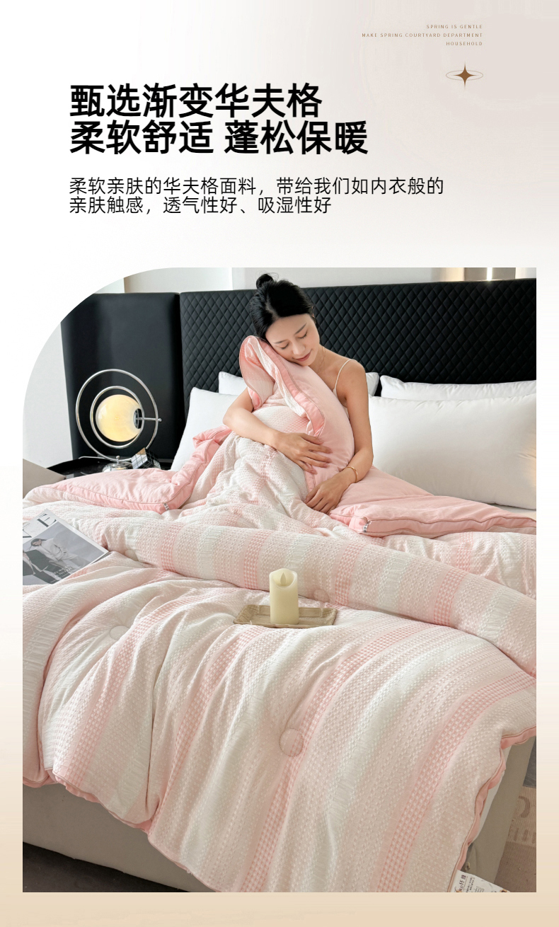 商品名称:蓝冰家纺 2024新款渐变华夫格大豆被冬被 网格时代--粉