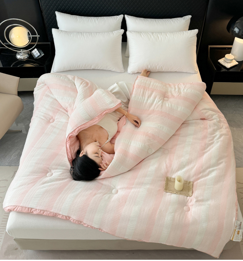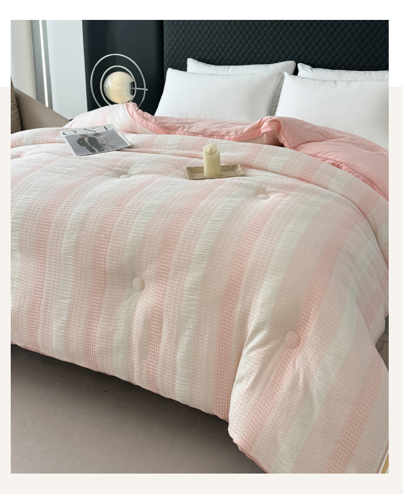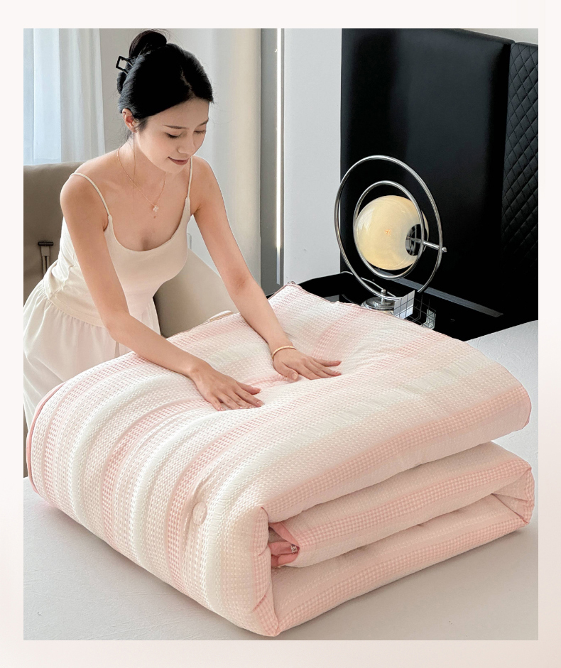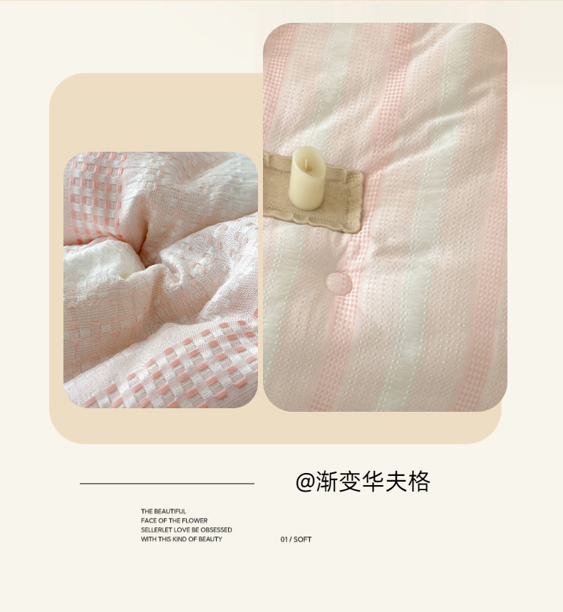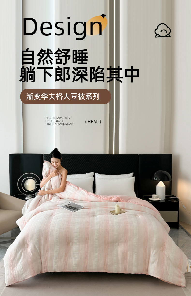 商品名称:蓝冰家纺 2024新款渐变华夫格大豆被冬被 网格时代--粉