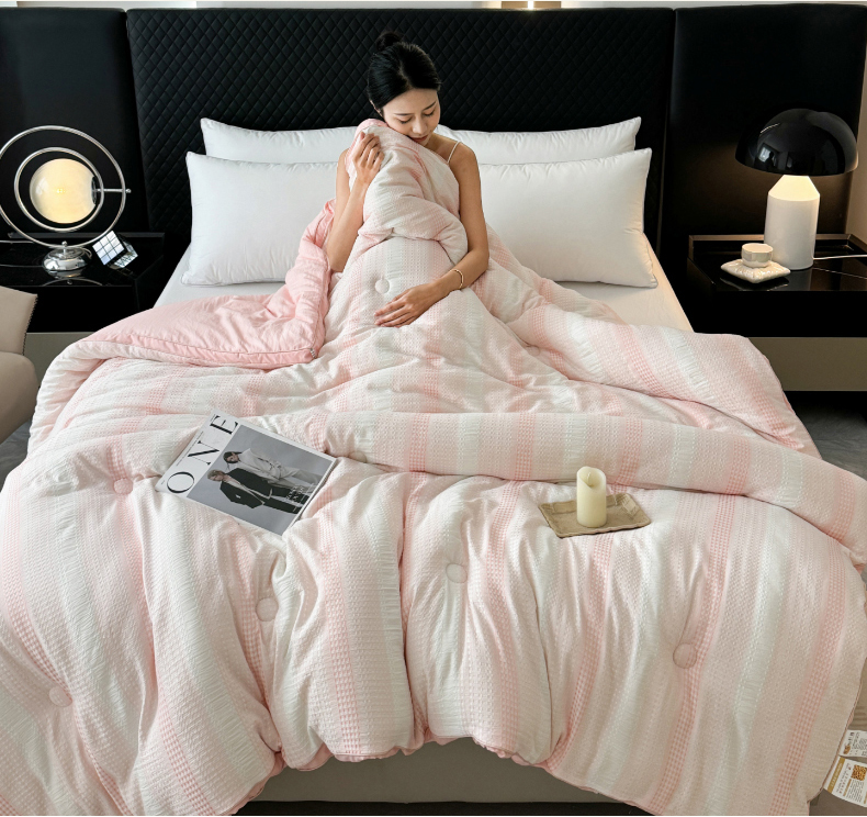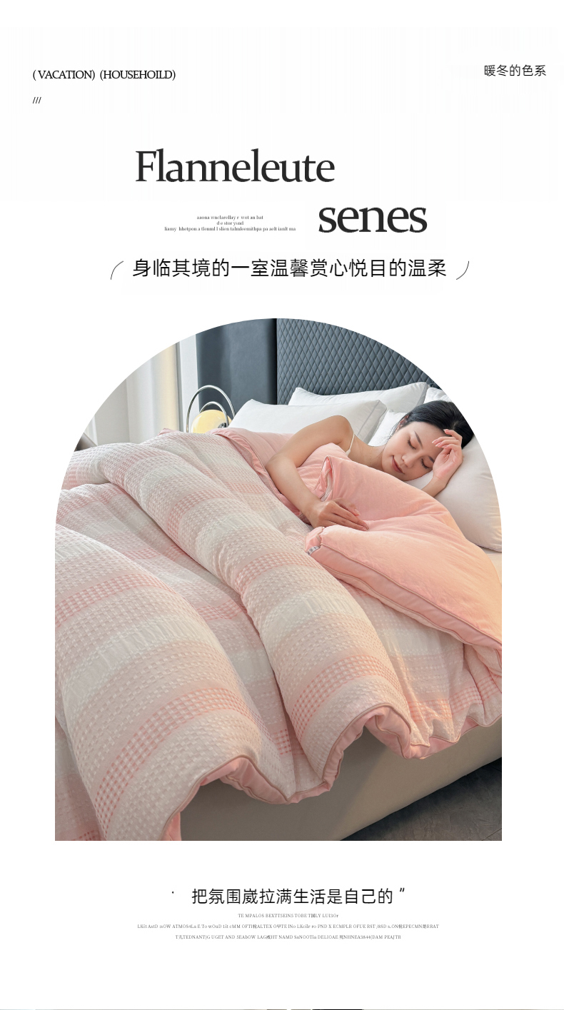 蓝冰家纺 2024新款渐变华夫格大豆被冬被 网格时代--粉