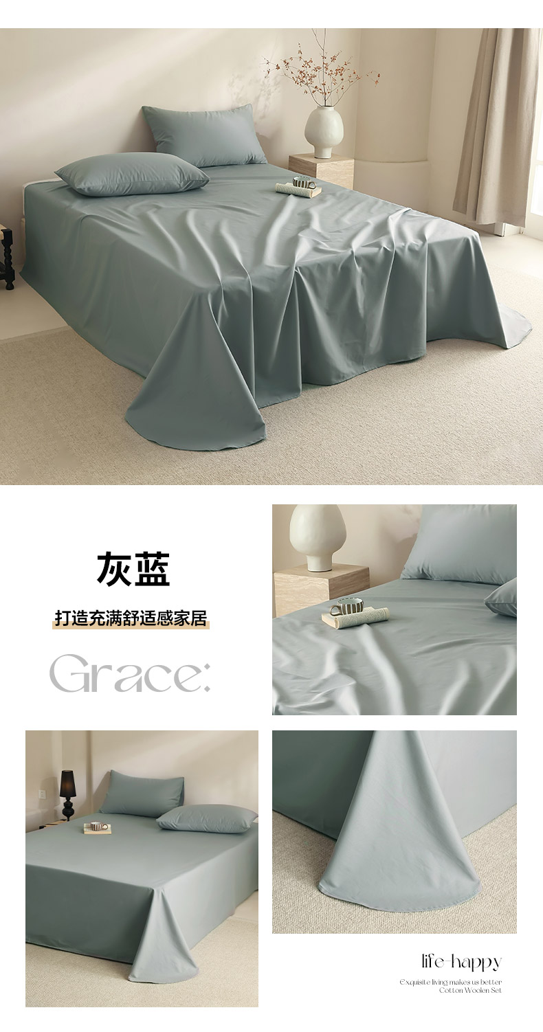 轩和家居 2024新款50S长绒棉磨毛单床单 灰蓝