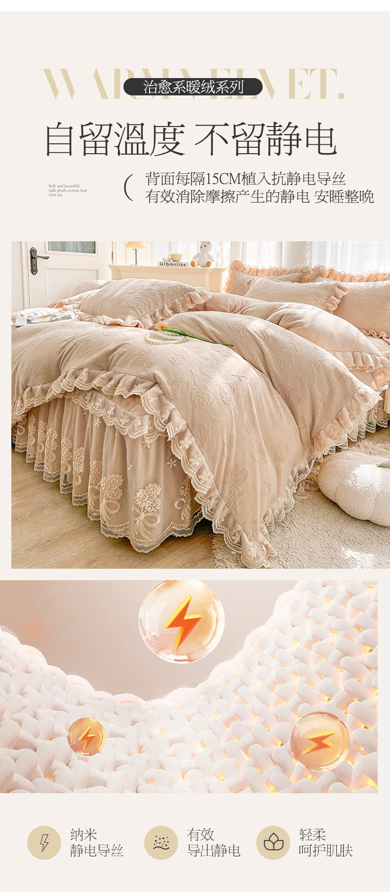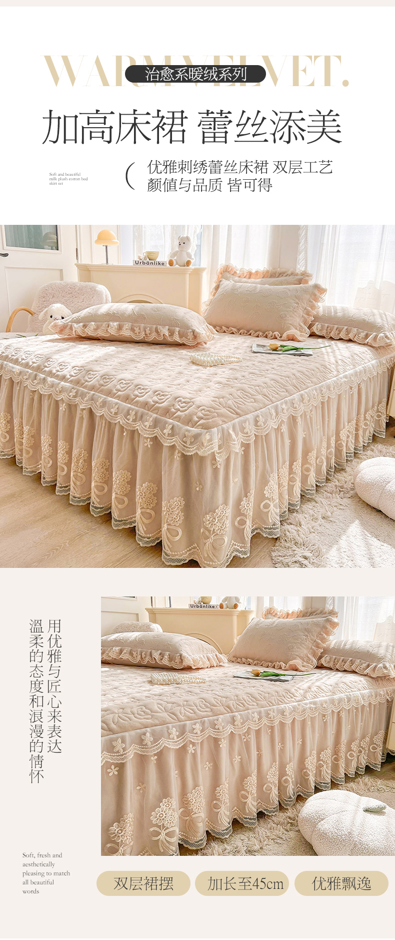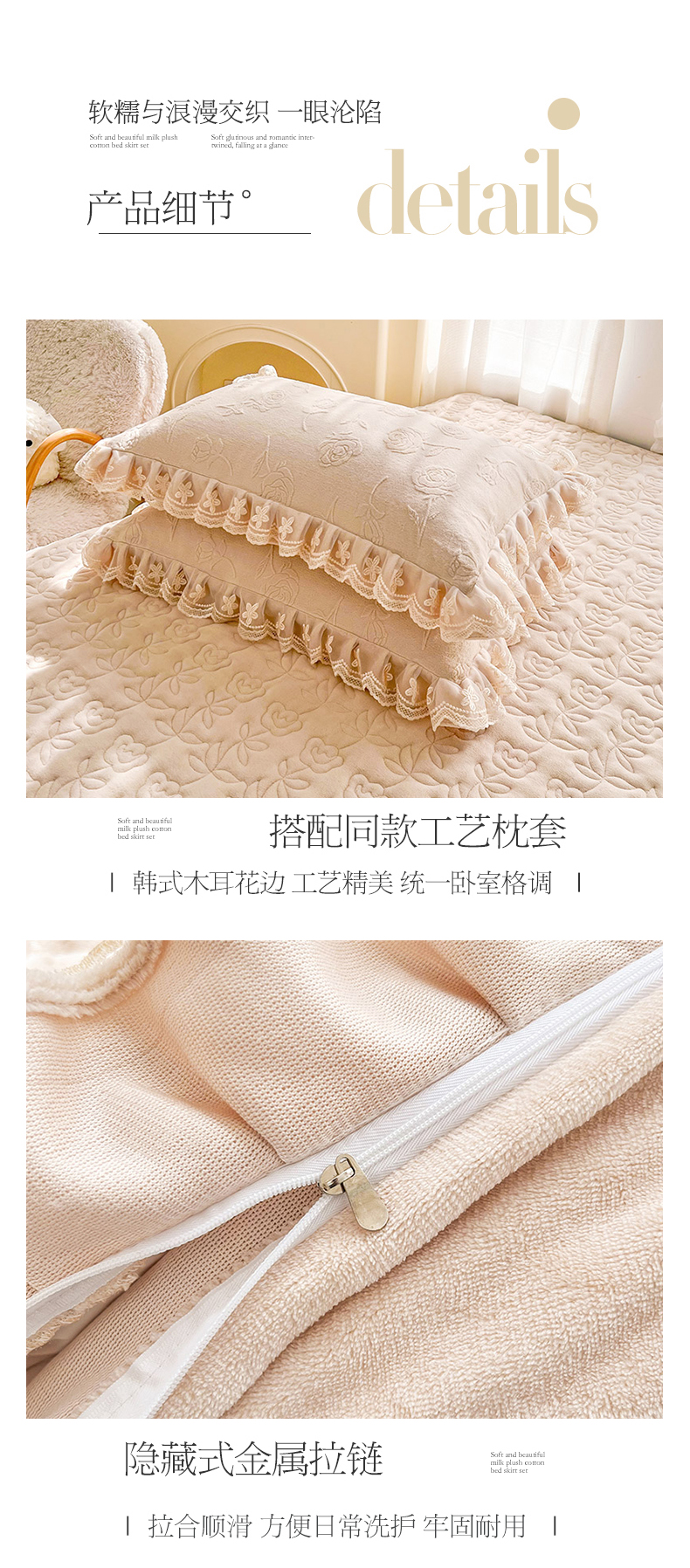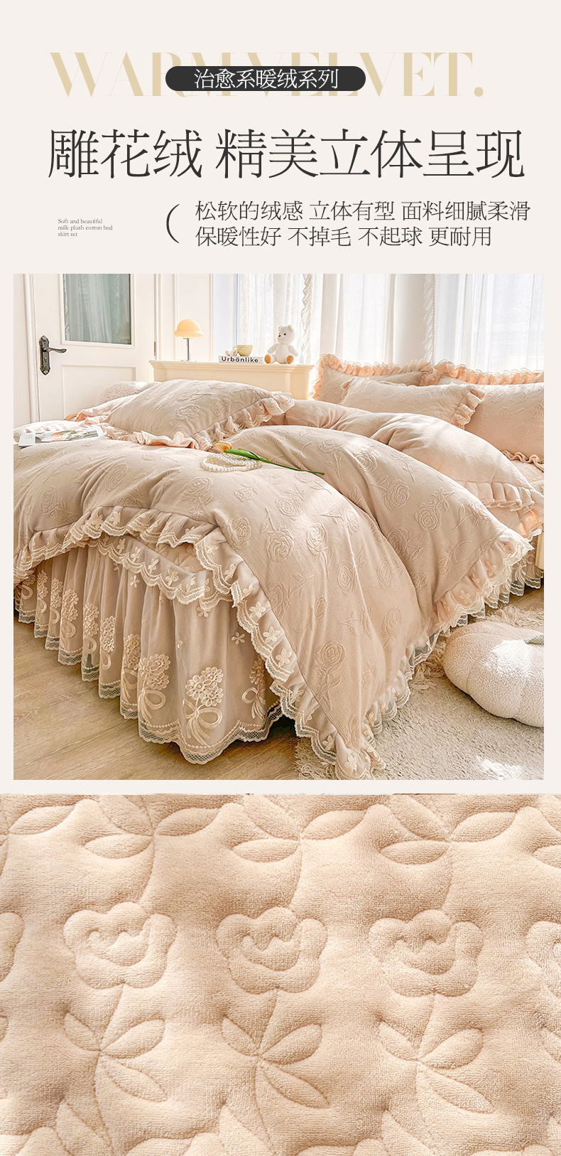 当前位置: 91家纺网 > 商品网购 > 床品套件 > 四件套 > 牛奶绒四件套 > 虹星家纺 2024新款雕花夹棉蕾丝牛奶绒床裙四件套-罗马花园 罗马花园 卡其