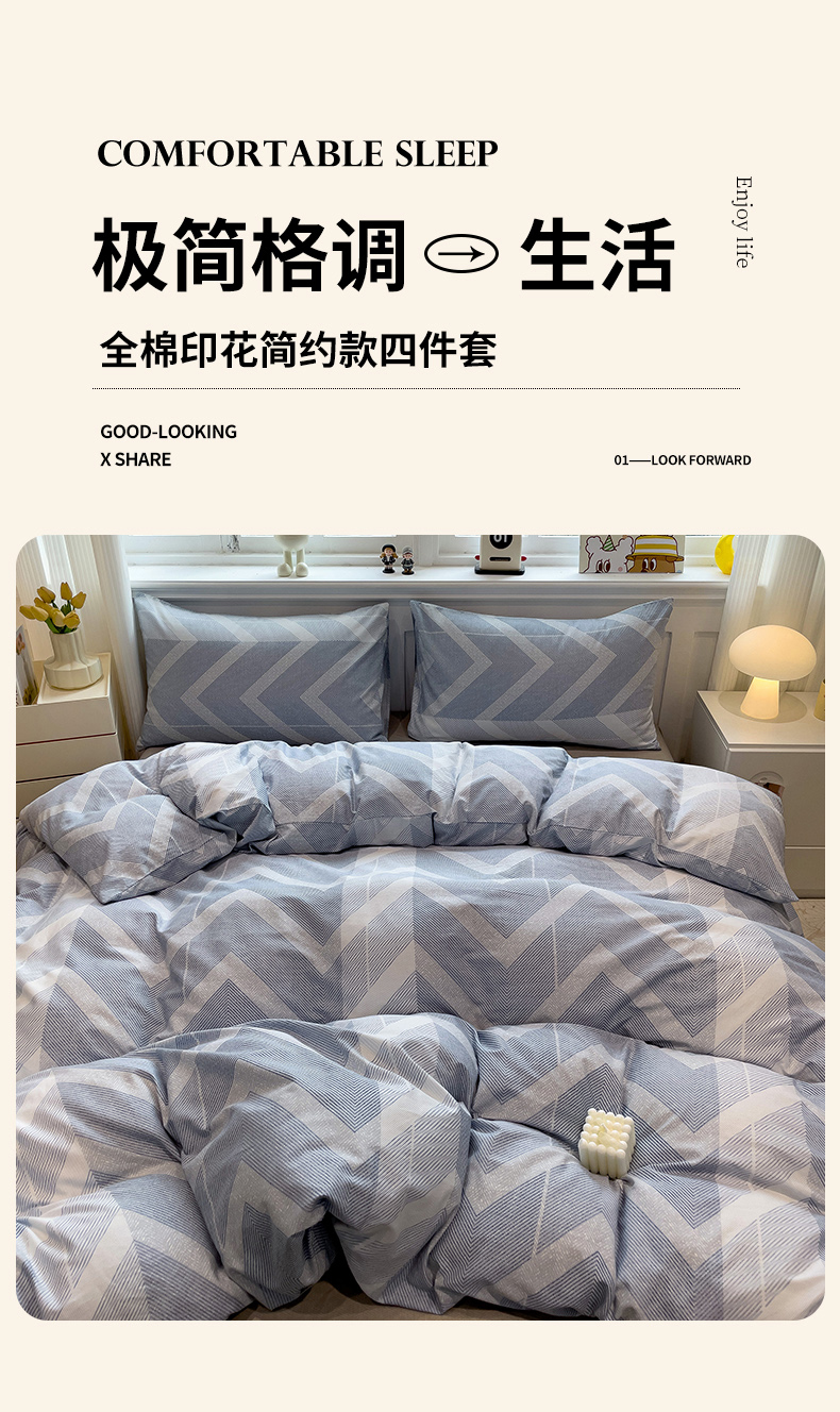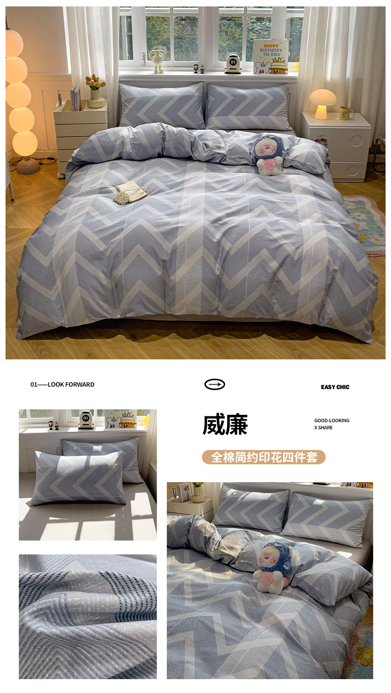 捌月 2025新款13372喷气全棉四件套-简约风系列 威廉