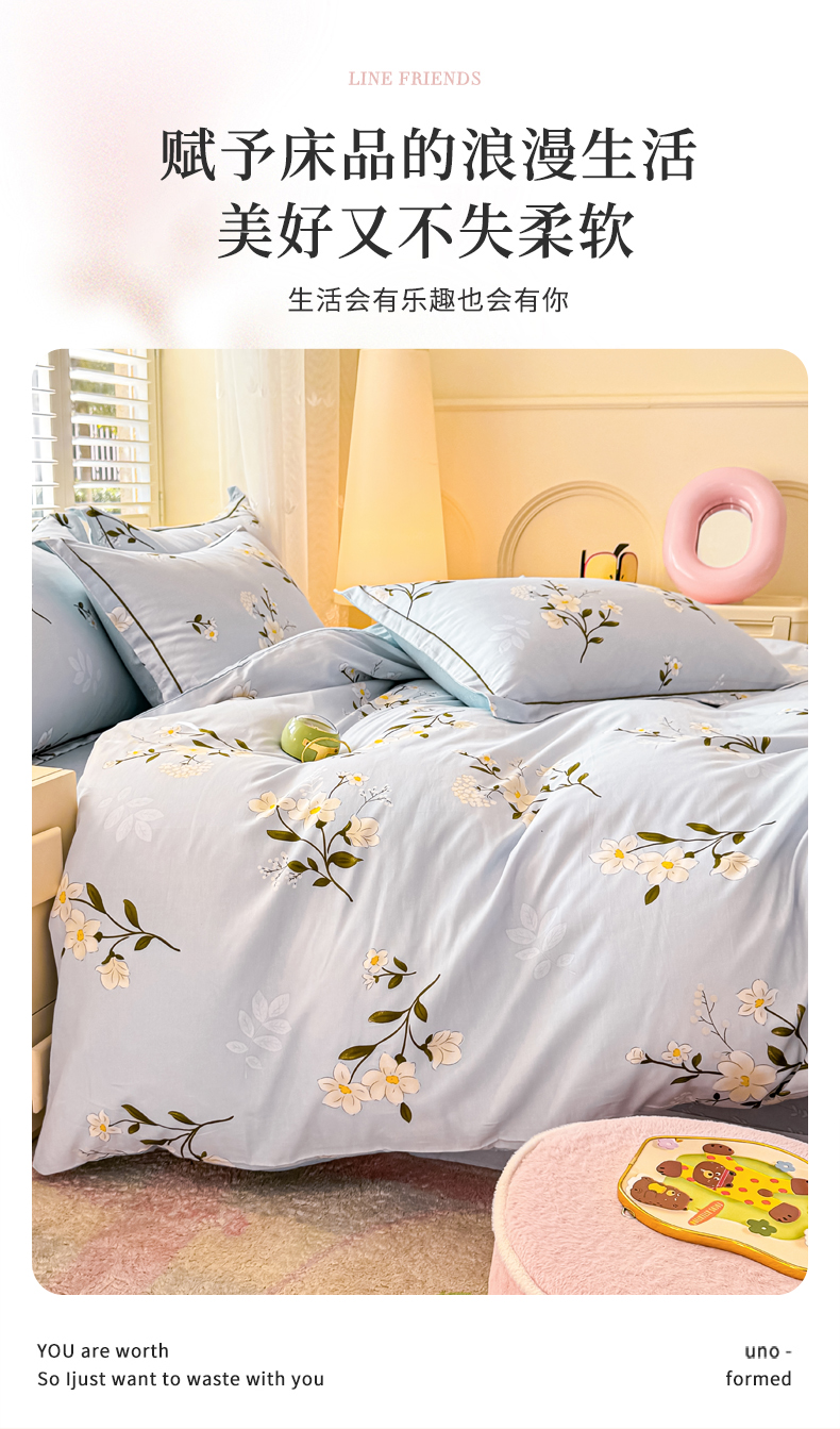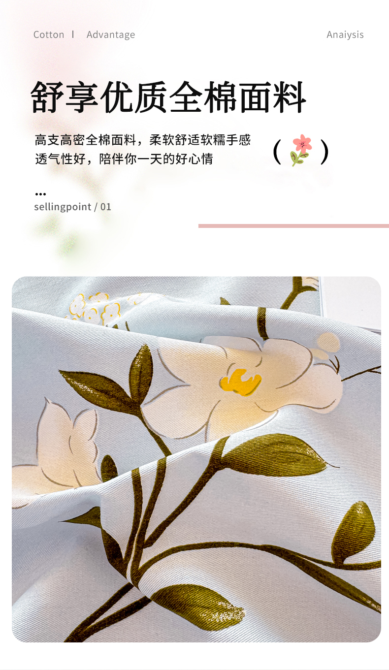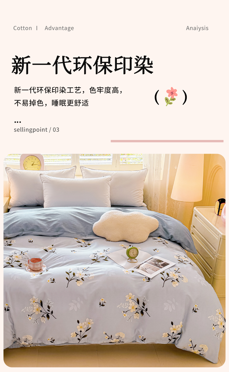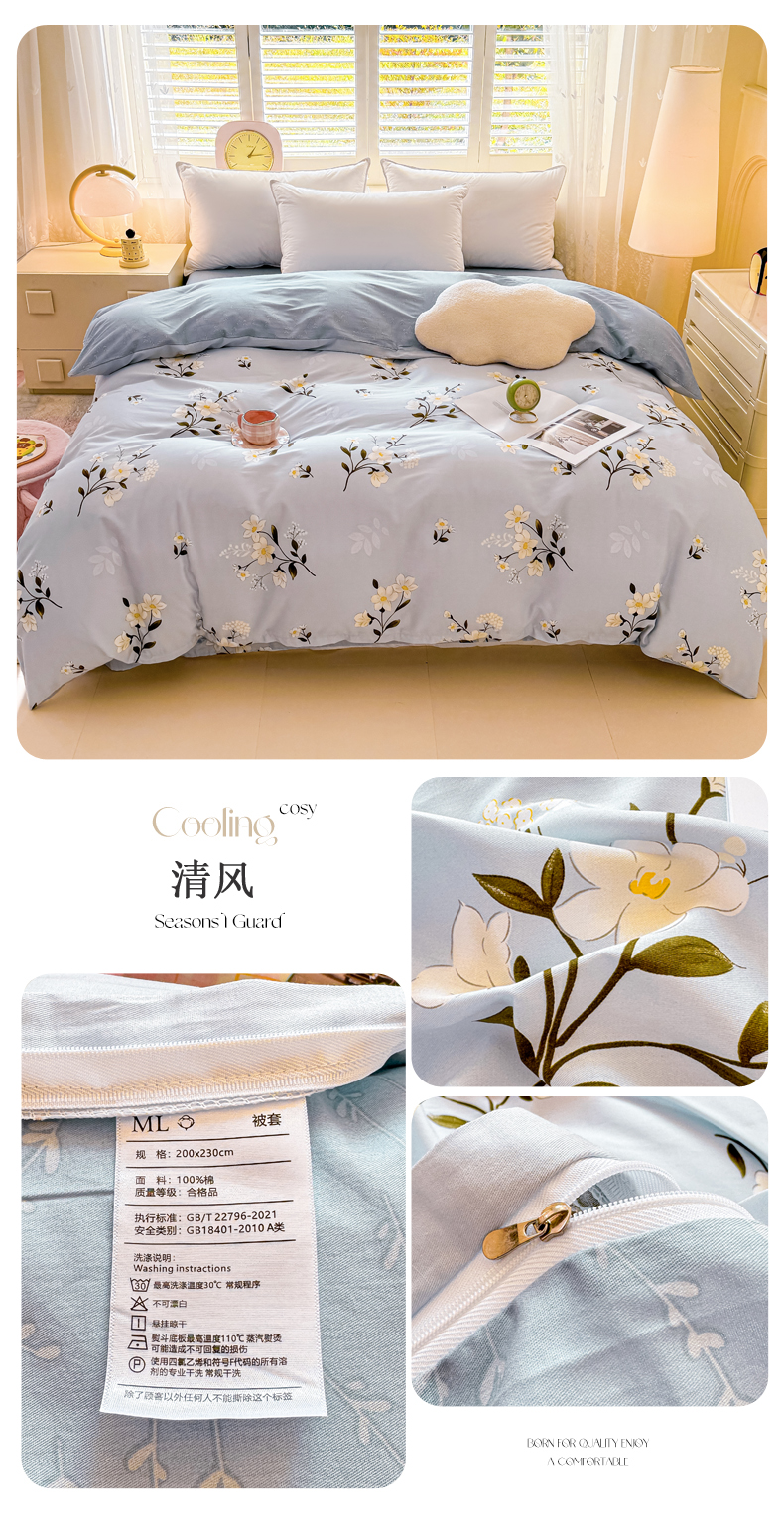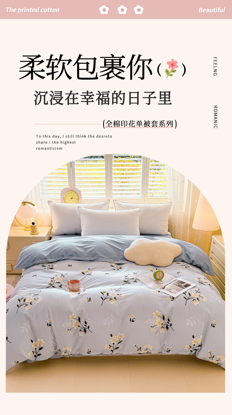 洺兰家居 2025年新款全棉A类全喷气印花小清新单被套 清风