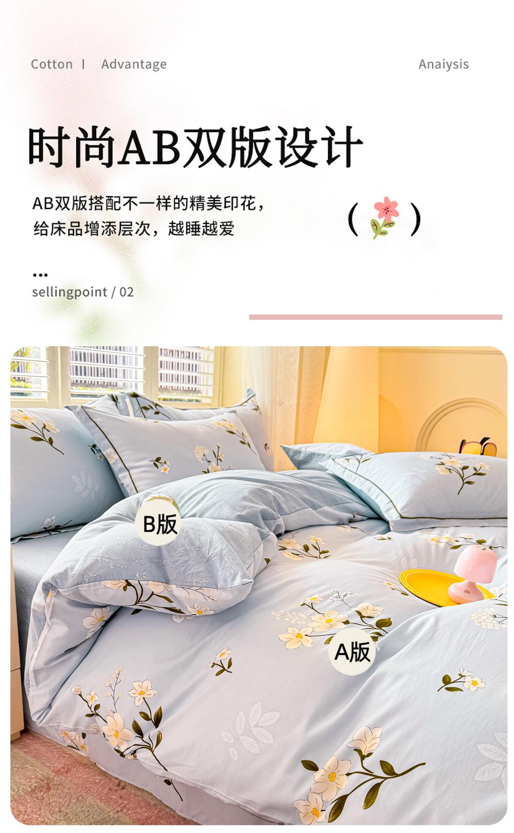 商品名称:洺兰家居 2025年新款全棉A类全喷气印花小清新单被套 清风