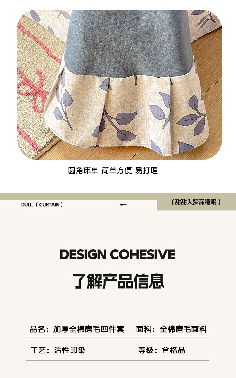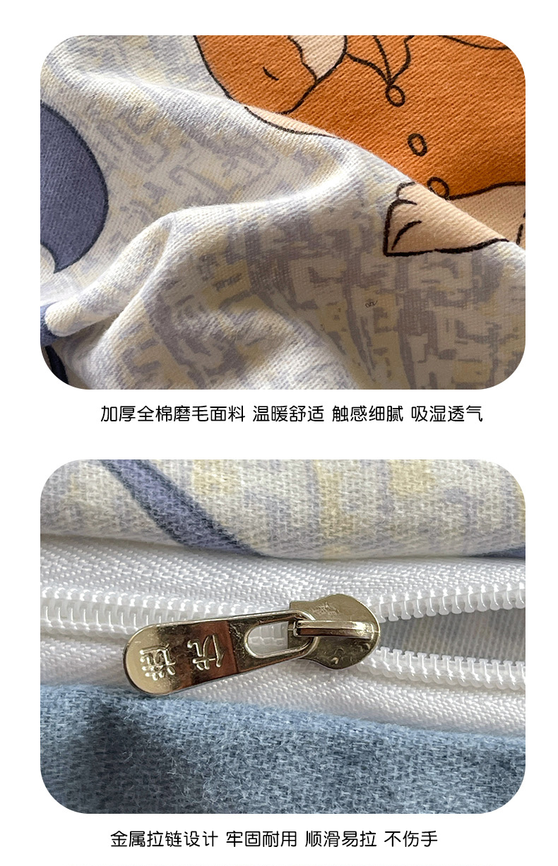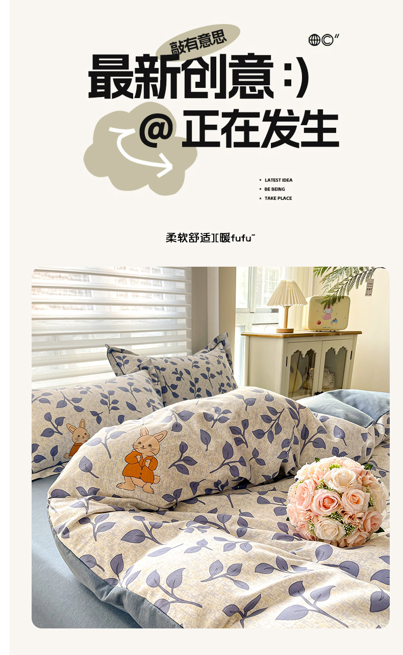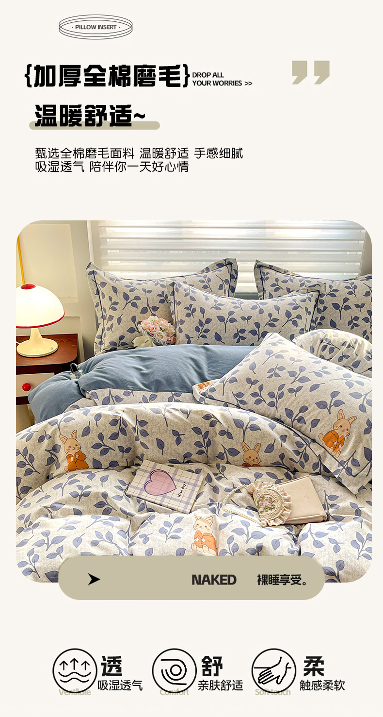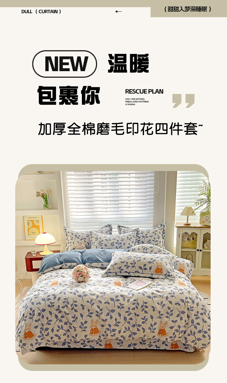 优选良品直播新款全棉磨毛喷气印花四件套加厚纯棉三件套(一字绣工艺款)林见兔