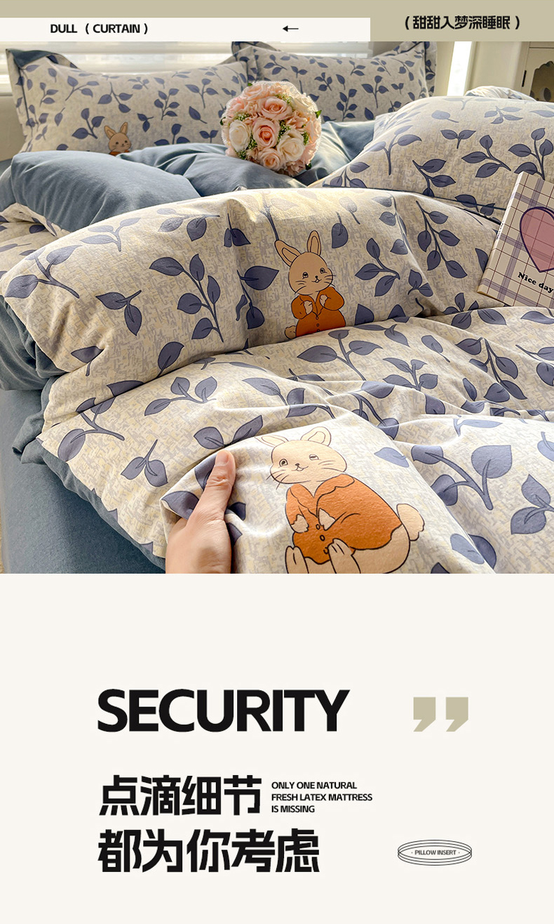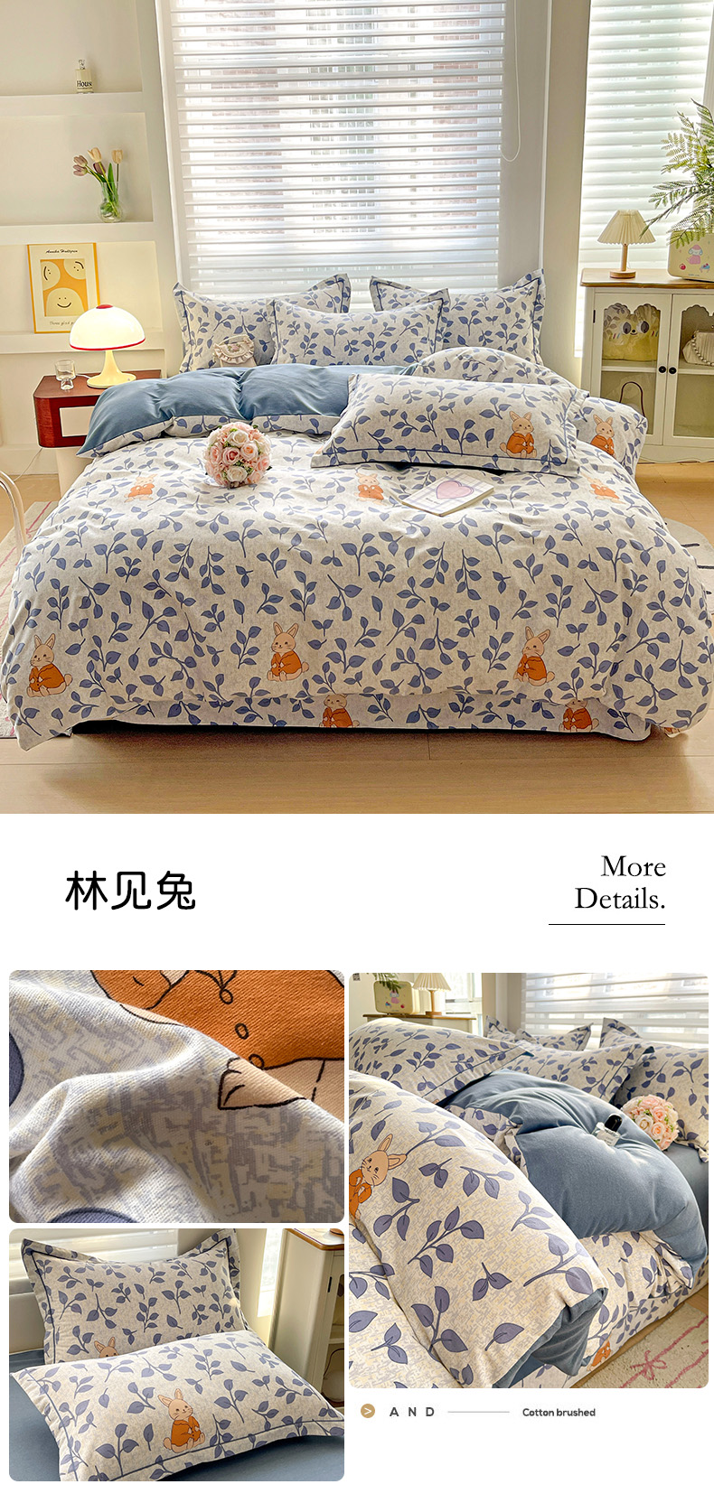 商品名称:优选良品直播新款全棉磨毛喷气印花四件套加厚纯棉三件套(一字绣工艺款)林见兔