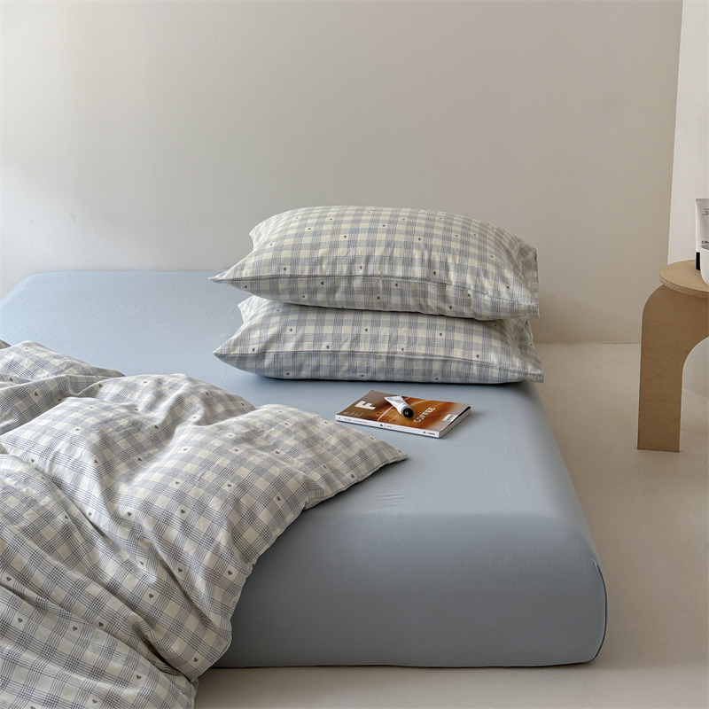 (总)窝米 2022夏季新品素色双拼水洗棉四件套,艾青双拼,冰莓粉双拼,绿云双拼,抹茶绿双拼,少女粉双拼,神仙紫双拼,雾霾蓝双拼,芝士双拼