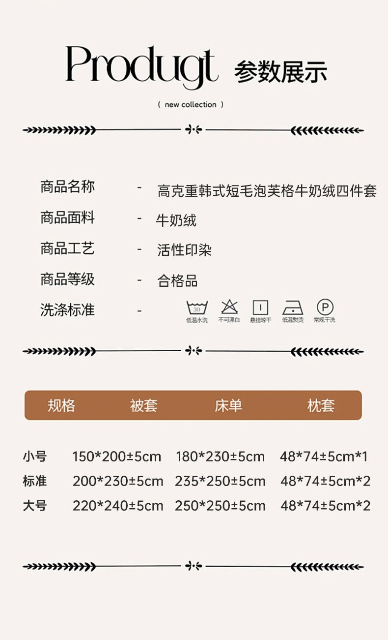 商品名称:(总)(买家秀爆款不断货)A类母婴级高克重纯色獭兔绒四件套剪花牛奶绒四件套牛奶绒四件套纯色韩式兔毛绒四件套
