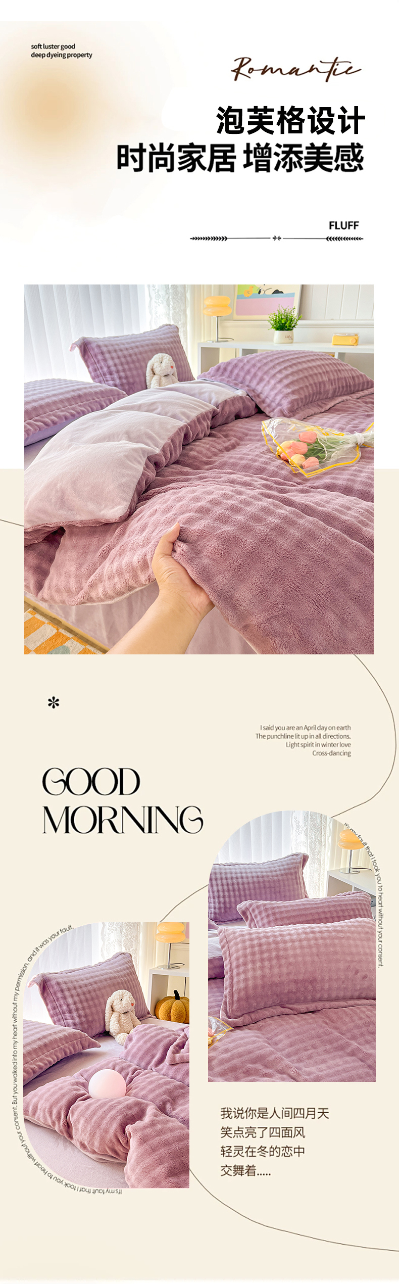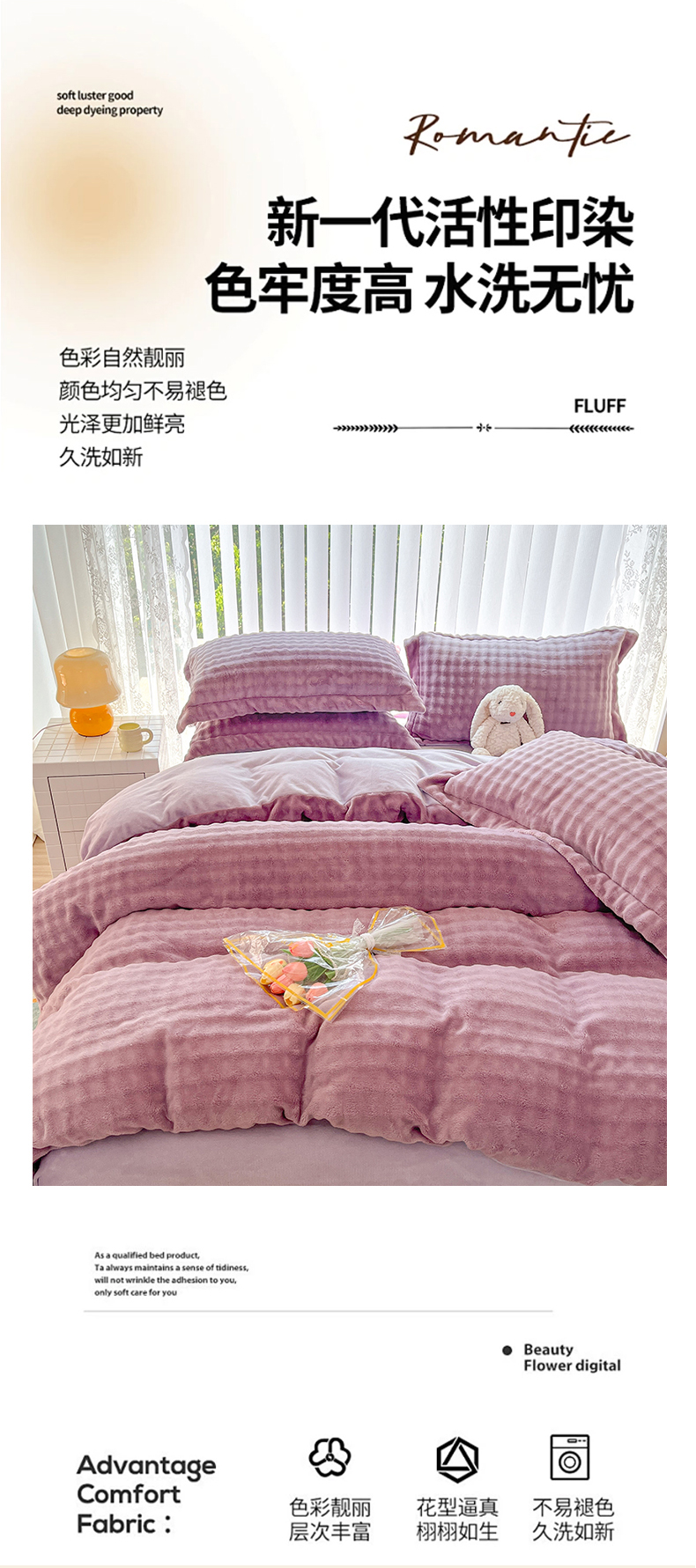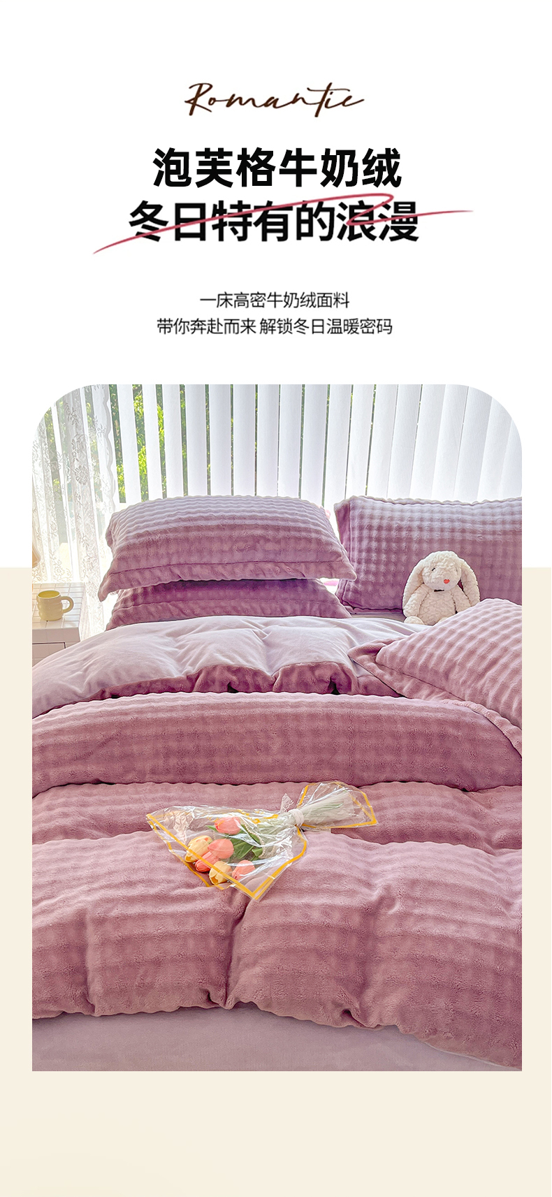 (总)(买家秀爆款不断货)A类母婴级高克重纯色獭兔绒四件套剪花牛奶绒四件套牛奶绒四件套纯色韩式兔毛绒四件套