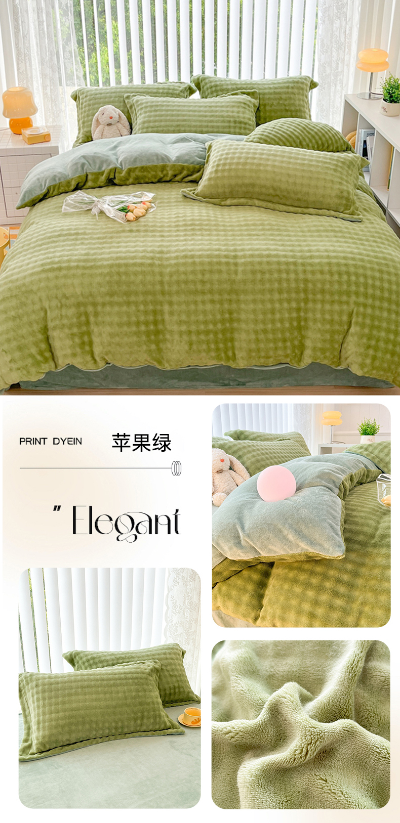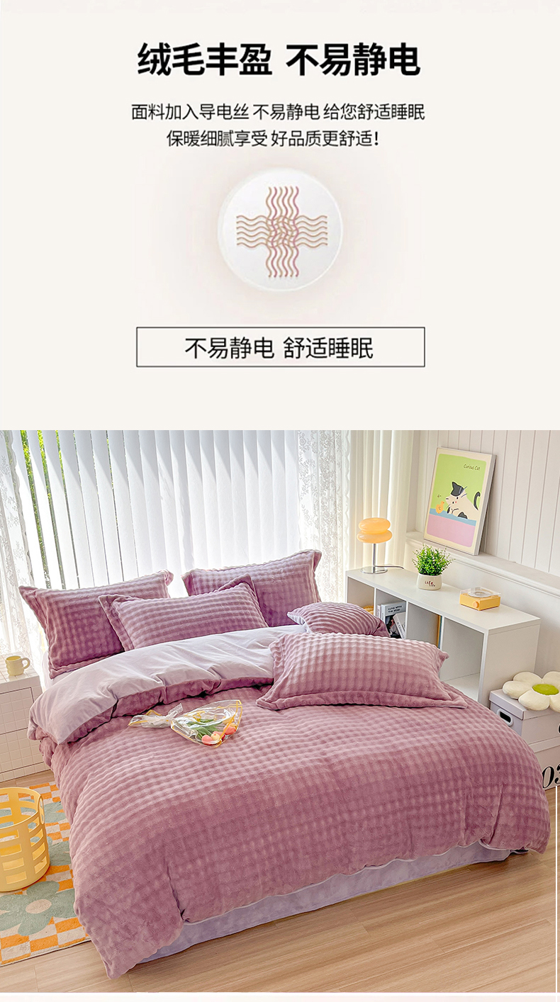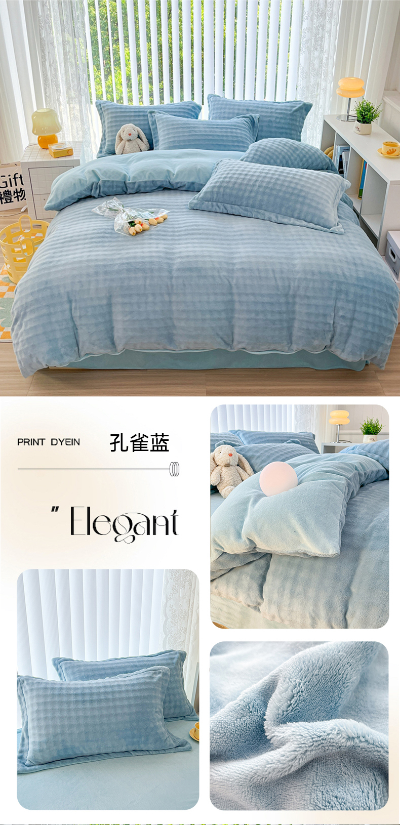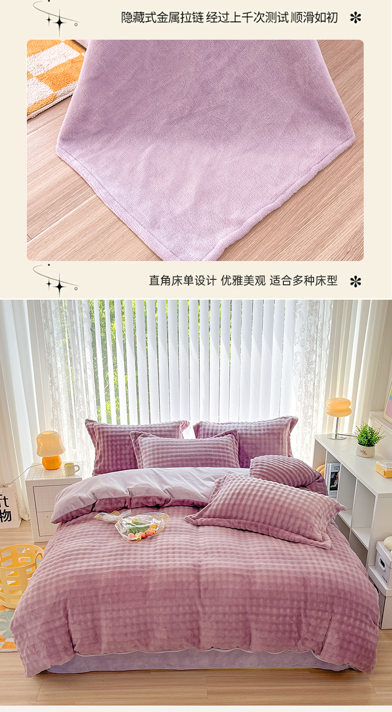 (总)(买家秀爆款不断货)A类母婴级高克重纯色獭兔绒四件套剪花牛奶绒四件套牛奶绒四件套纯色韩式兔毛绒四件套