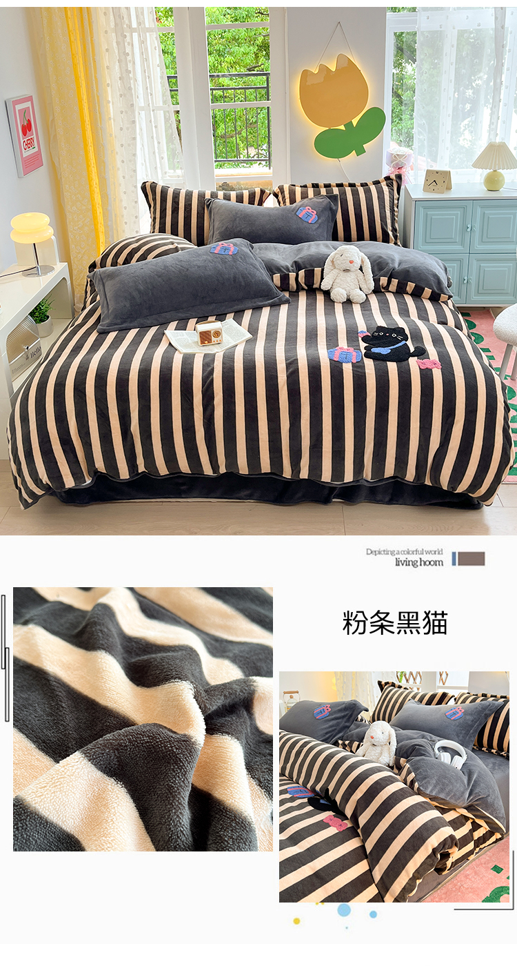 当前位置: 91家纺网 > 商品网购 > 床品套件 > 四件套 > 牛奶绒四件套 > (买家秀爆款不断货)A类母婴级毛巾绣牛奶绒四件套珊瑚绒四件套雪花绒四件套刺绣牛奶绒毛巾绣四件套小清新 深咖条黑猫