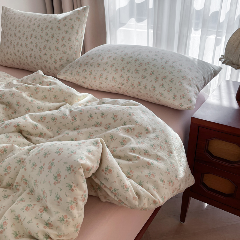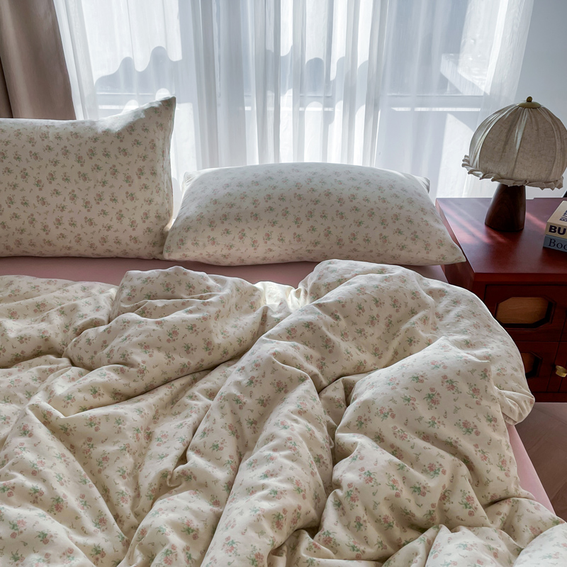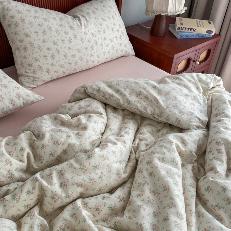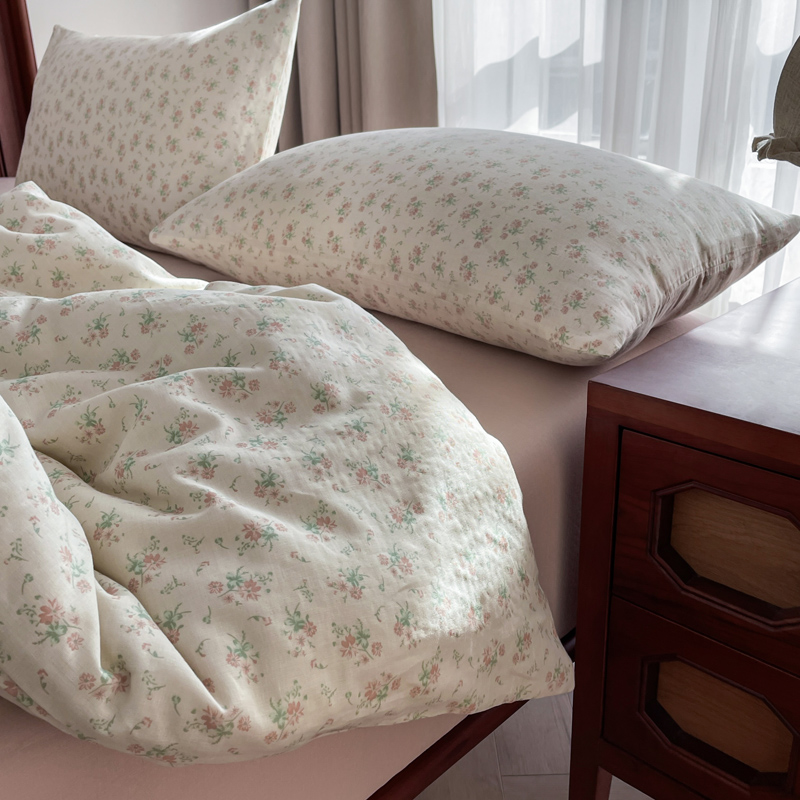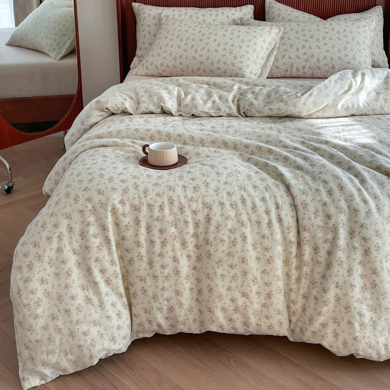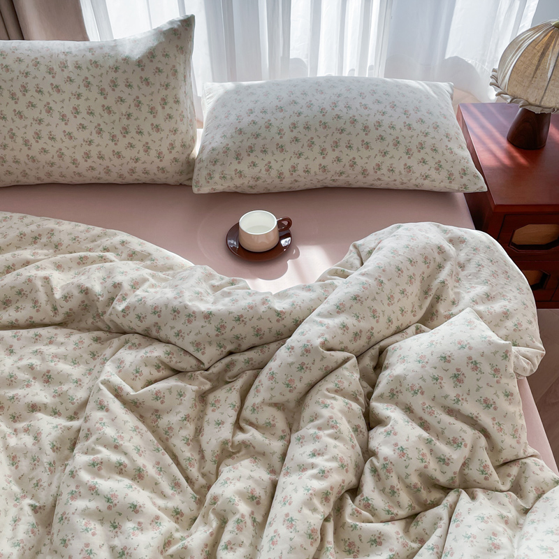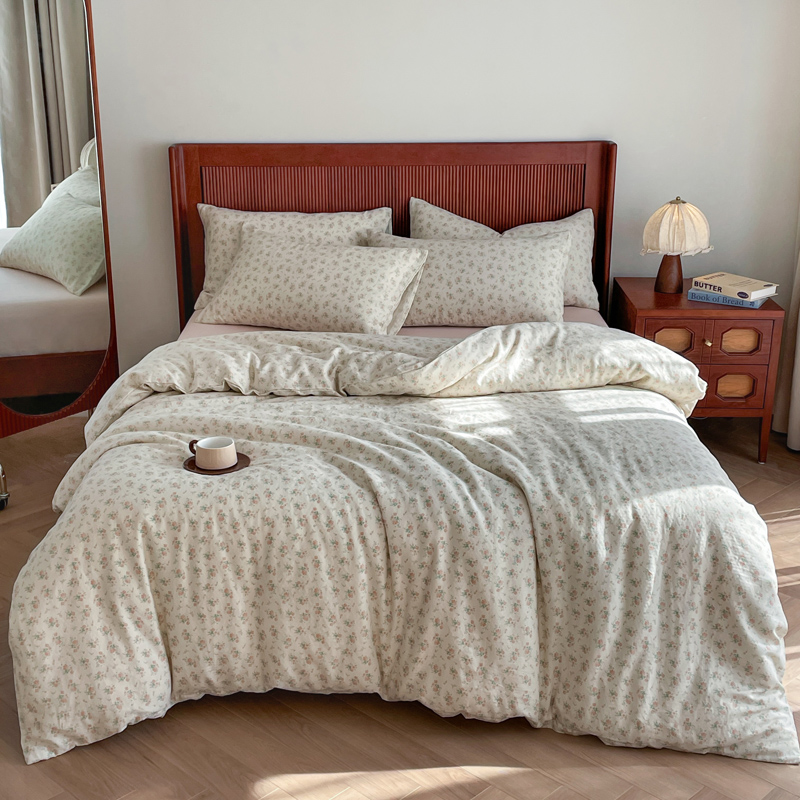 商品名称:一比一 2025新款全棉母婴级抗菌有氧全棉双层纱亲肤全棉小清新印花三件套四件套 花田错