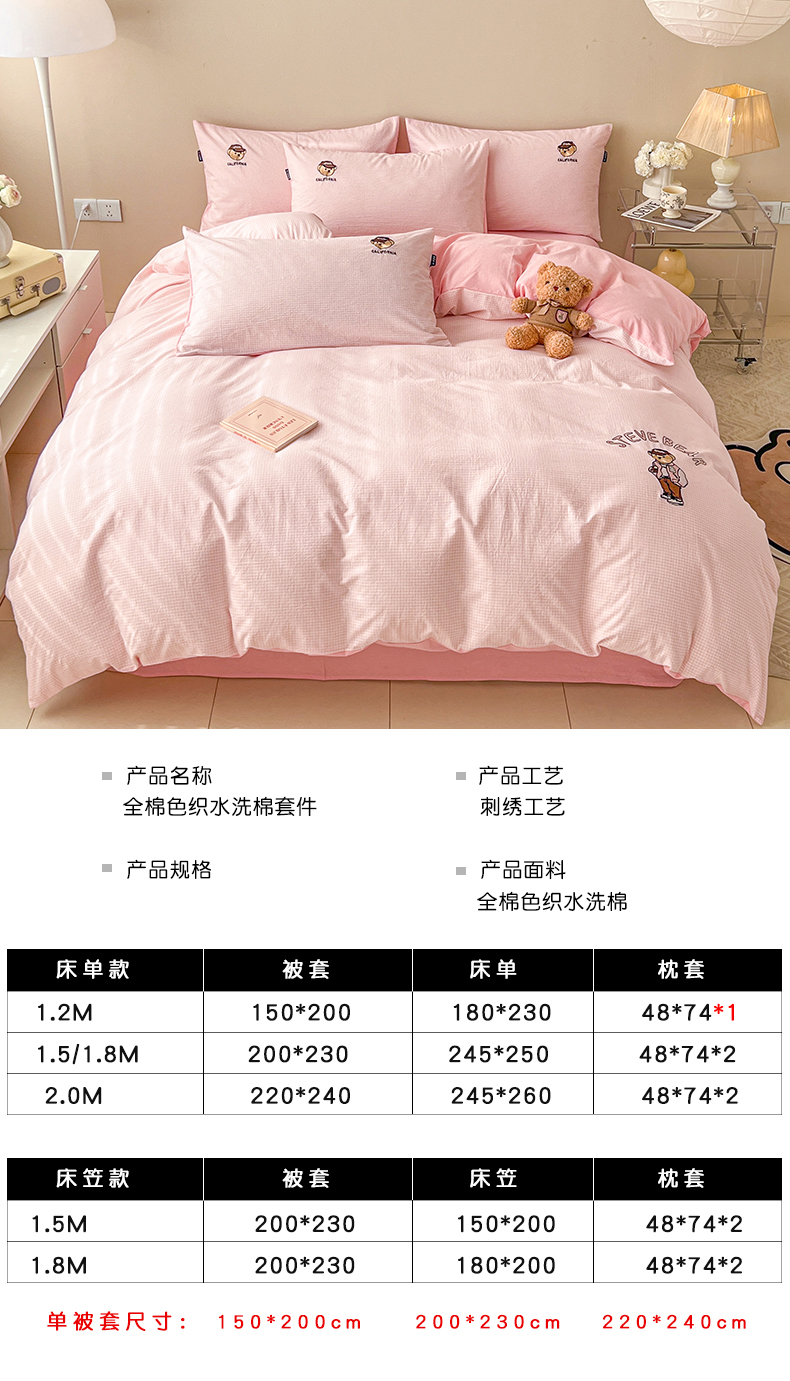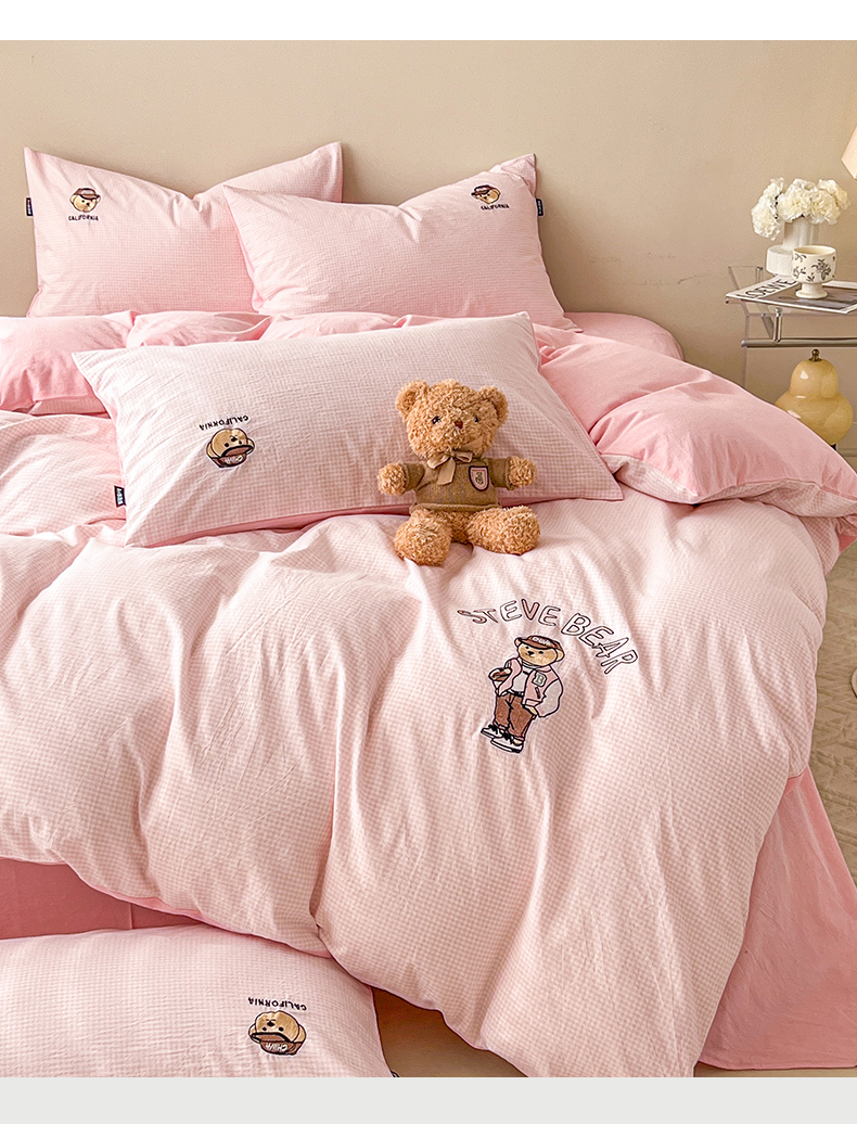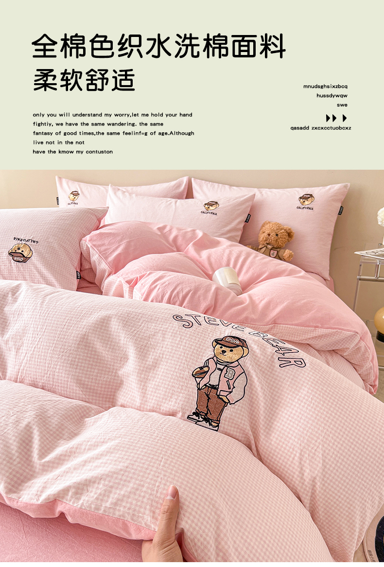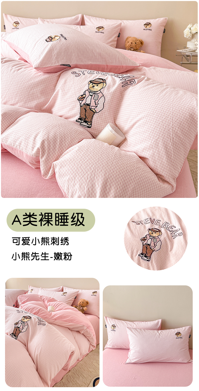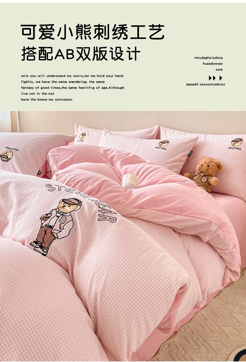 当前位置: 91家纺网 > 商品网购 > 床品套件 > 四件套 > 水洗棉四件套 > 2025新款A类全棉色织水洗棉可爱小熊刺绣四件套 小熊先生-嫩粉