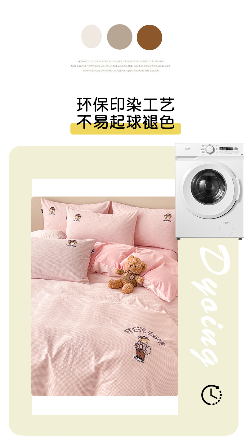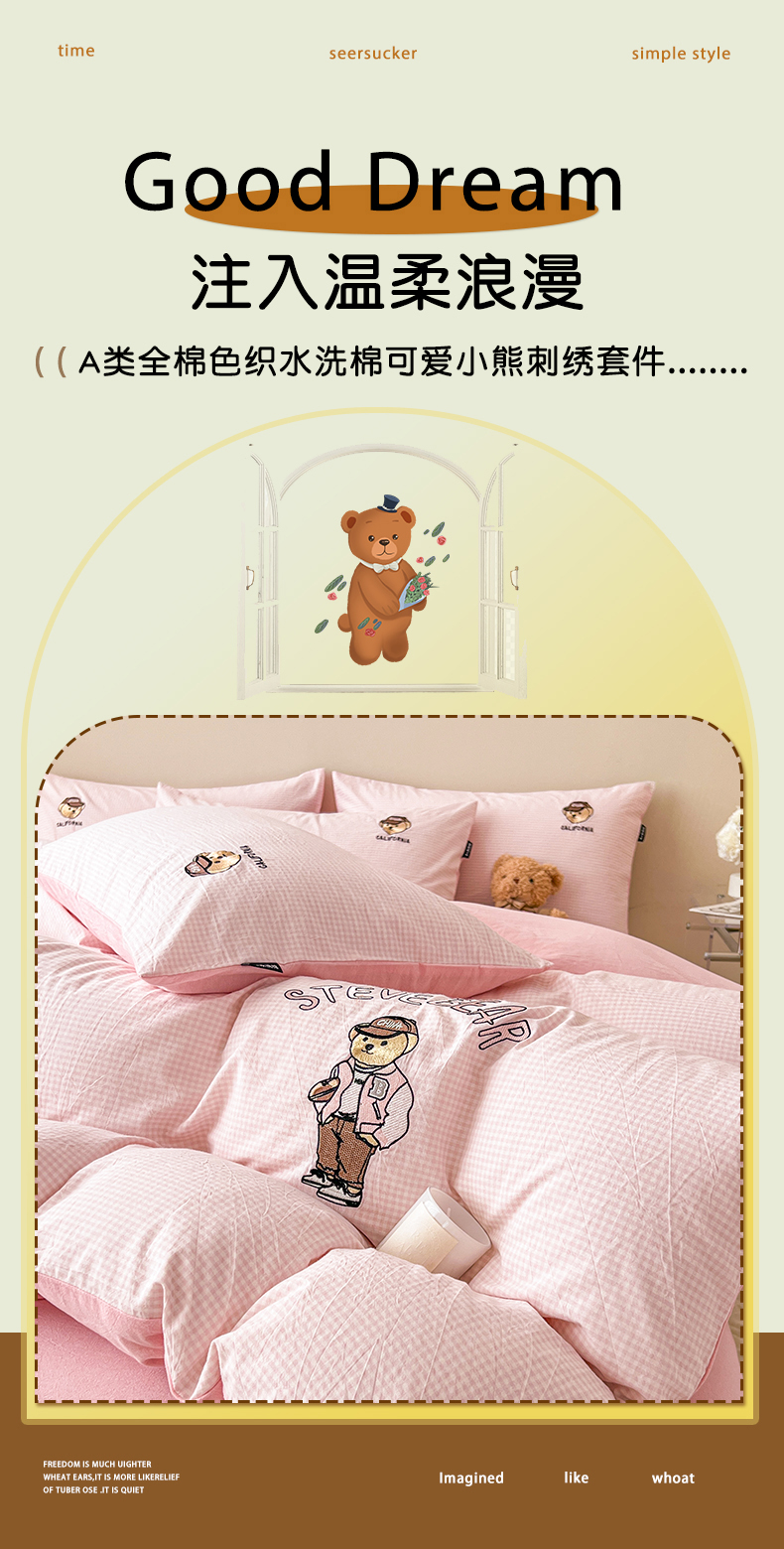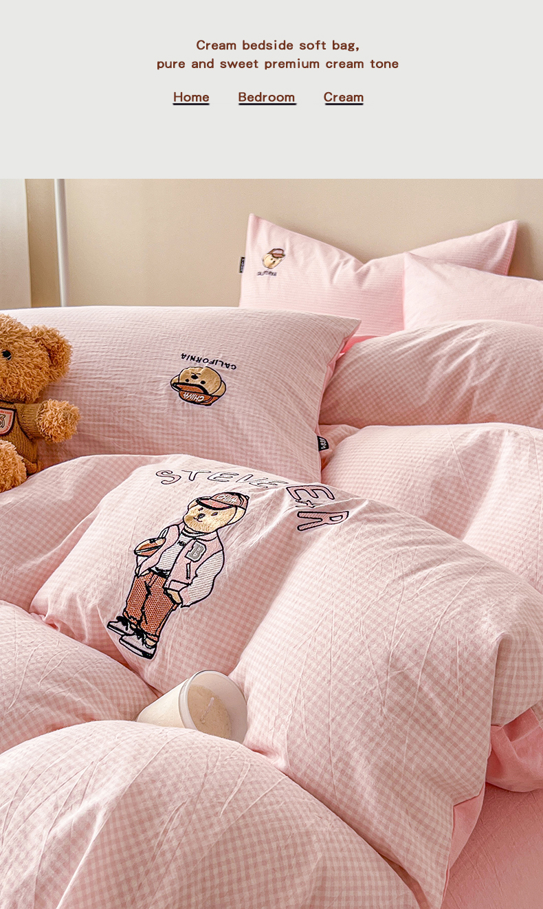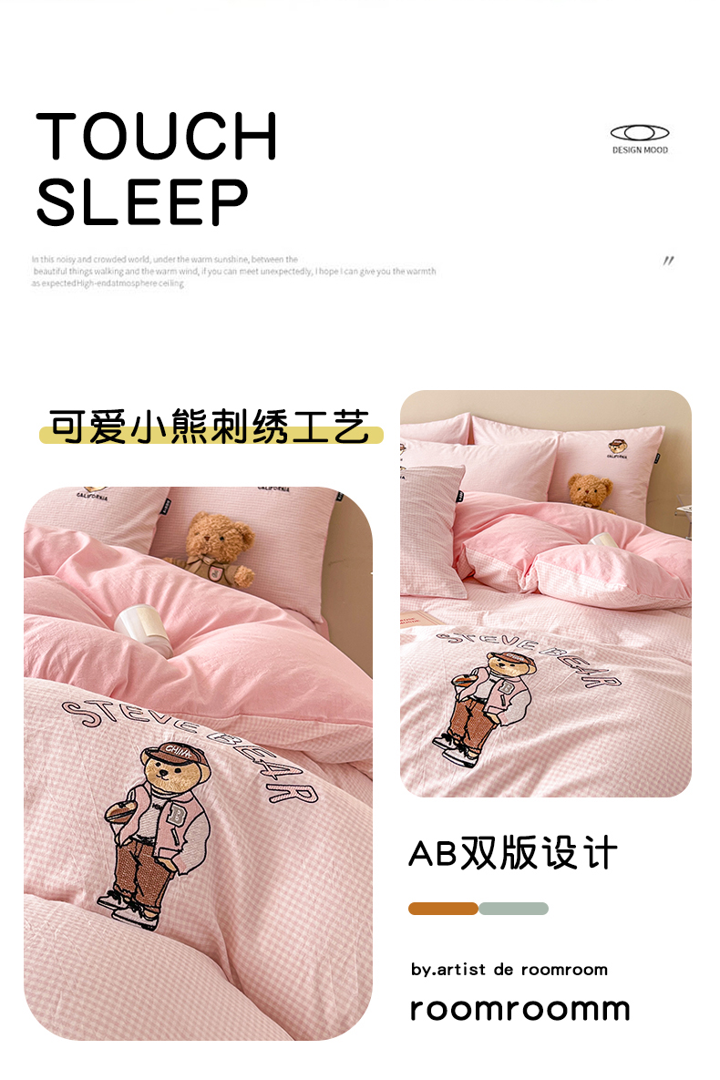 当前位置: 91家纺网 > 商品网购 > 床品套件 > 四件套 > 水洗棉四件套 > 2025新款A类全棉色织水洗棉可爱小熊刺绣四件套 小熊先生-嫩粉