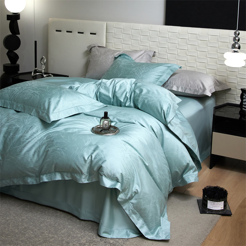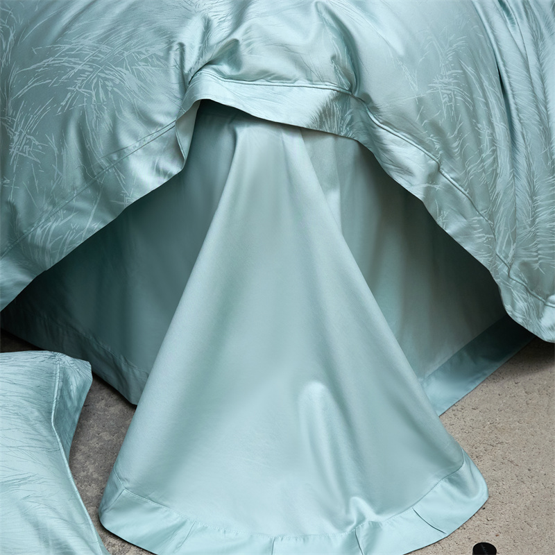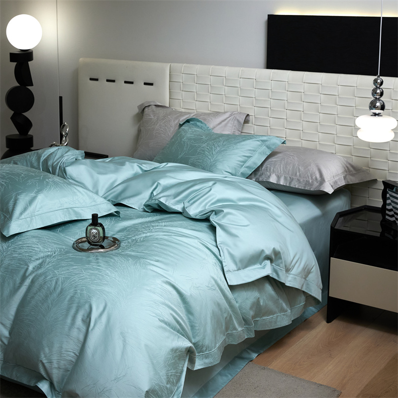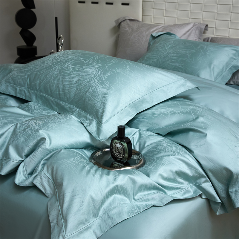 商品名称:淳绵家居 2025新款50*50S长绒棉贡缎提花手工立体埋绳工艺四件套(礼盒包装) 流金时光(冰川兰)