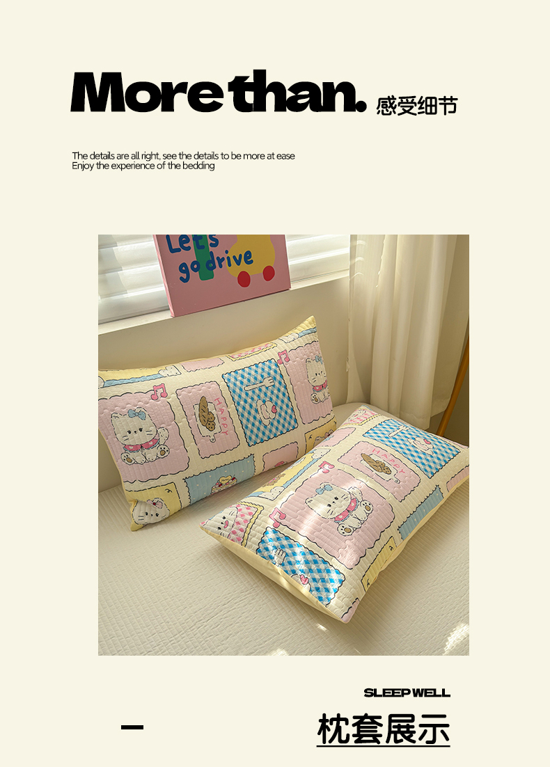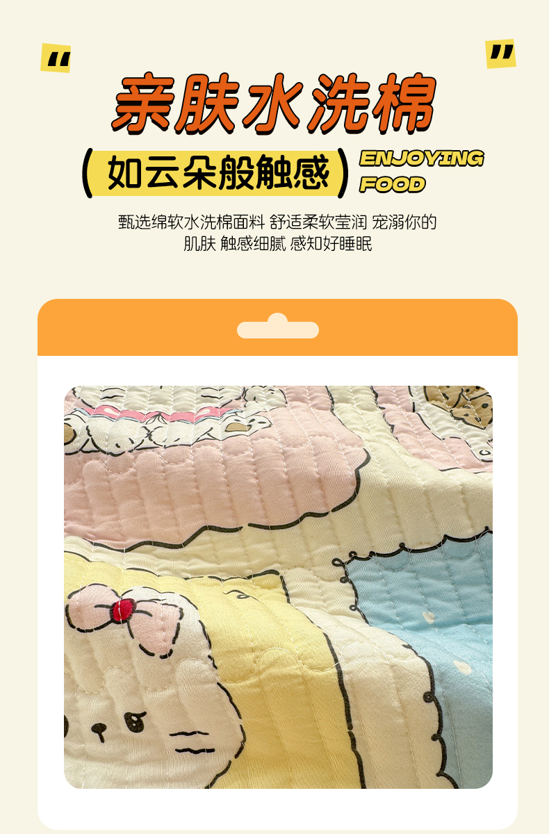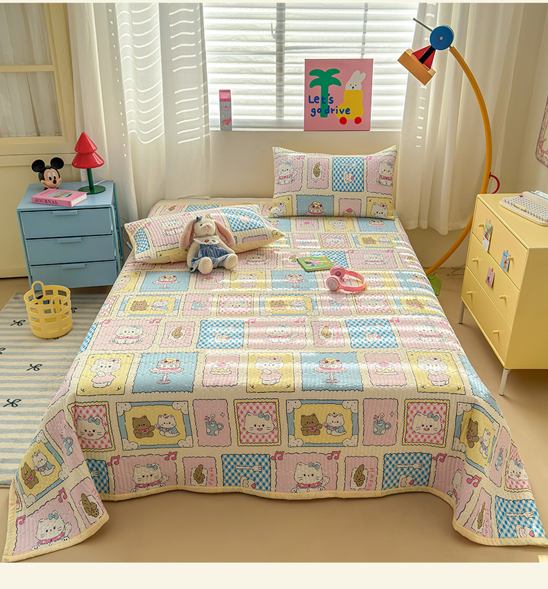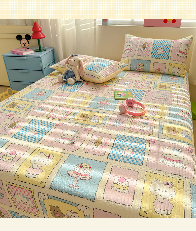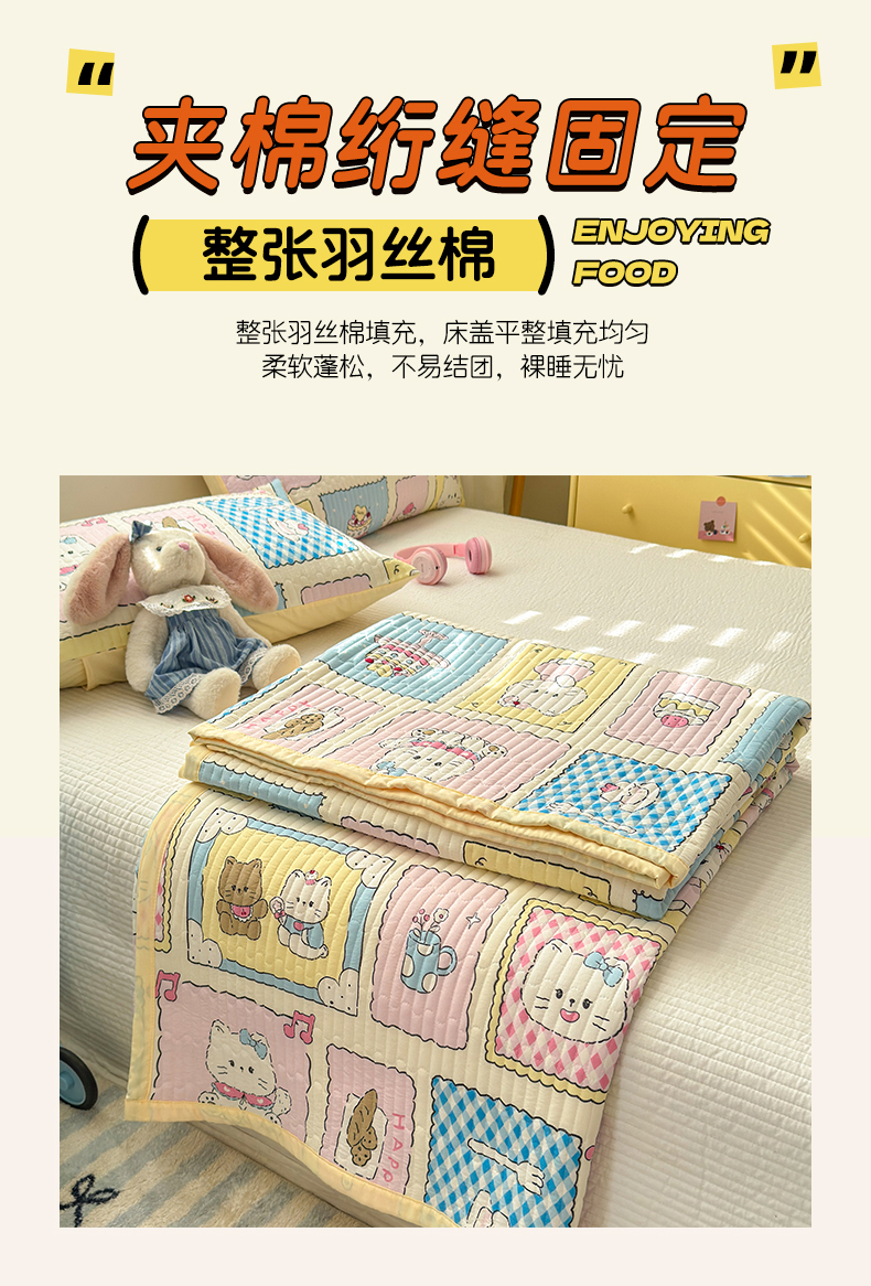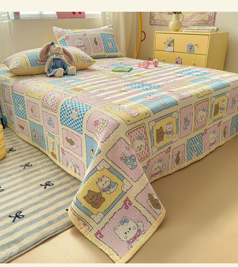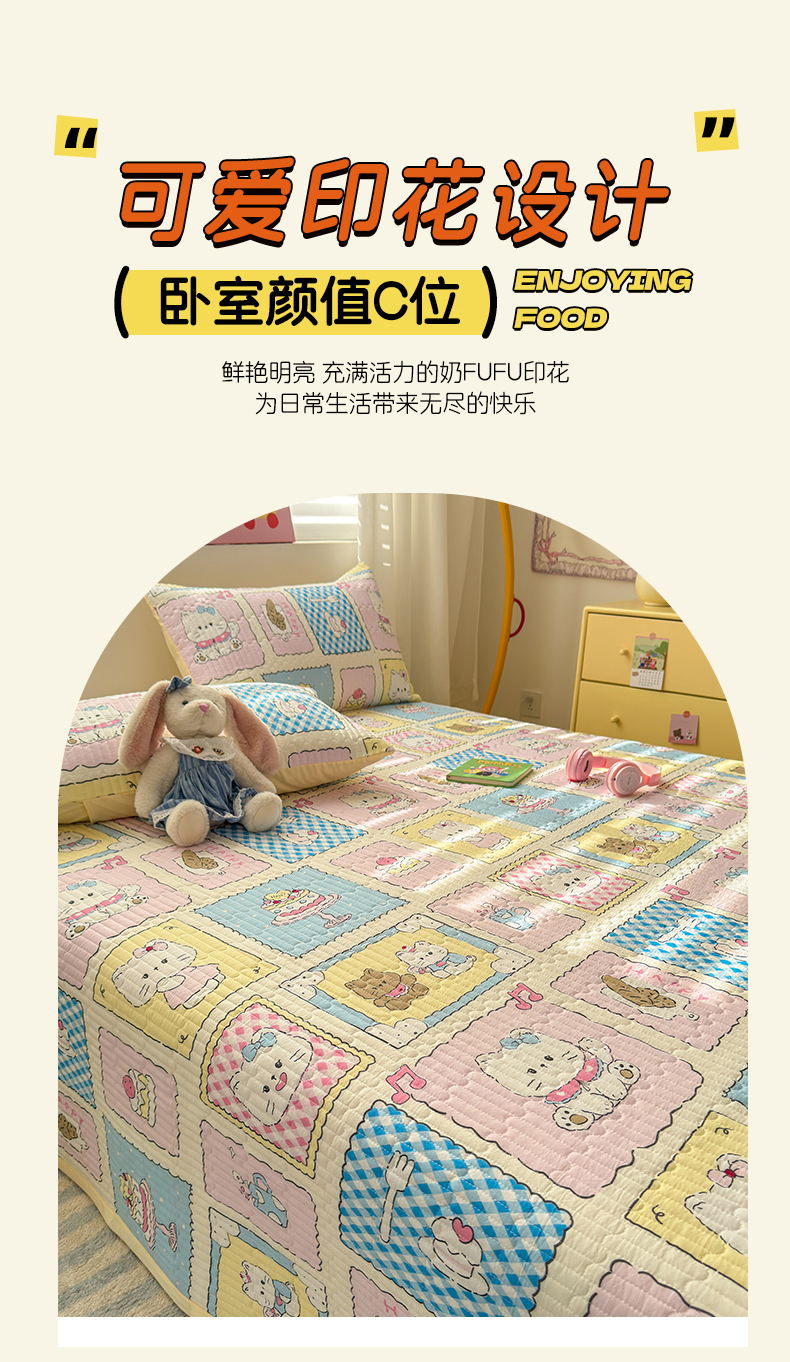 商品名称:罗亿家纺 2025新款水洗棉双层纱夹棉绗缝床盖(提供买家秀) 芝士呆猫