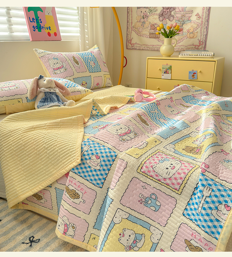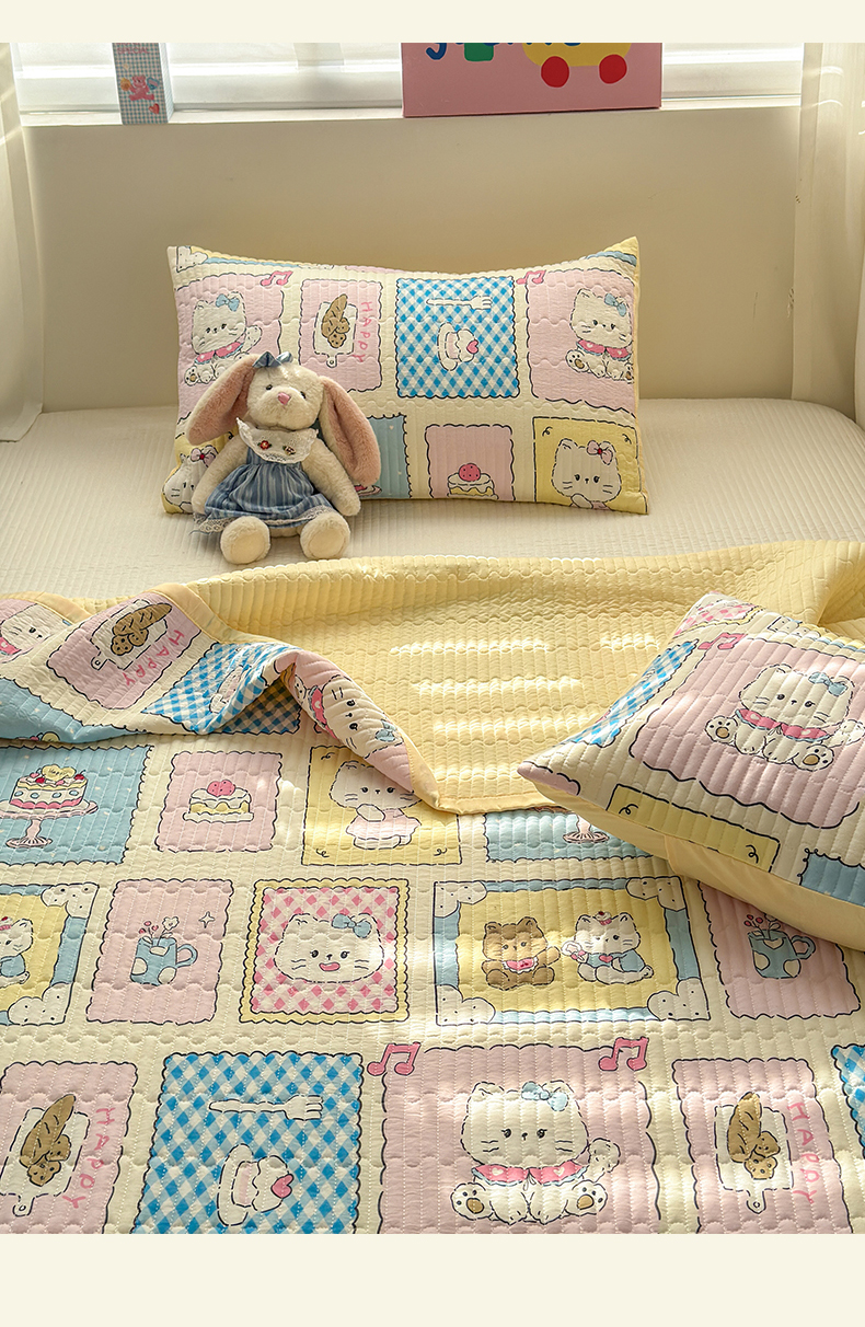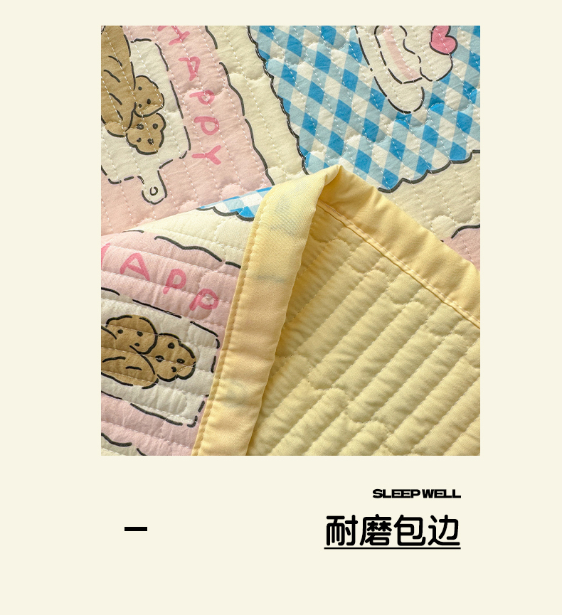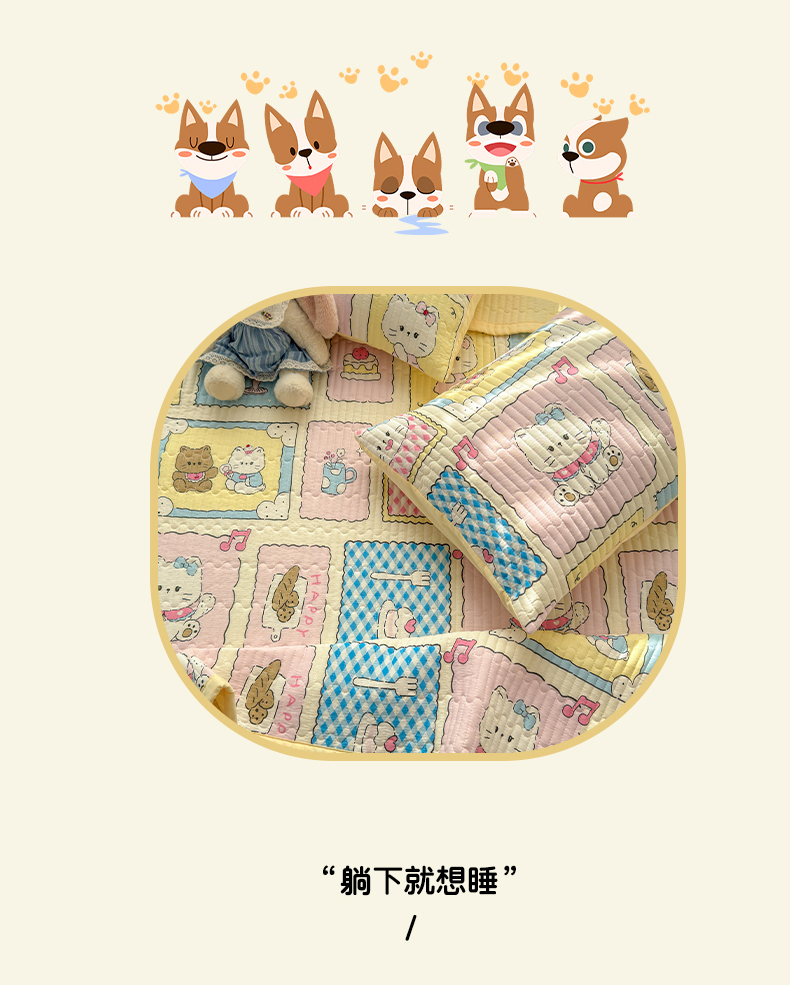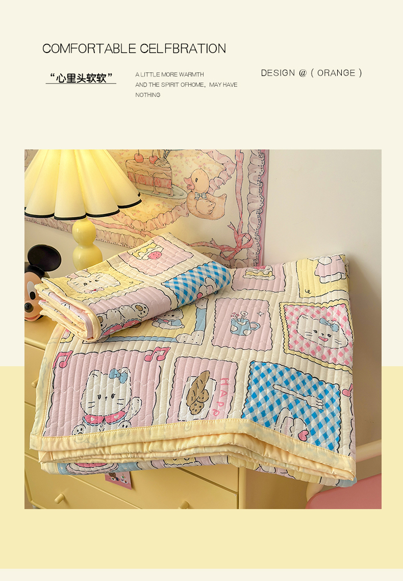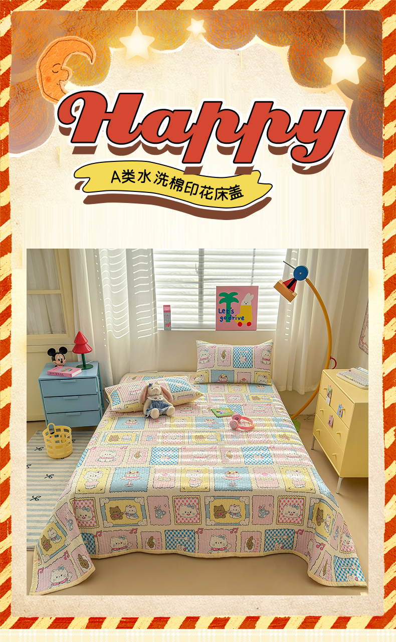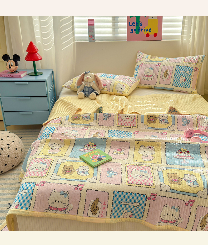 商品名称:罗亿家纺 2025新款水洗棉双层纱夹棉绗缝床盖(提供买家秀) 芝士呆猫