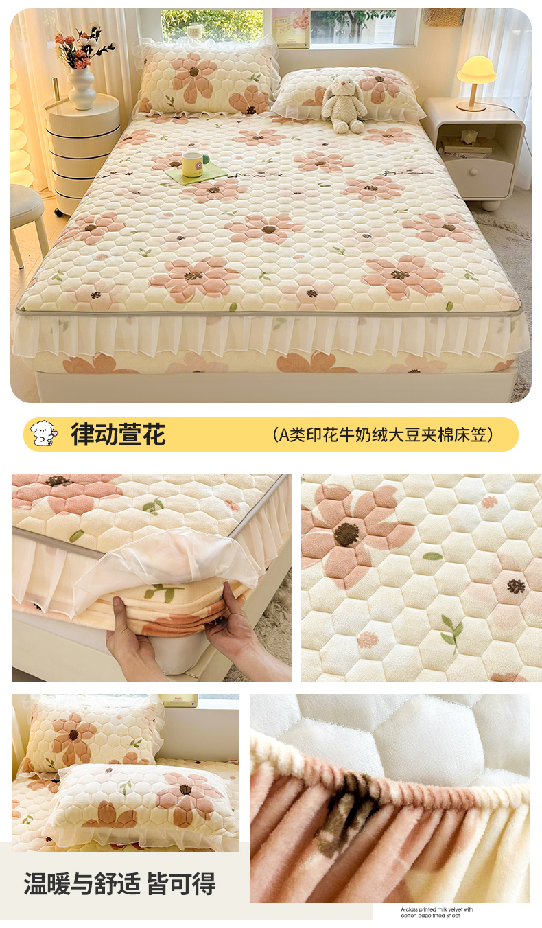 • 91家纺网 家纺一手货源 找家纺 (买家秀 爆款不断货)A类母婴级卡通牛奶绒床笠珊瑚绒雪花绒床笠儿童牛奶绒夹棉床笠花边款牛奶绒花边床笠 花边款--律动萱花