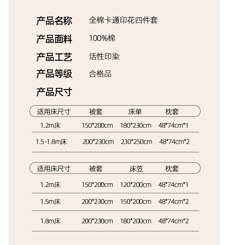 1.8m床单款四件套(含吊牌) | ¥140.00 |