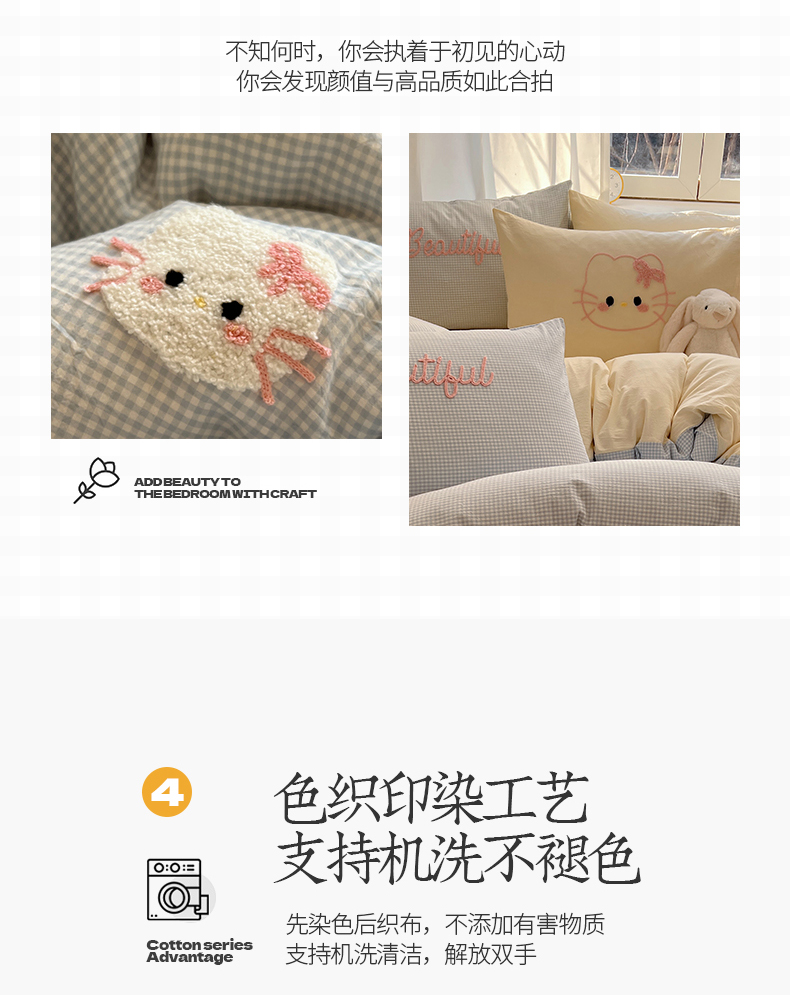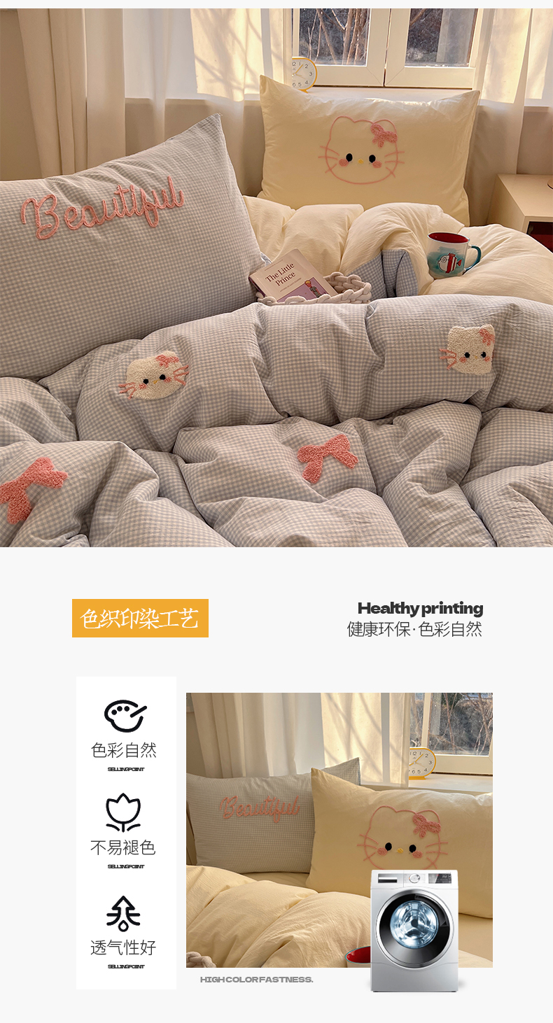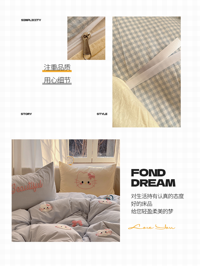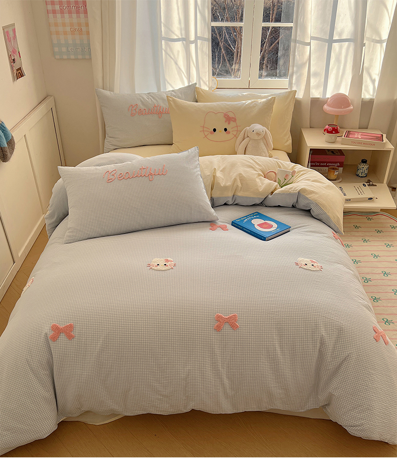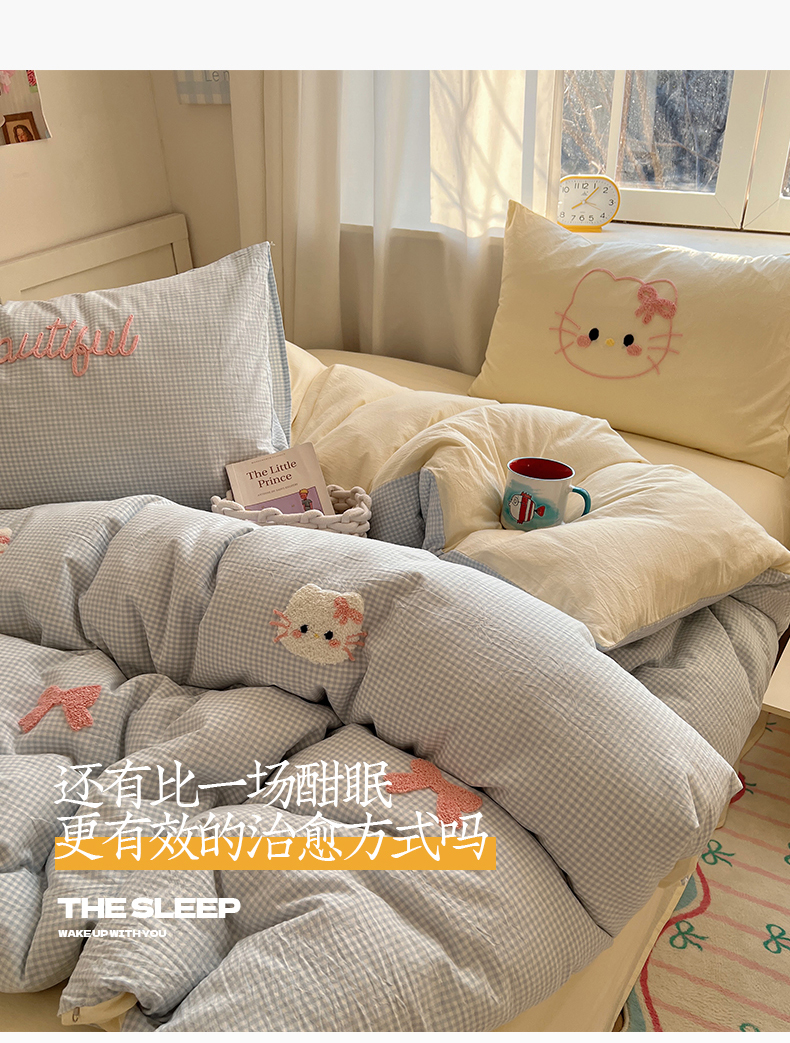 当前位置: 91家纺网 > 商品网购 > 床品套件 > 四件套 > 水洗棉四件套 > 桃子家居 2025新款A类ins纯棉色织水洗棉毛巾绣奶油少女猫咪兔兔混搭系列四件套 色织水洗棉-猫咪蓝黄