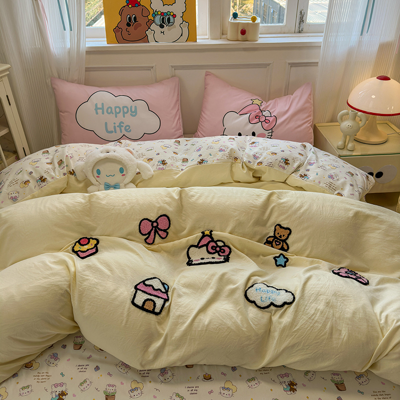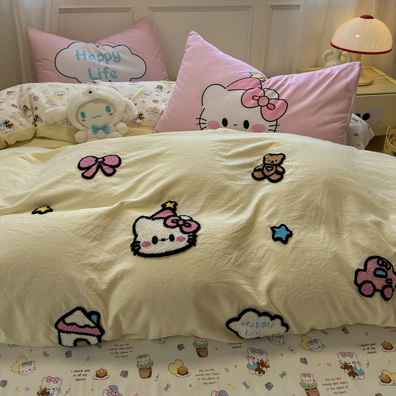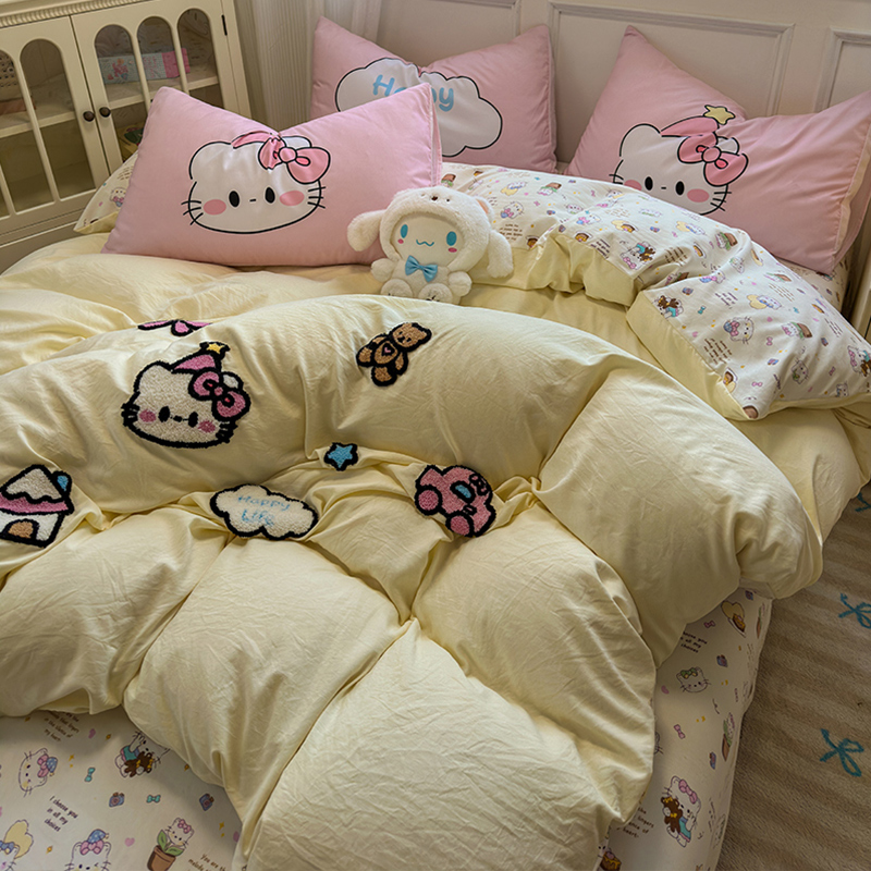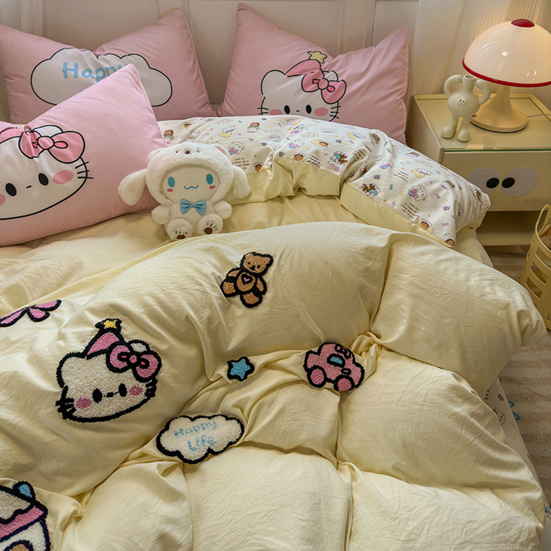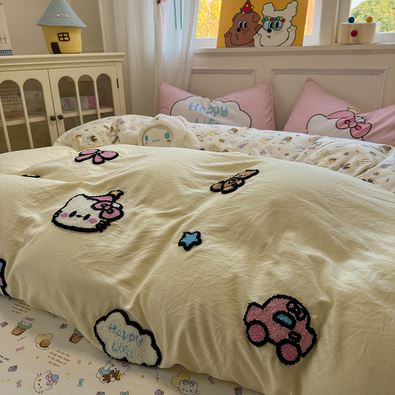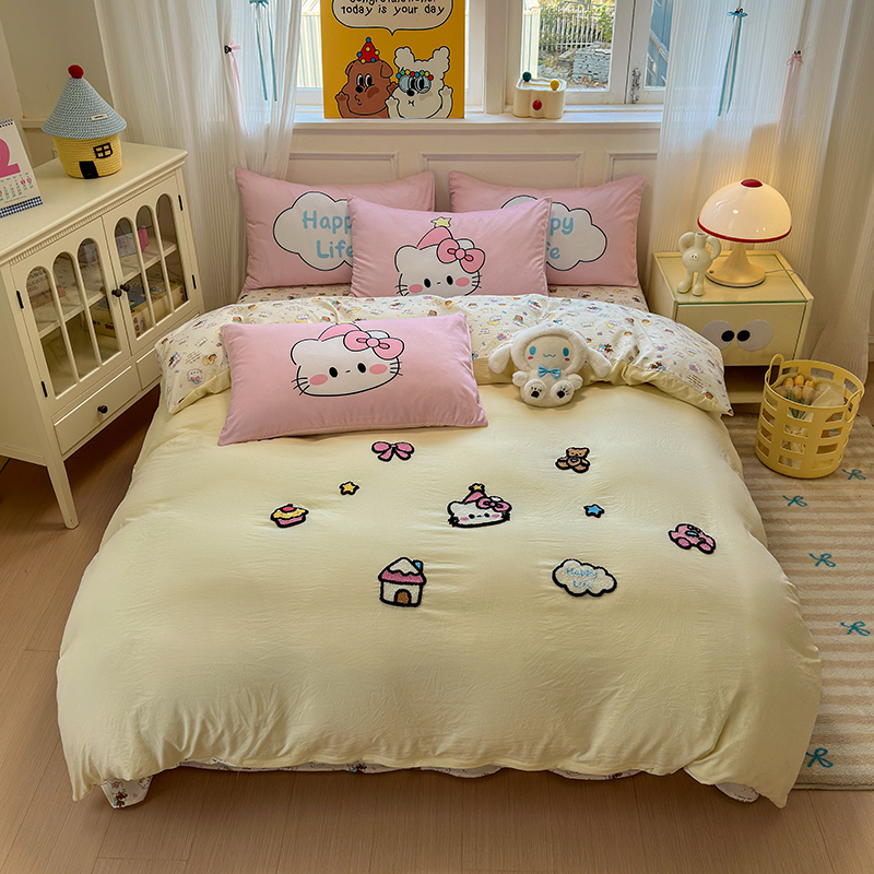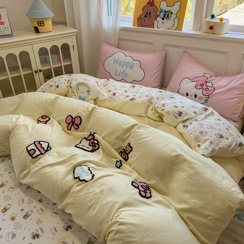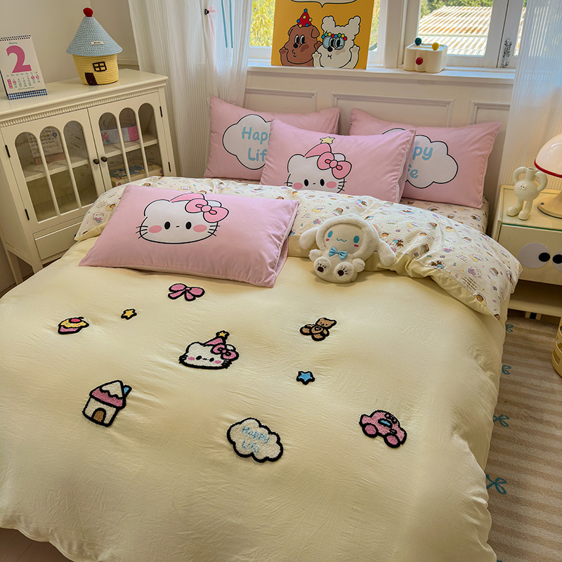 当前位置: 91家纺网 > 商品网购 > 床品套件 > 四件套 > 其它四件套 > 盼季家纺 2025新款小清新蛋糕猫大版毛巾绣水洗棉床上用品四件套宿舍床上三件套 毛巾绣-猫咪聚会-黄