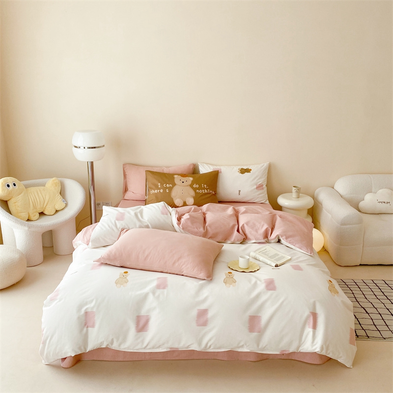(总)嘉汀兰 2023新款60支全棉磨毛绣花撞色轻奢四件套—暮里,粉色,红灰色,芥绿色,浅灰色,深青色