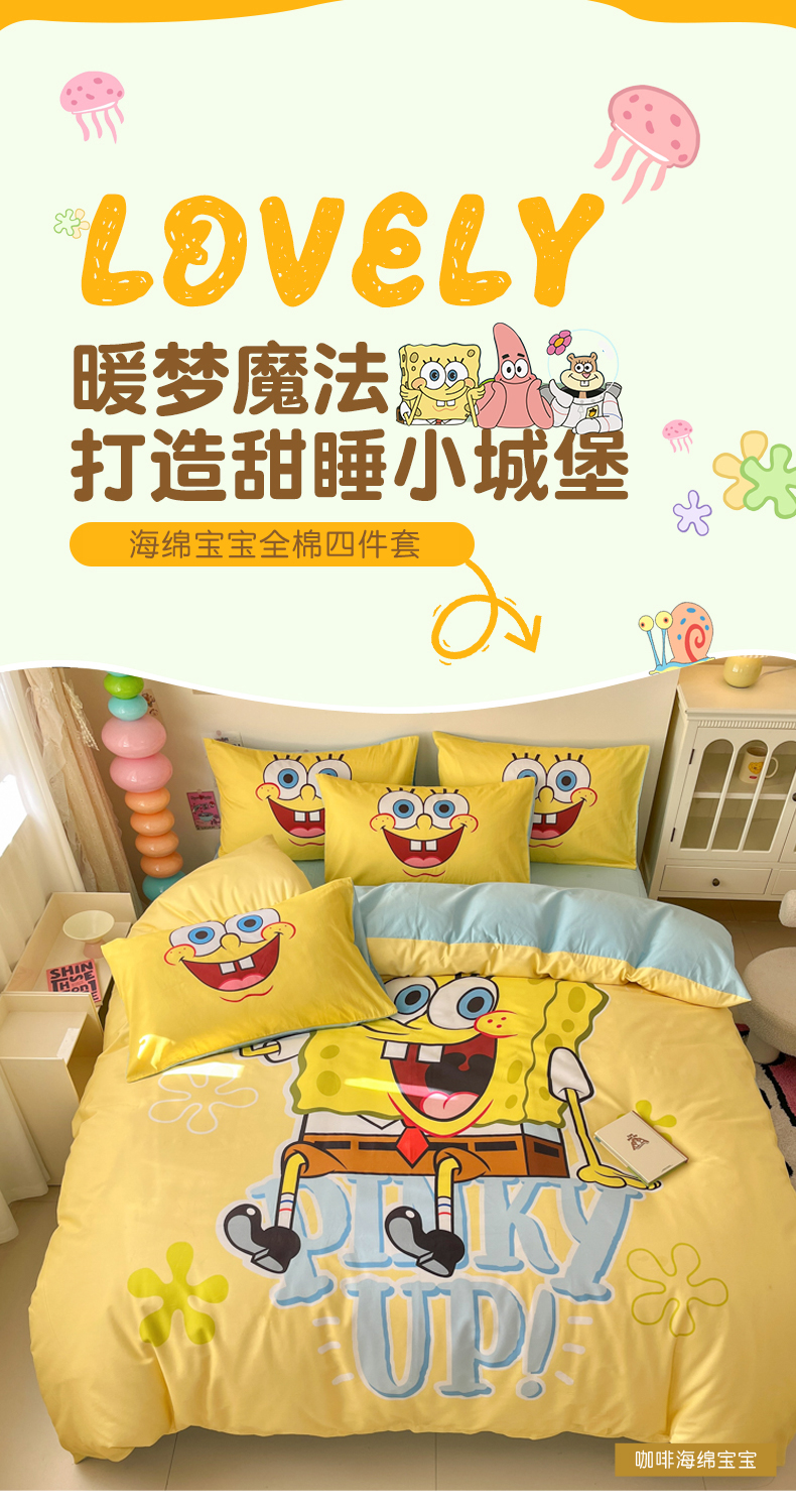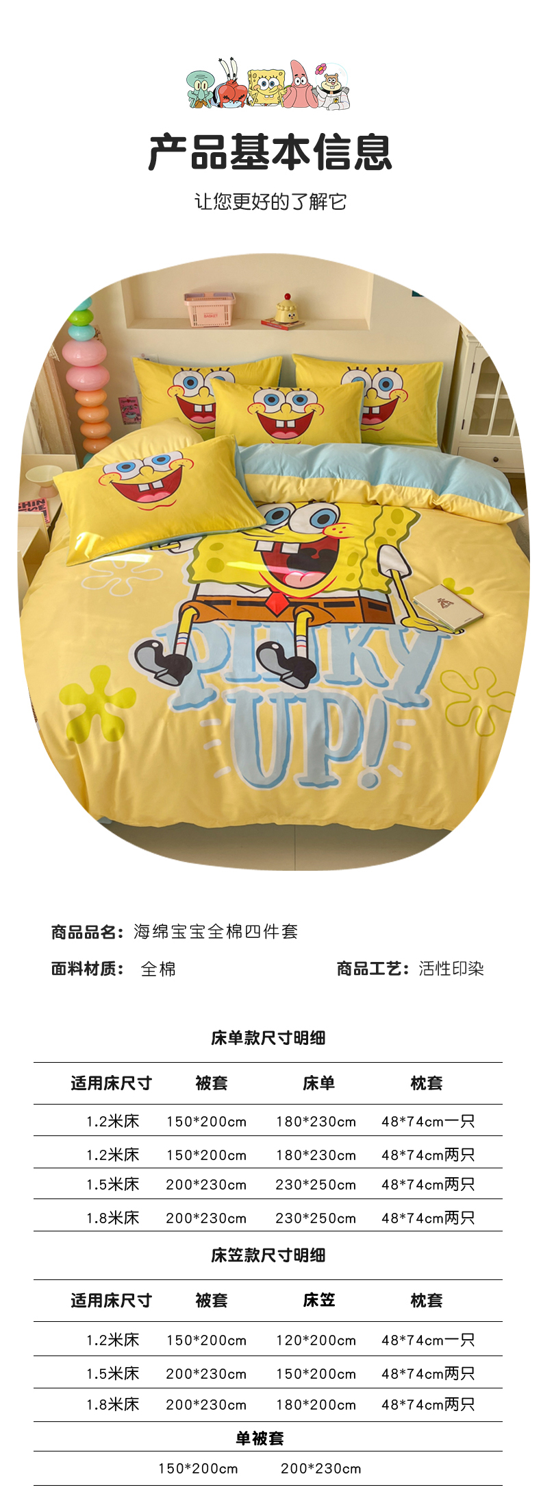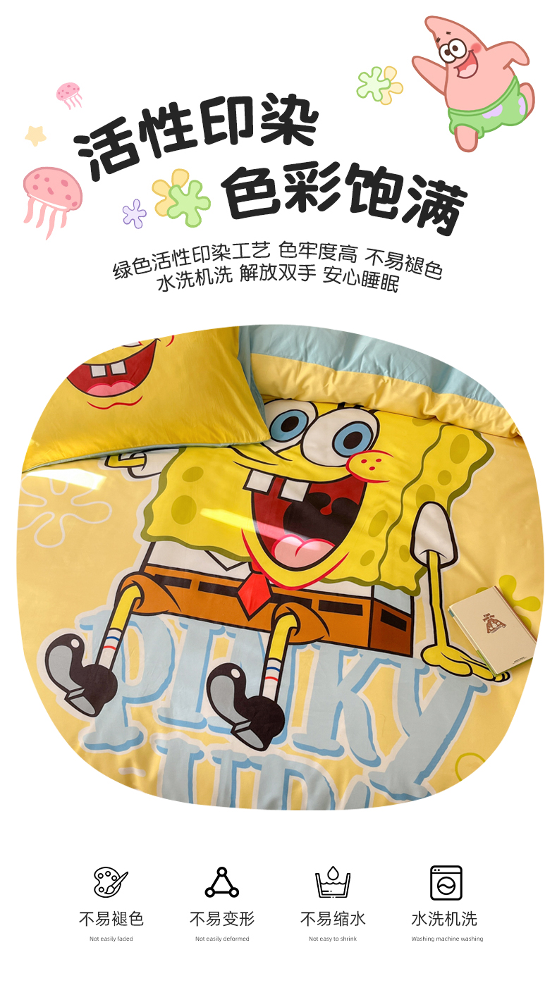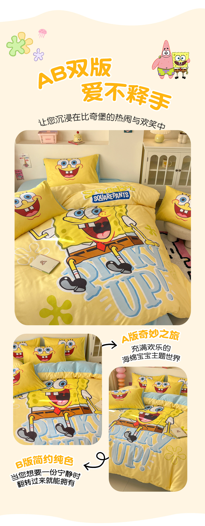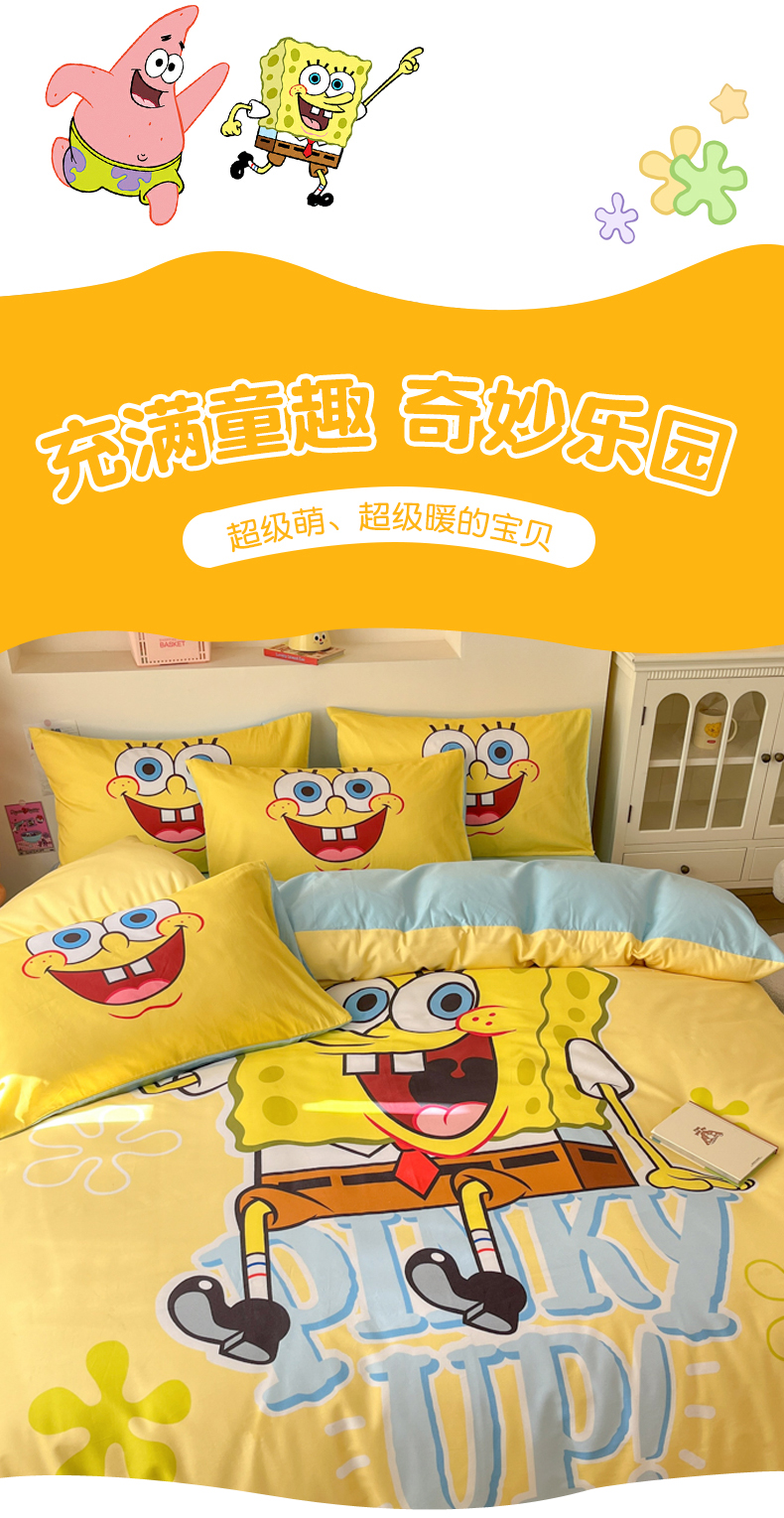 当前位置: 91家纺网 > 商品网购 > 床品套件 > 四件套 > 全棉普通四件套 > 金爱家纯棉数码印花系列四件套-海绵宝宝 棉D-咖啡海绵宝宝