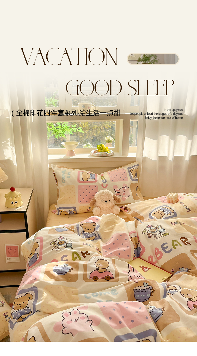 商品名称:盛馨家纺 2025新款ins小清新全棉四件套三件套床笠四件套跑量款系列 游乐园