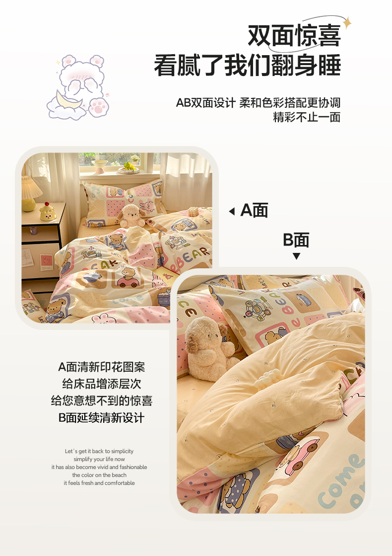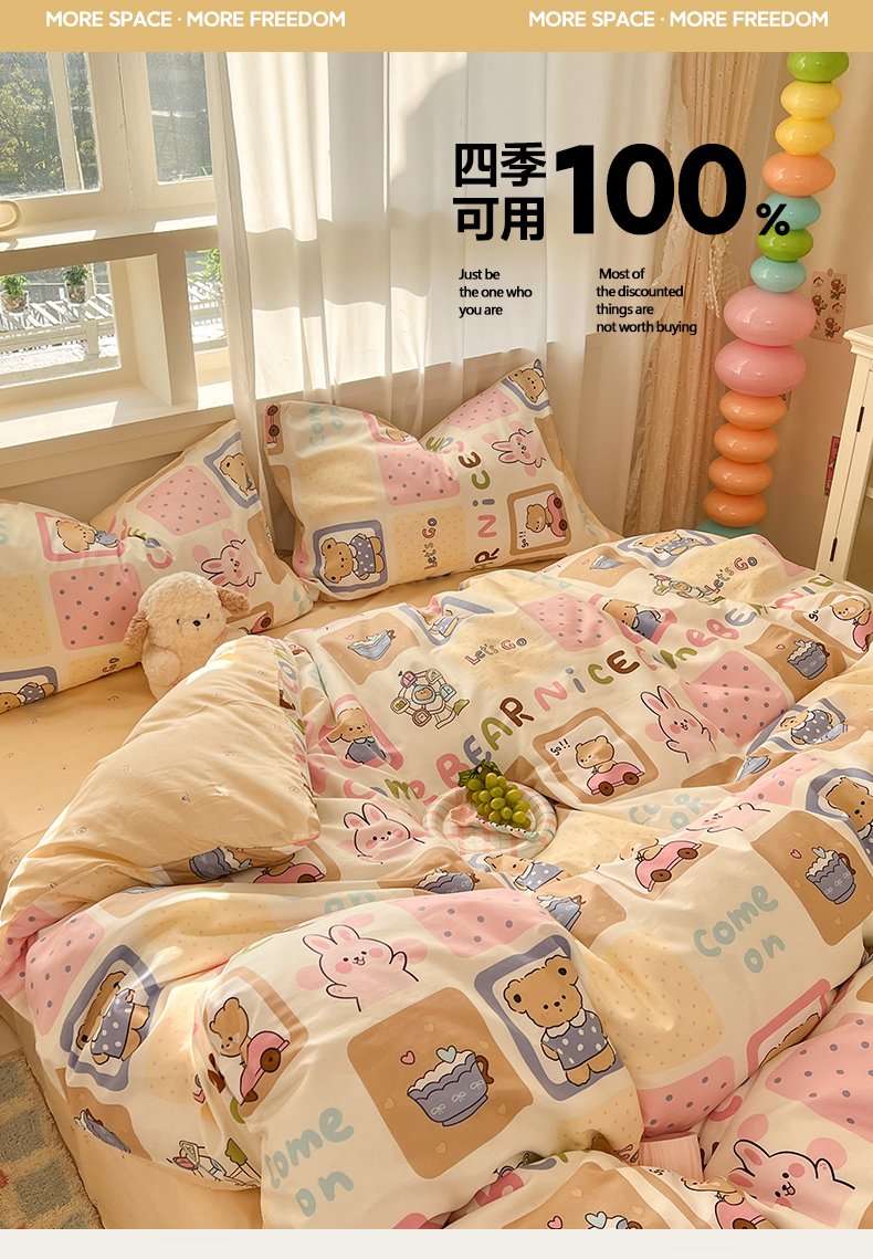 盛馨家纺 2025新款ins小清新全棉四件套三件套床笠四件套跑量款系列 游乐园