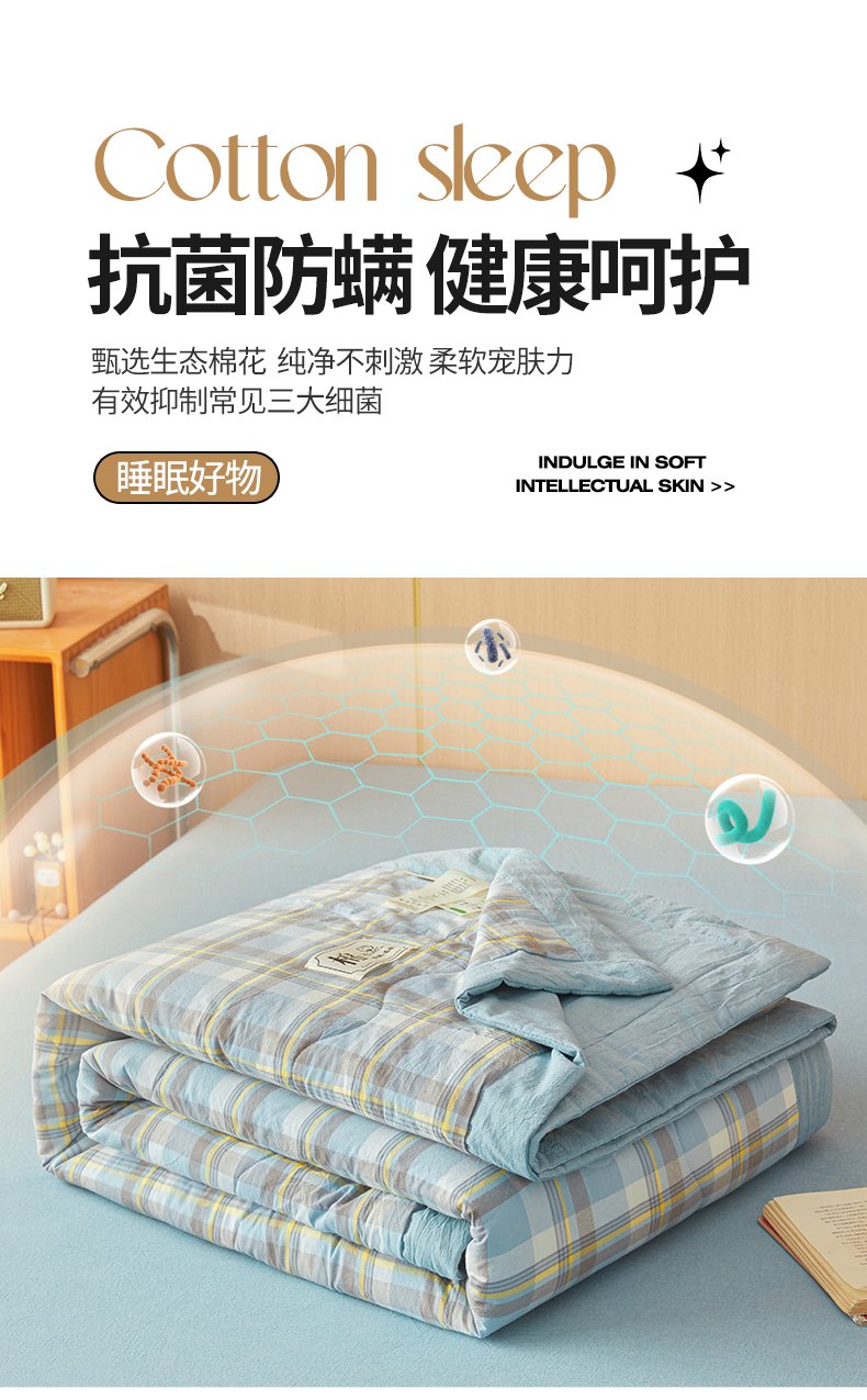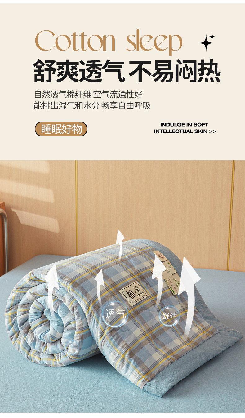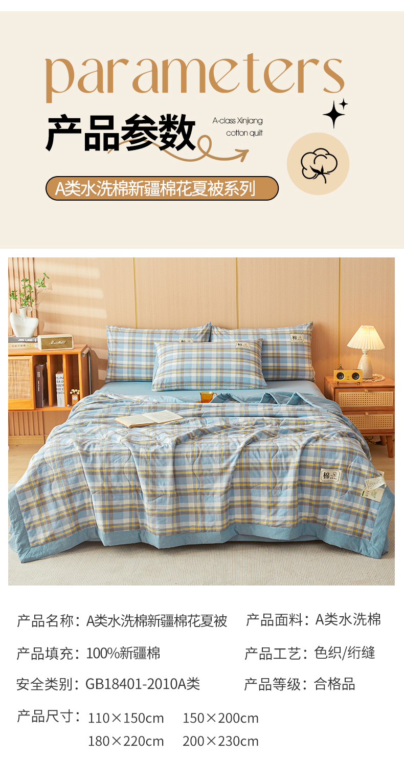 当前位置: 91家纺网 > 商品网购 > 被子 > 夏被 > 招财星家纺 2025新款无印风新疆棉夏被夏凉被空调被可机洗直播可过质检 格韵蓝灰
